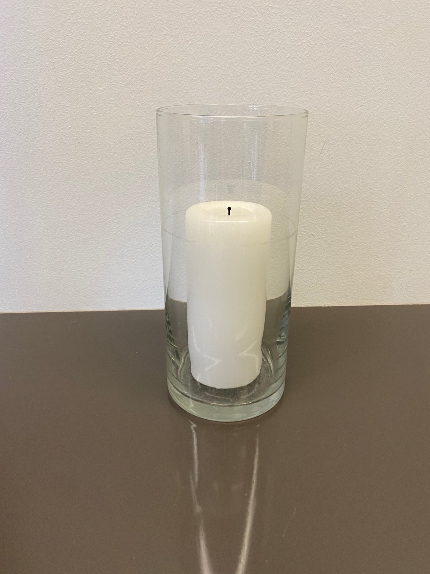 Glass Cylinder Vase, White Pillar Candle (*8 Available)