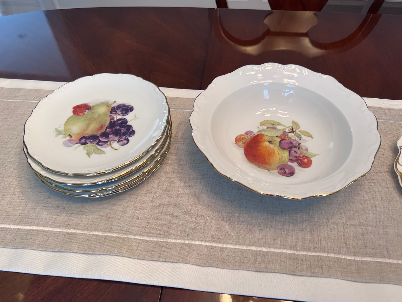 VINTAGE SCHUMANN BAVARIA ARZBERG Bowl + 6 Plates- Fruit Pattern