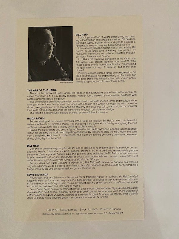 Signed Print 'Haida Raven' by Bill Reid (unframed).