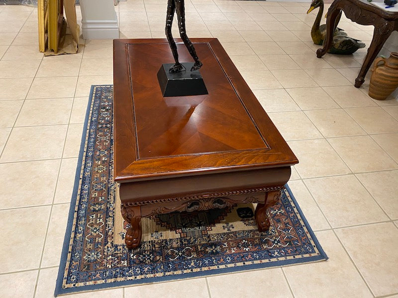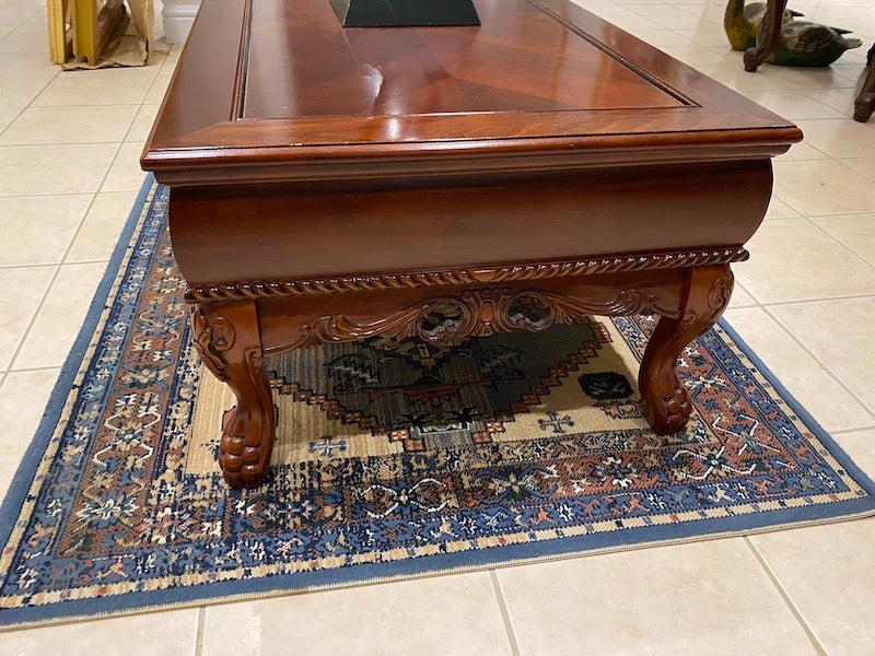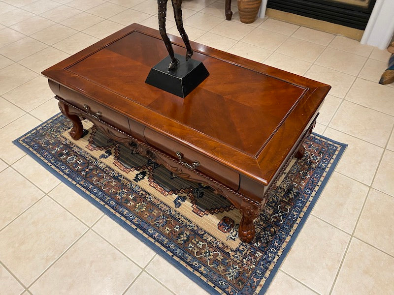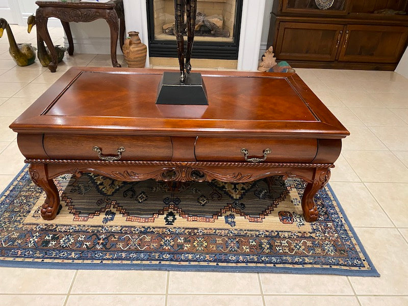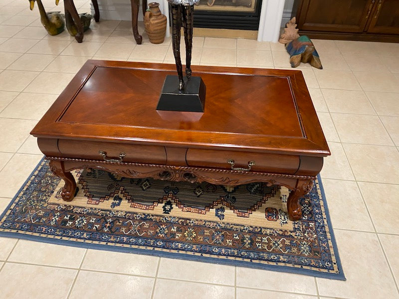 Wood Coffee Table, Carved Legs w/2 Drawers