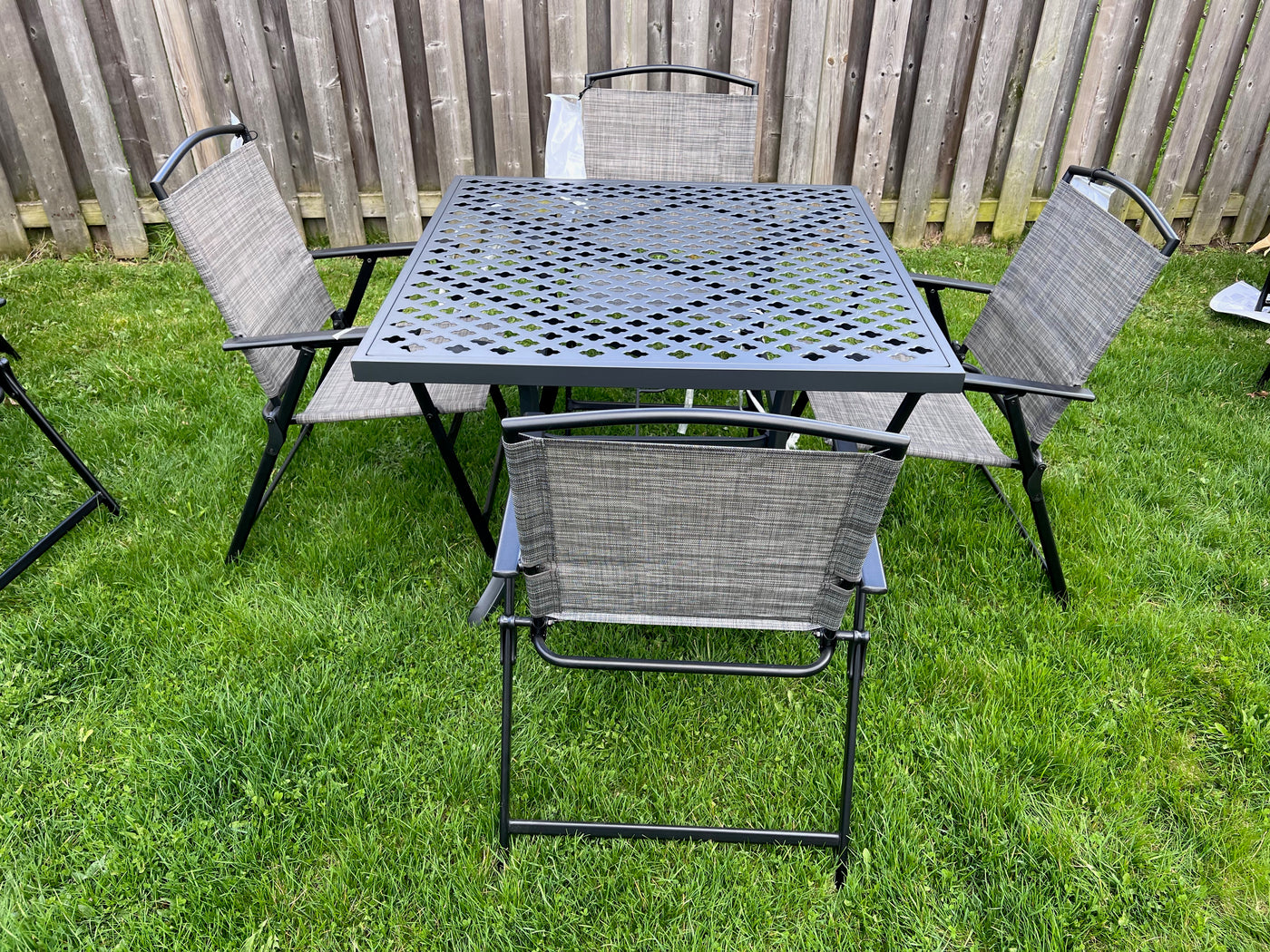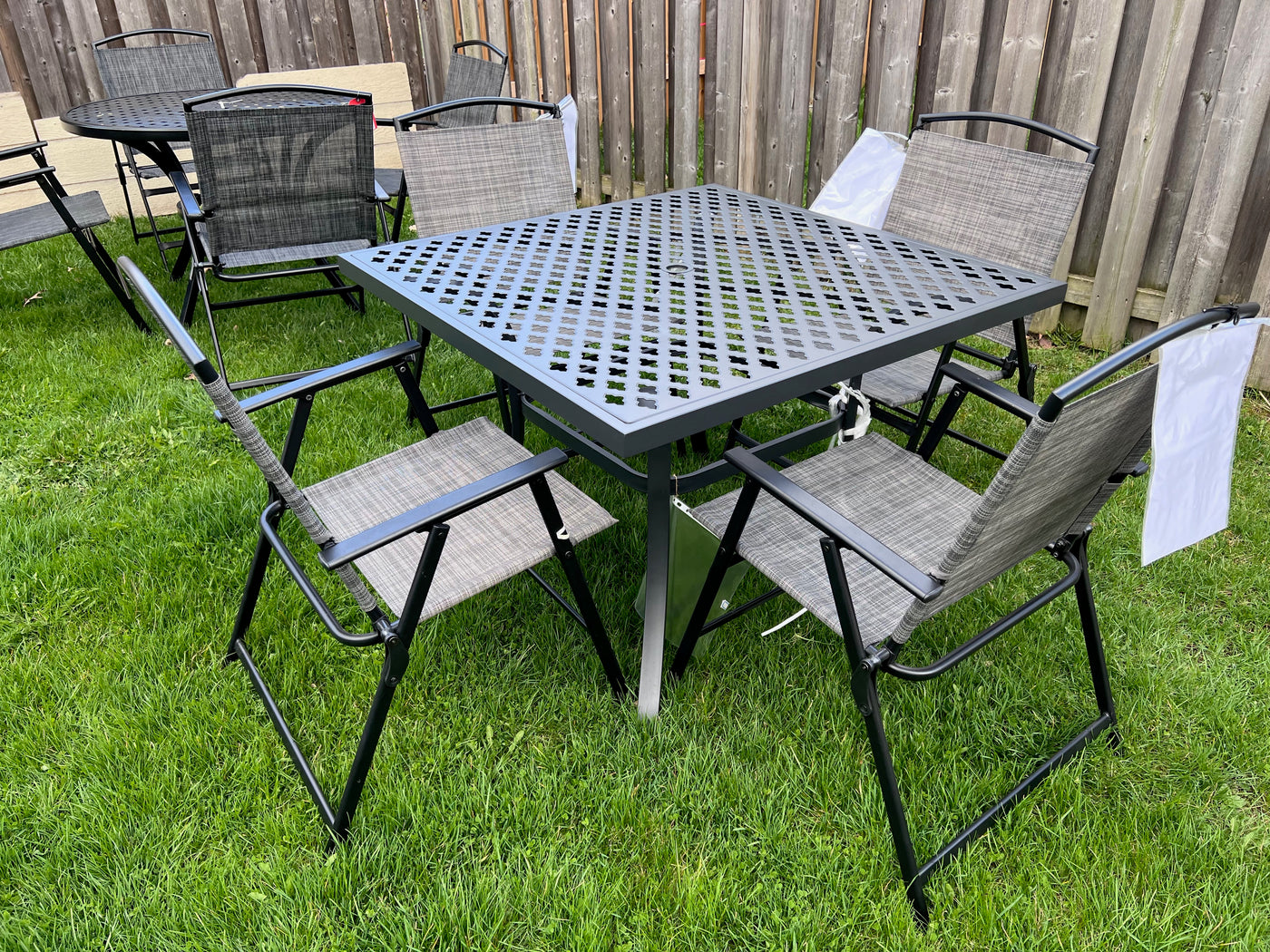 Square Steel Patio Table + 4 Sling Chairs.