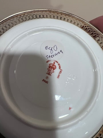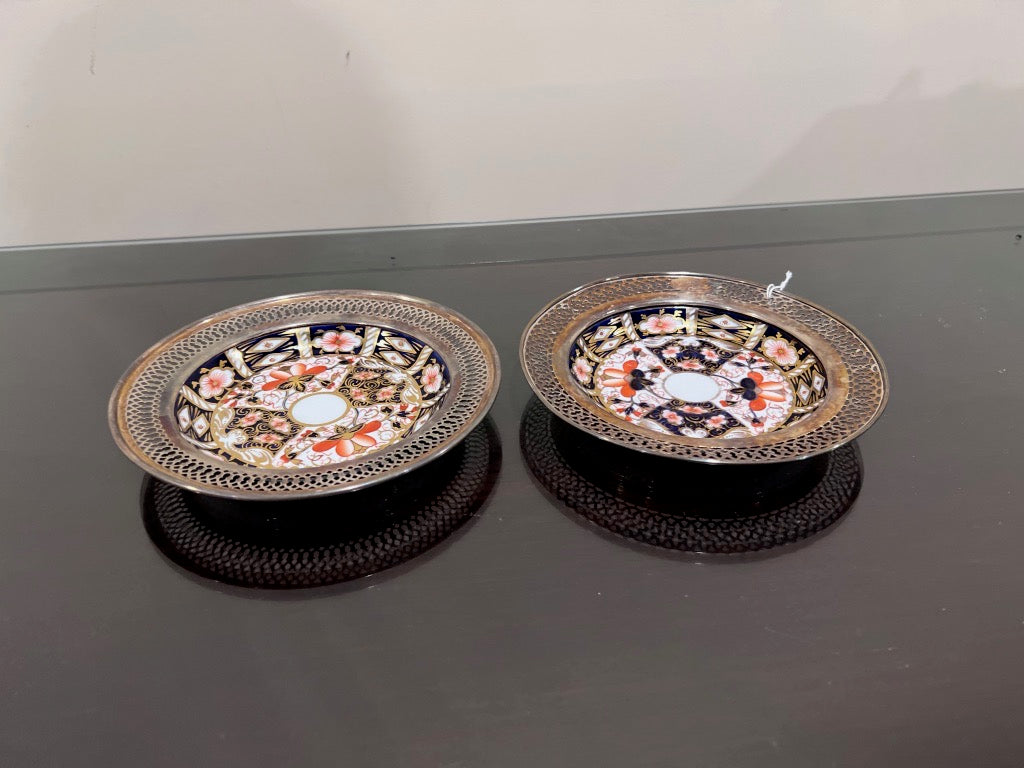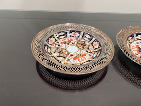 2 Royal Crown Derby Imari 2451 Saucers with Sterling Silver Rims.