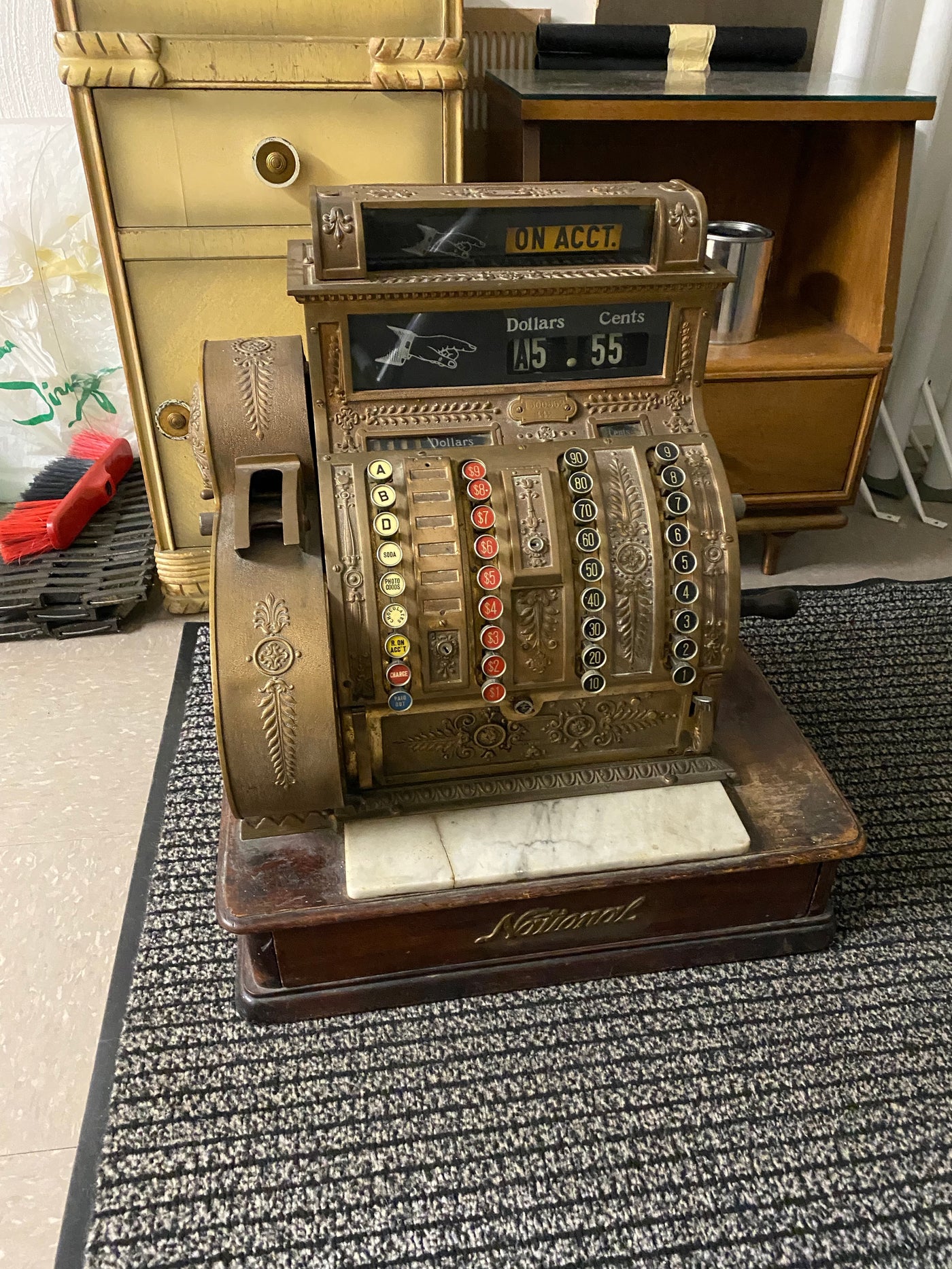 Antique Brass National Cash Register Model 442- Circa 1914.