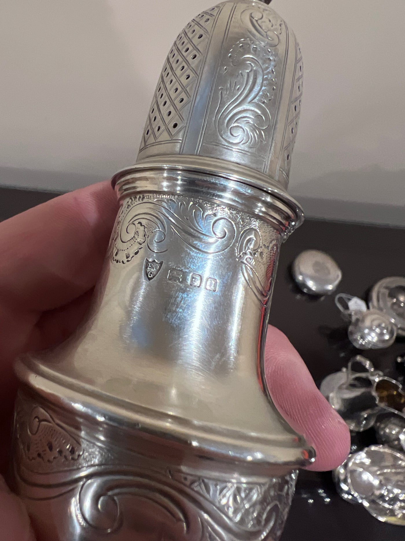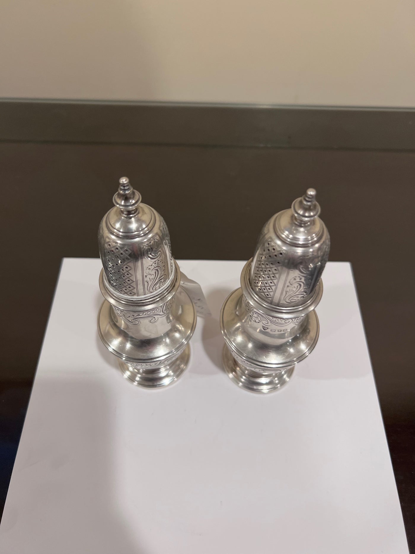Pair of Sterling Silver Sugar Shakers 6"h- 319g.