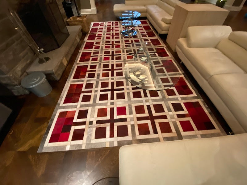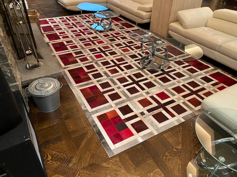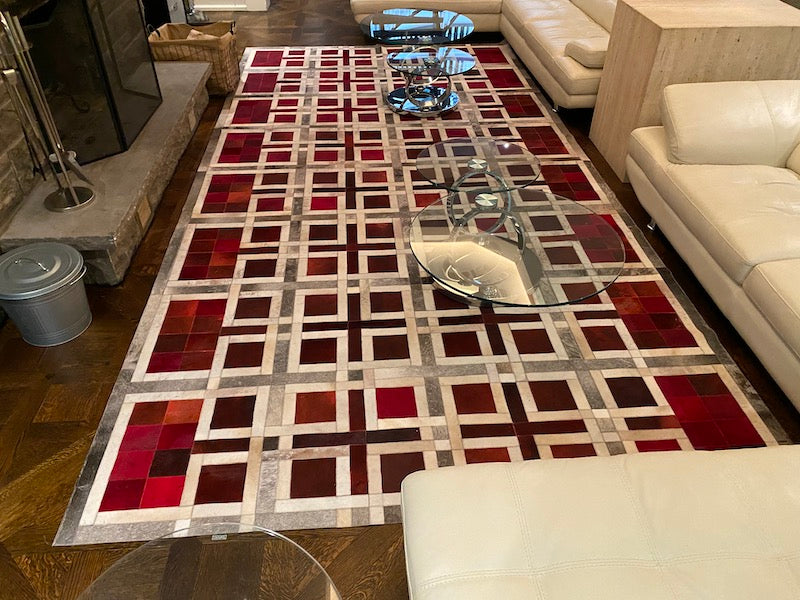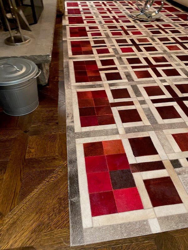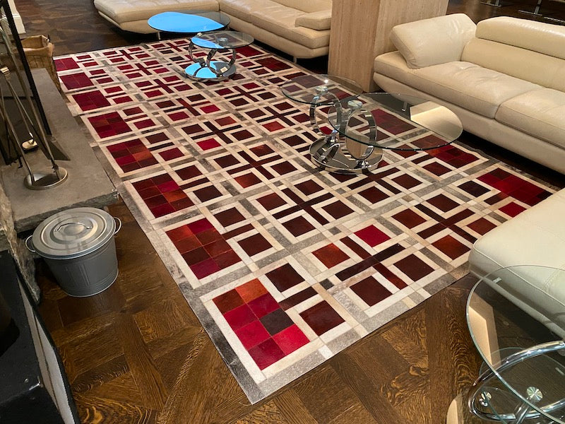 Custom Made Red Patterned Abstract Thin Profile Rug.