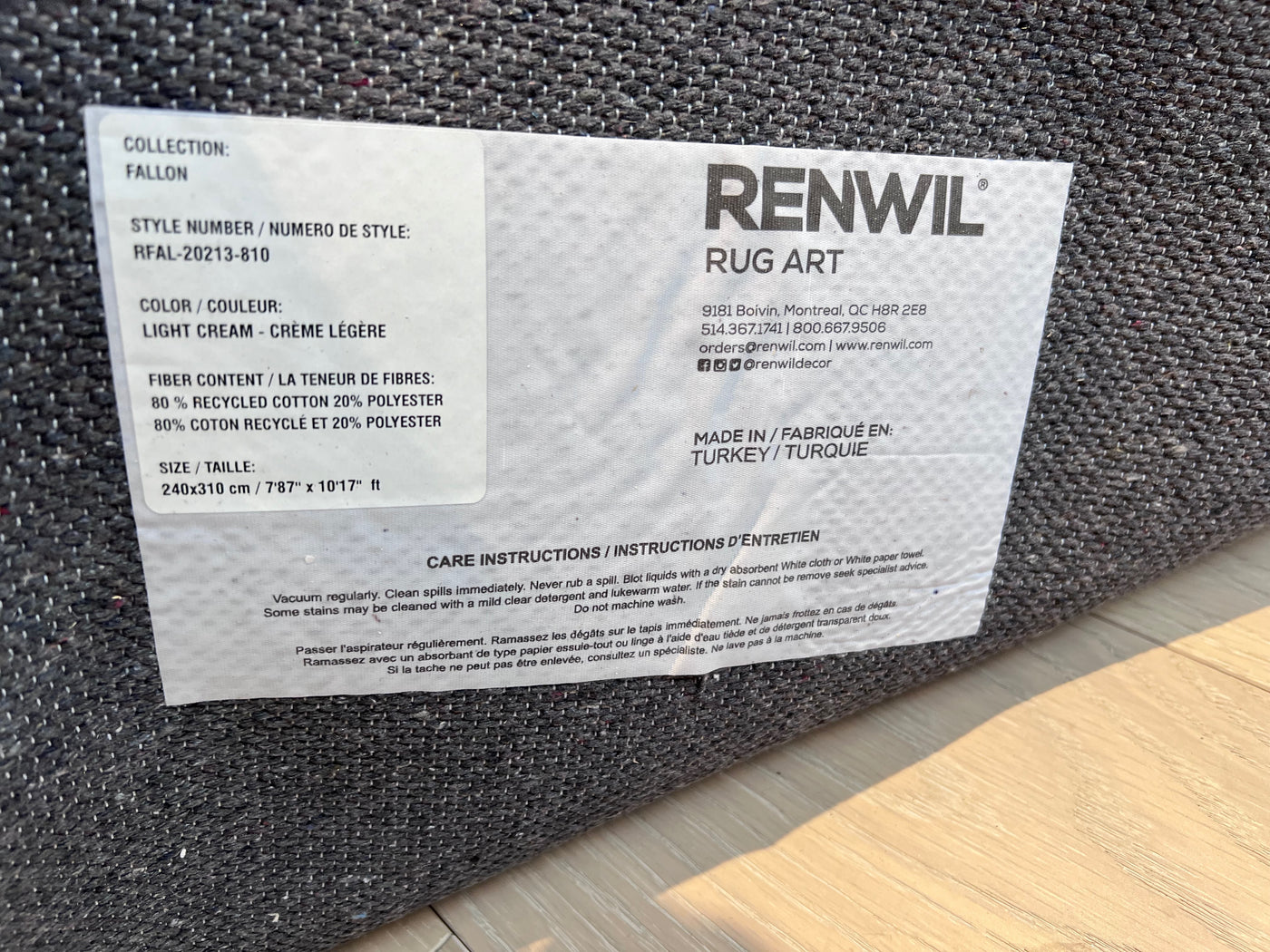 Renwil RFAL-20213-810 Light Cream Fallon Rug (*Retail value $695).