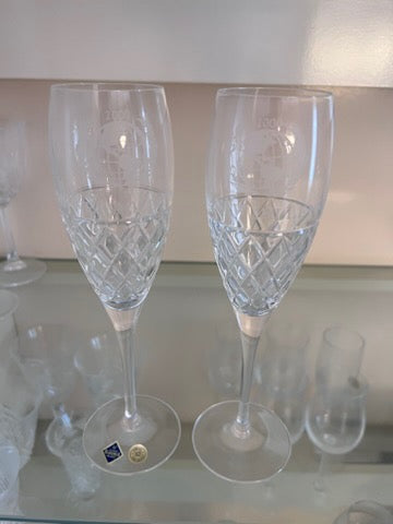 2 Jihlavske Sklarny Bohemia 24% Lead Crystal Champagne Flutes.