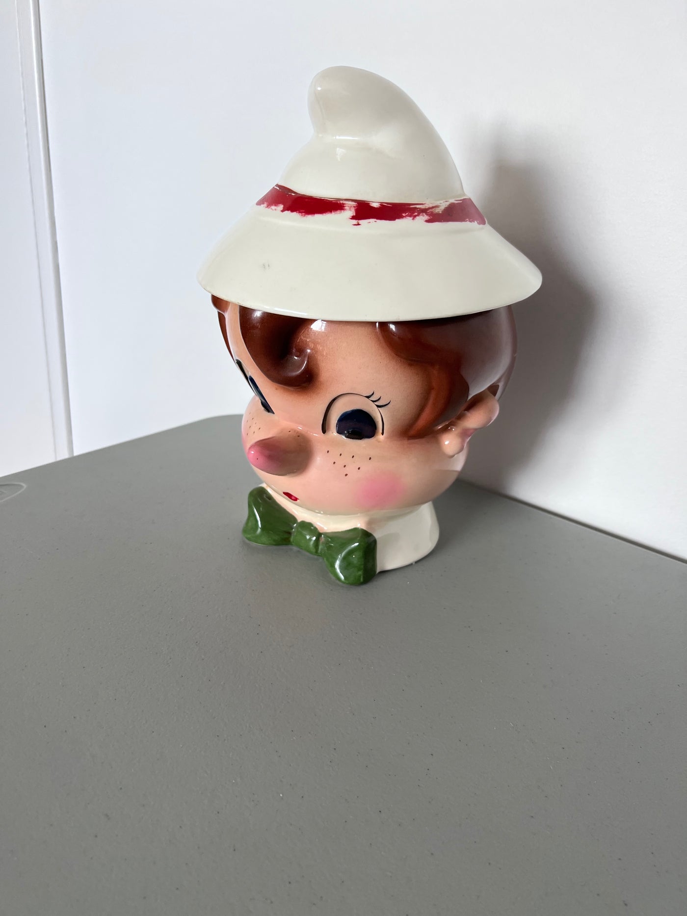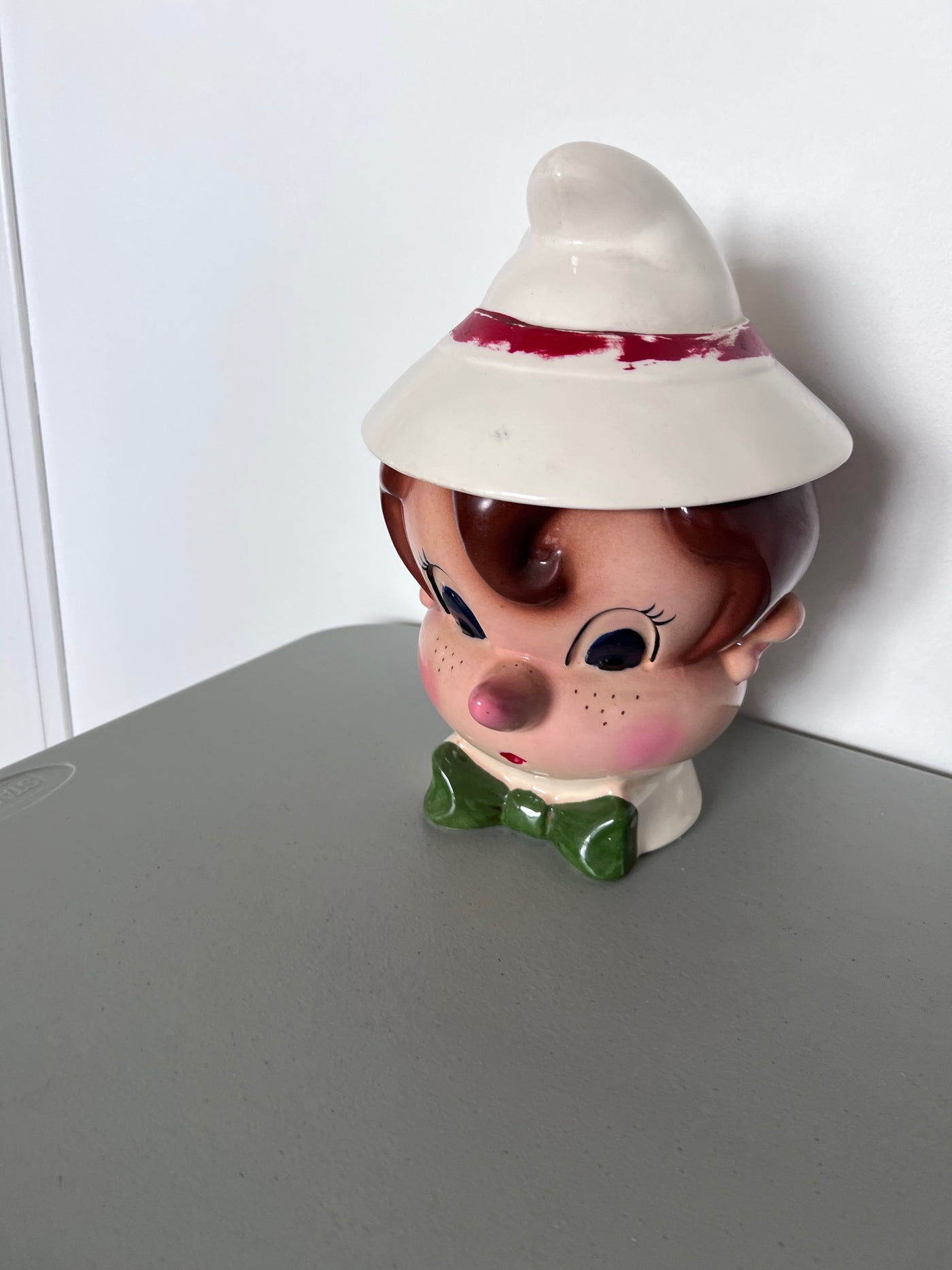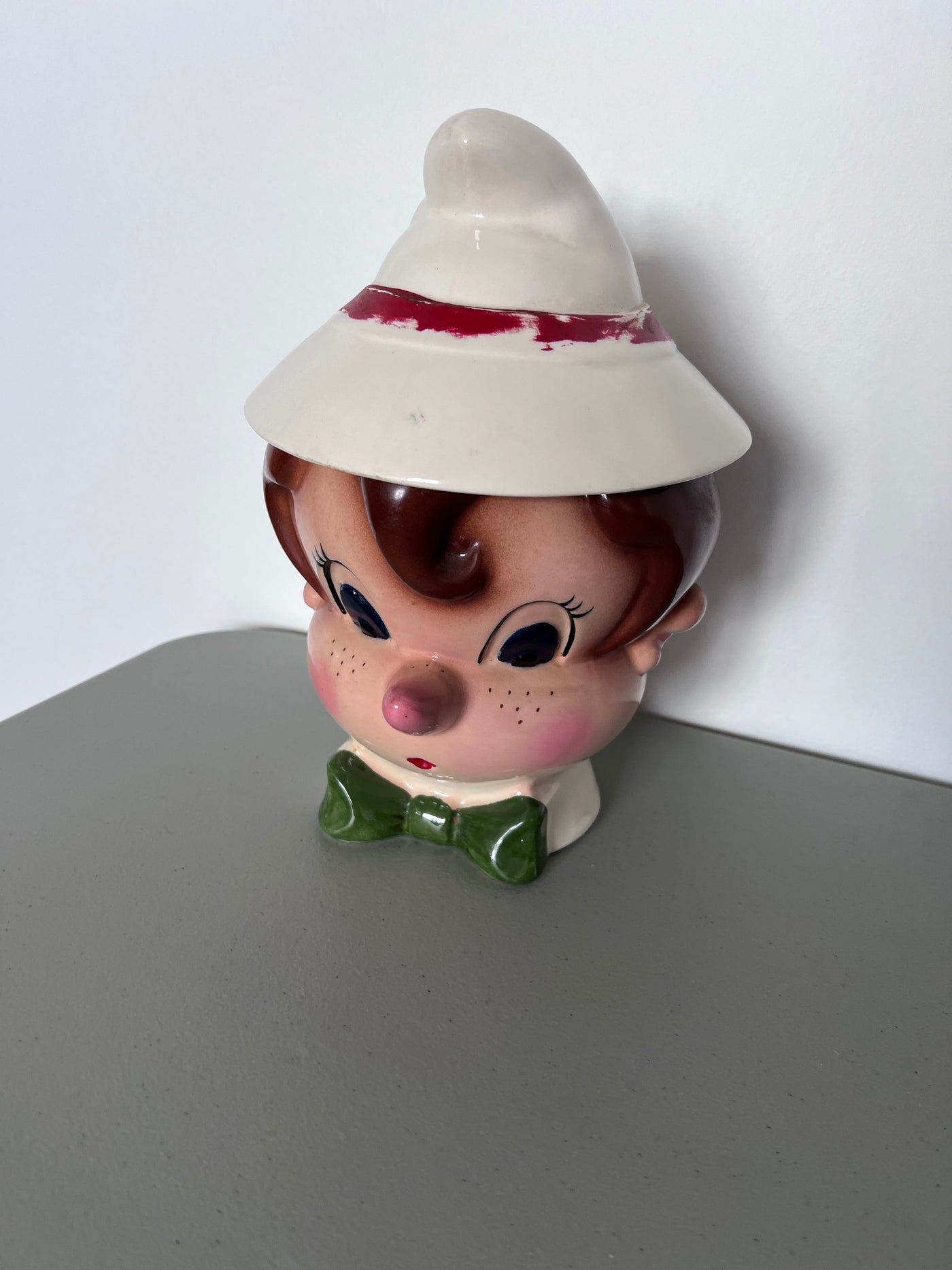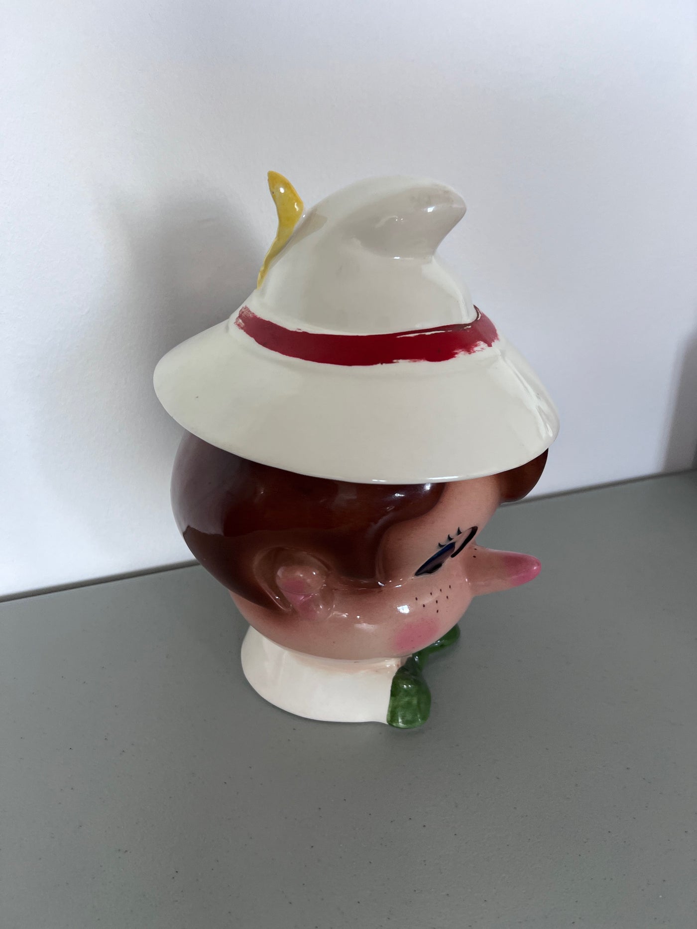 Vintage Pinocchio Cooker Jar with Hat, Metlox Manufacturing Co