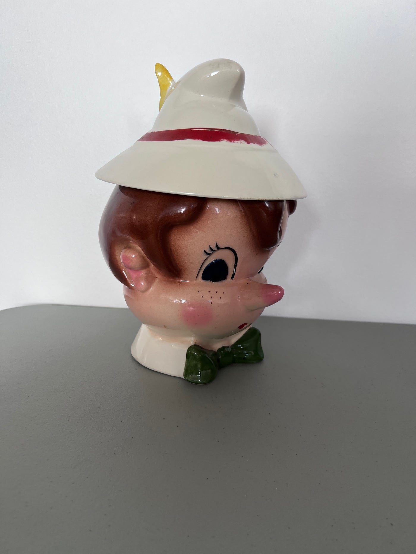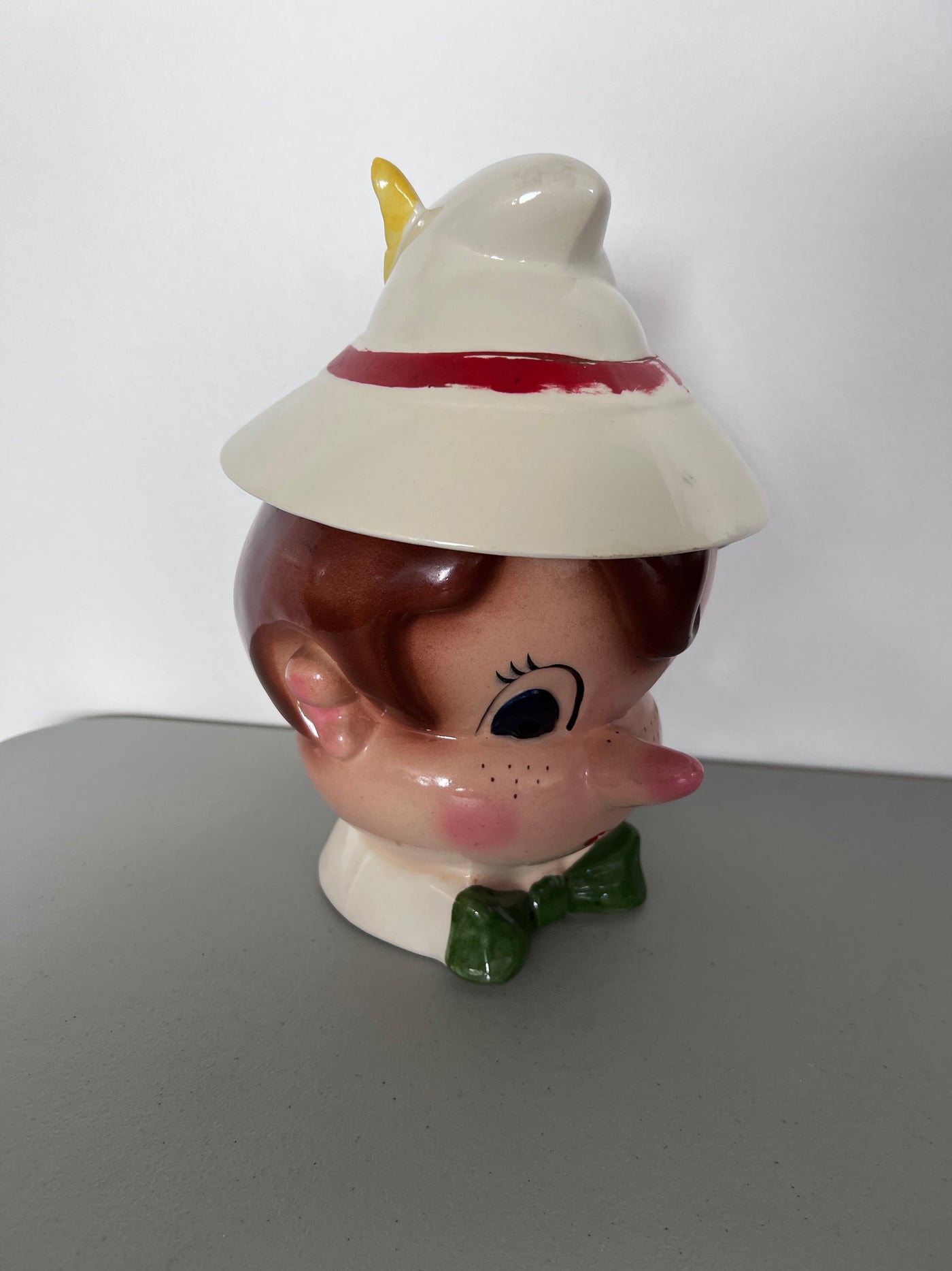 Vintage Pinocchio Cooker Jar with Hat, Metlox Manufacturing Co.