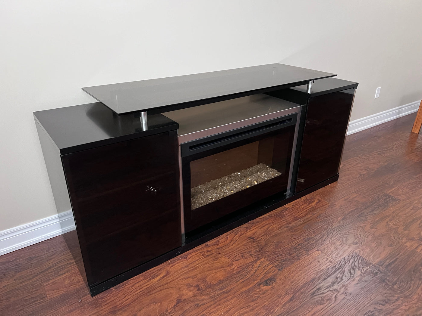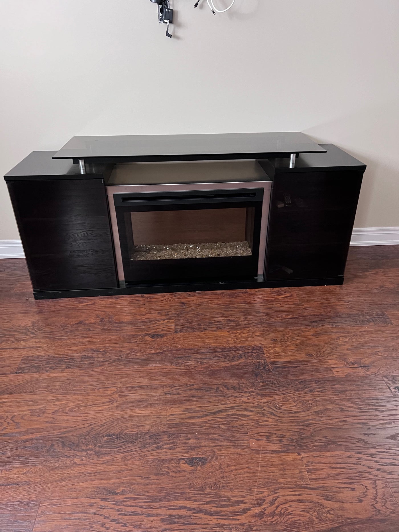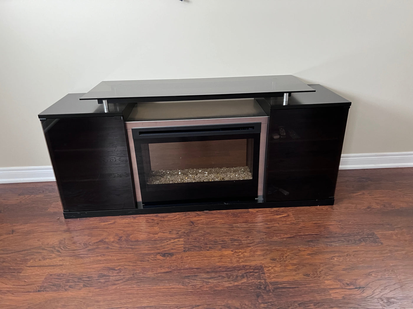 Dimplex 'Sam-B-5000B' Fireplace Marana Media Console. Marana offers media console fireplaces with floating glass top which supports up to a 60 inch flat screen TV. The fireplace takes a 33 inch log firebox and a multi-function remote control.