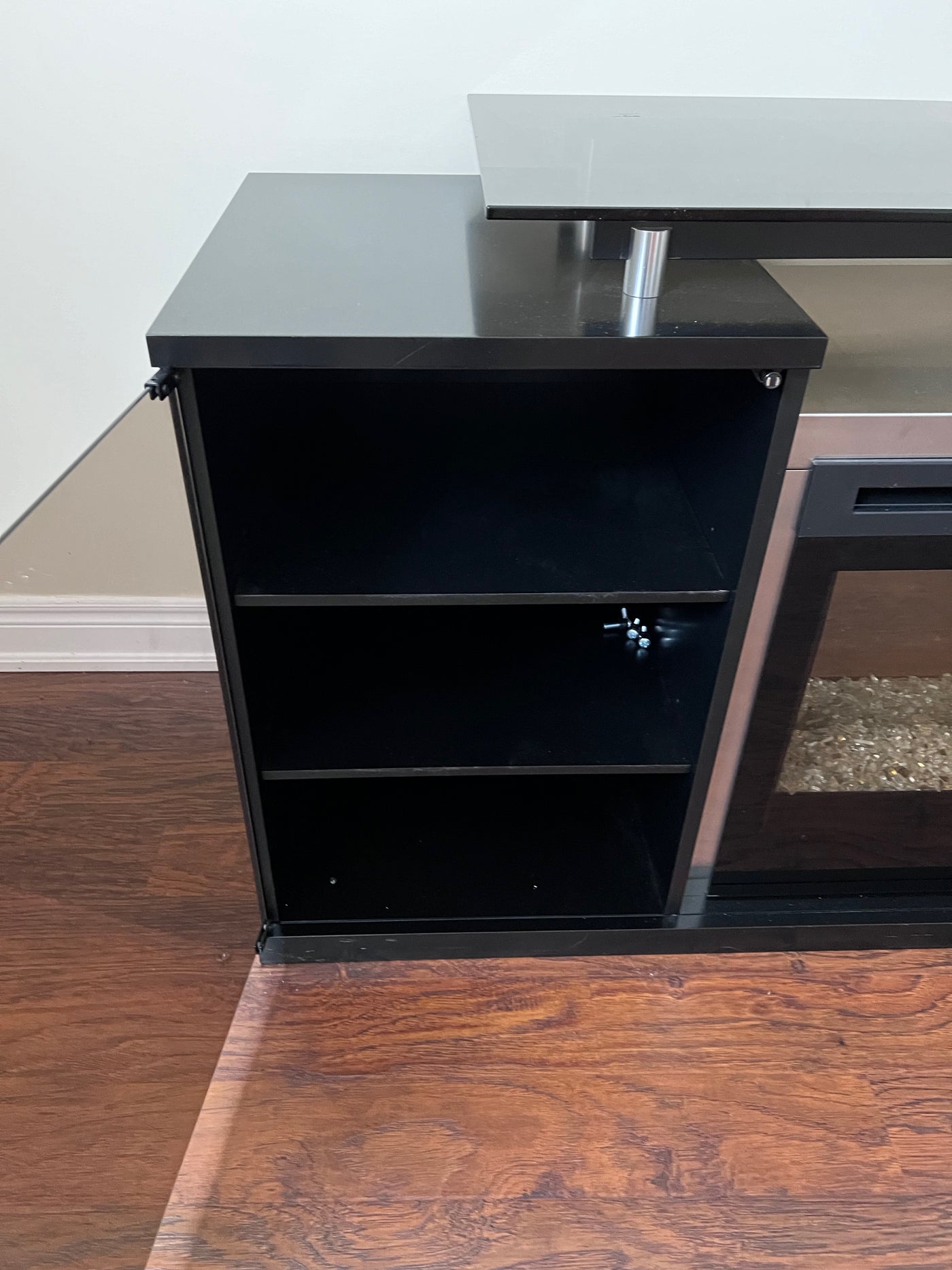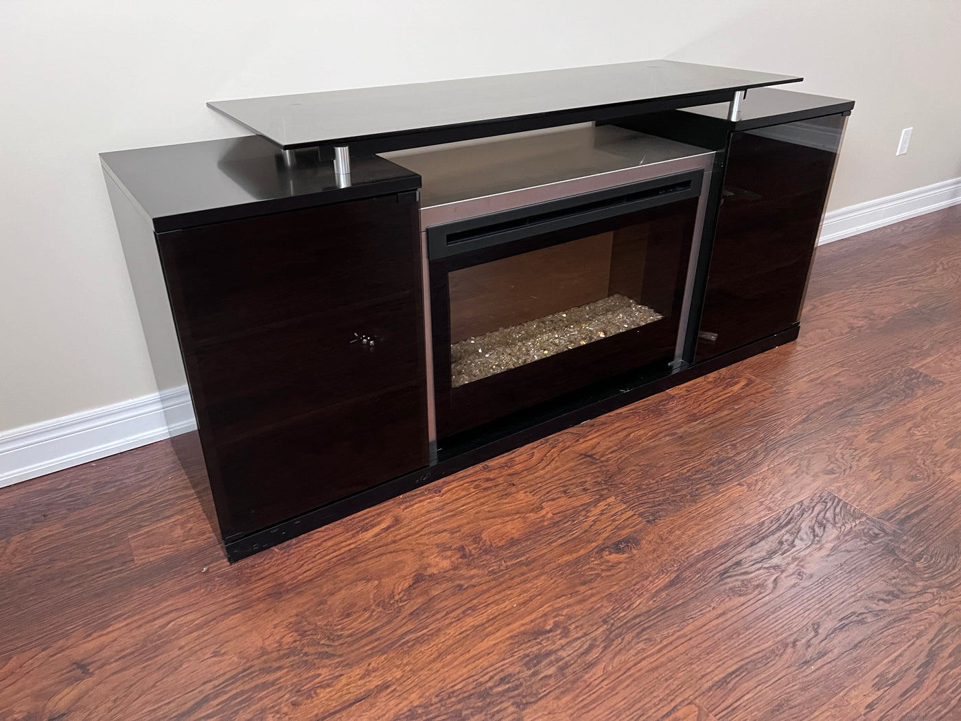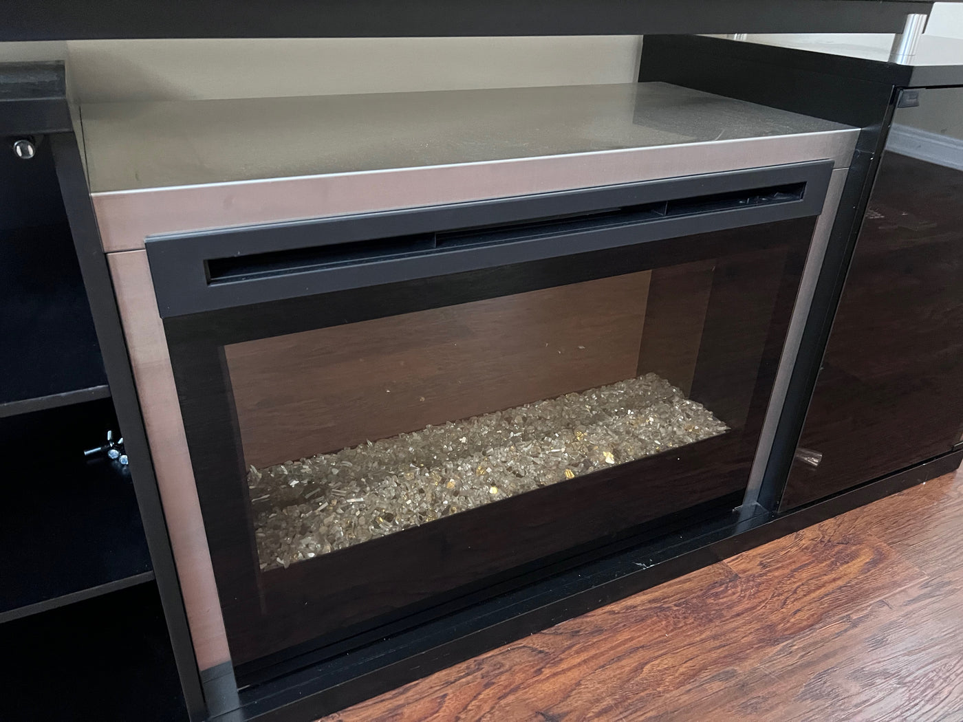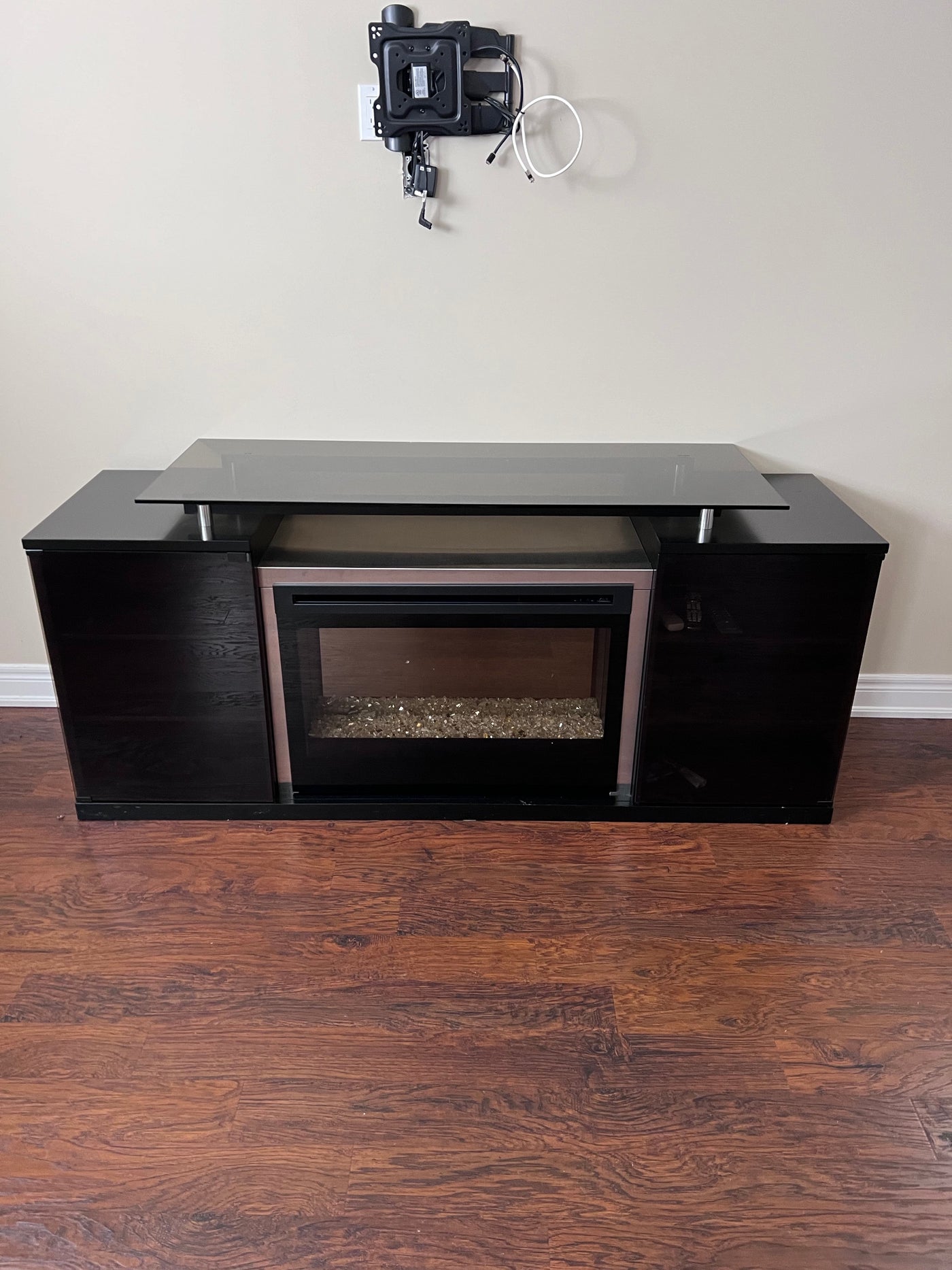 Dimplex 'Sam-B-5000B' Fireplace Marana Media Console. Marana offers media console fireplaces with floating glass top which supports up to a 60 inch flat screen TV. The fireplace takes a 33 inch log firebox and a multi-function remote control.