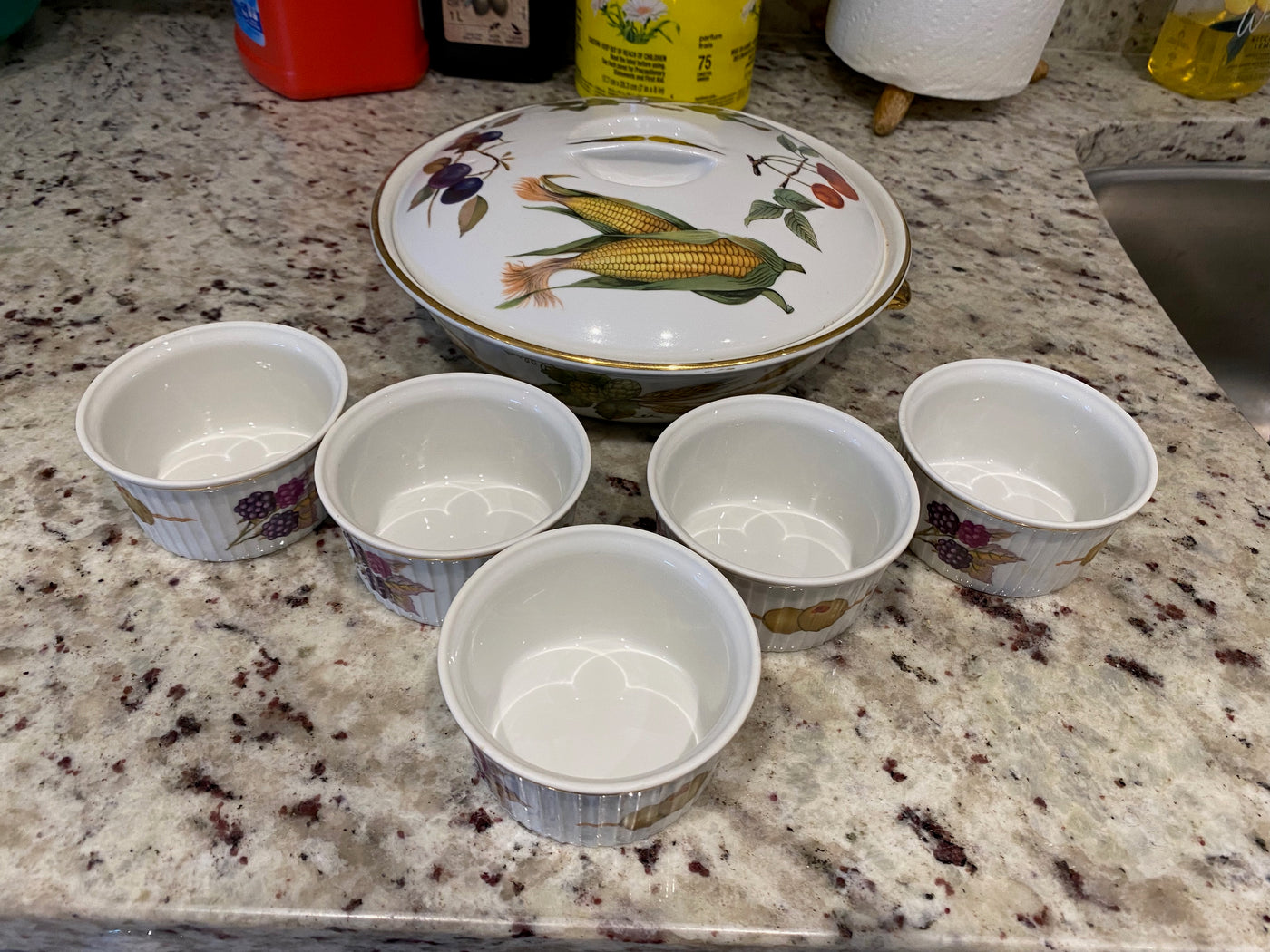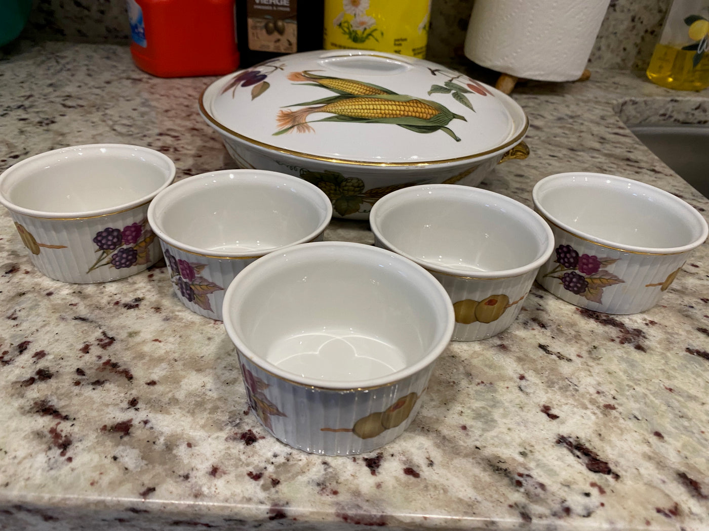 Royal Worcester Evesham- 5 Ramekins + 1 Lidded Dish.