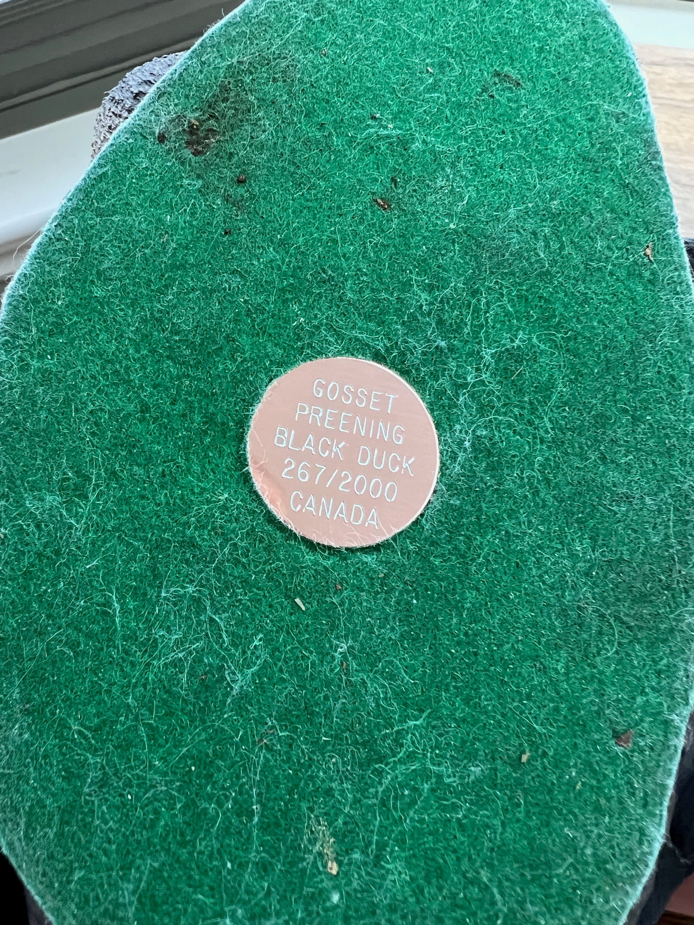 Gosset Preening Black Duck, Numbered 267/2000, Made in Canada.
