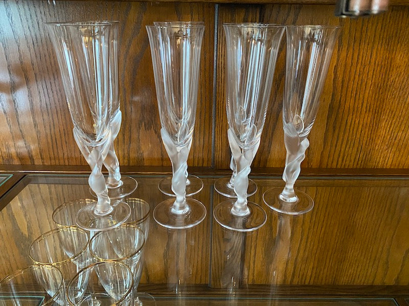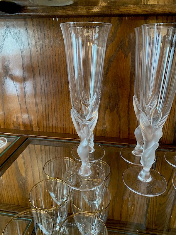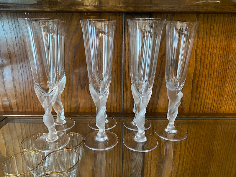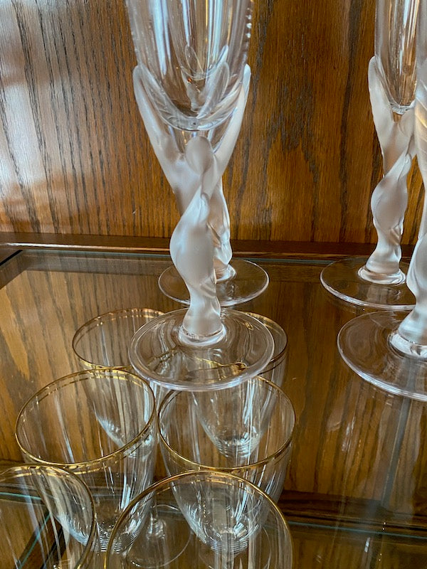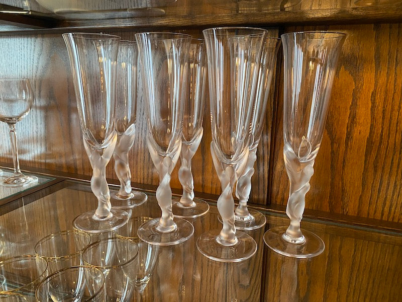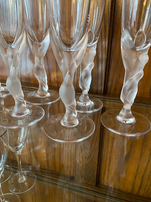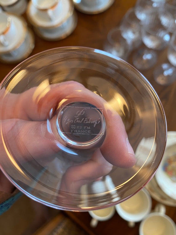 7 Igor Carl Faberge France "Kissing Snow Doves" Champagne Glasses.