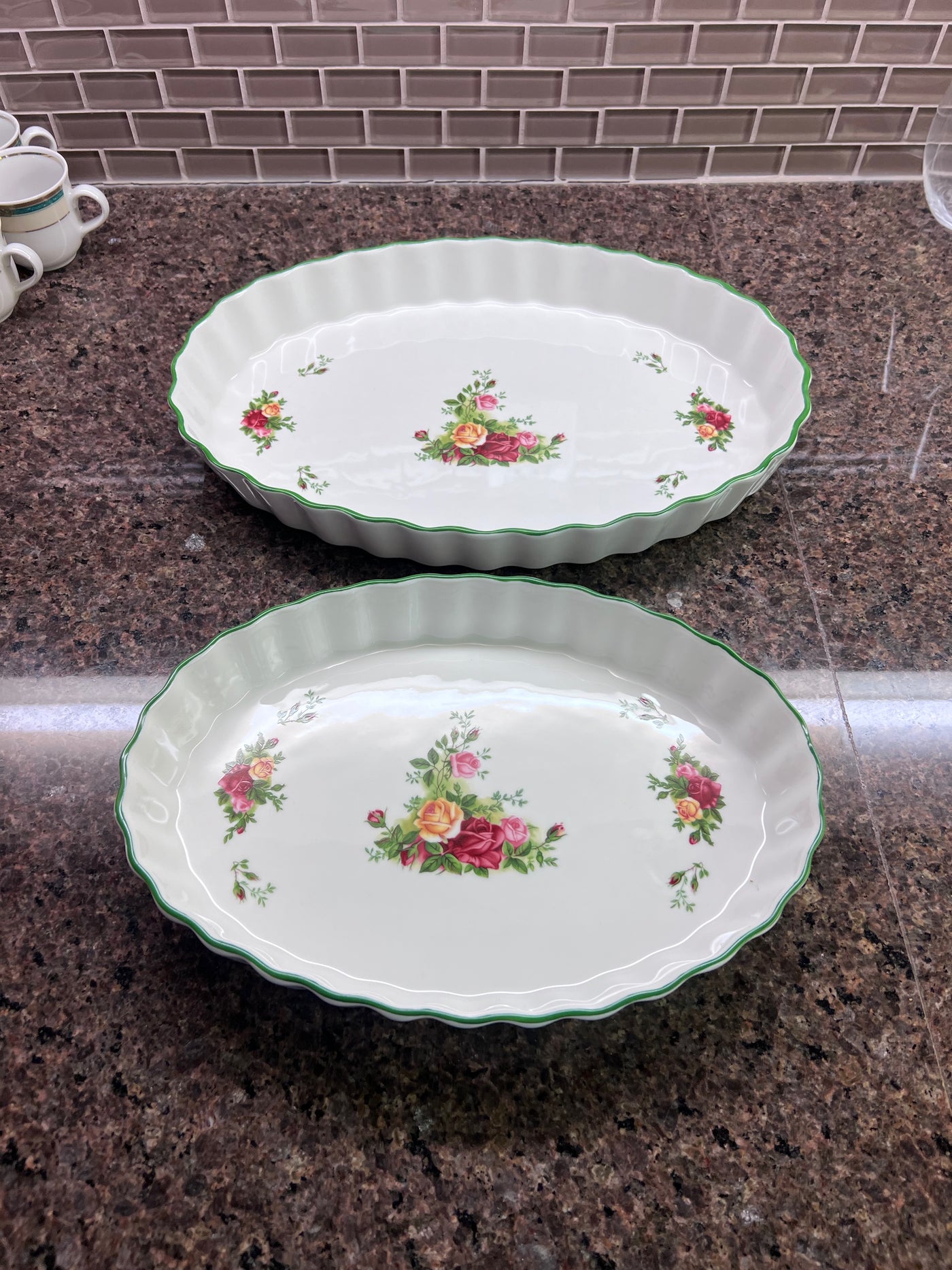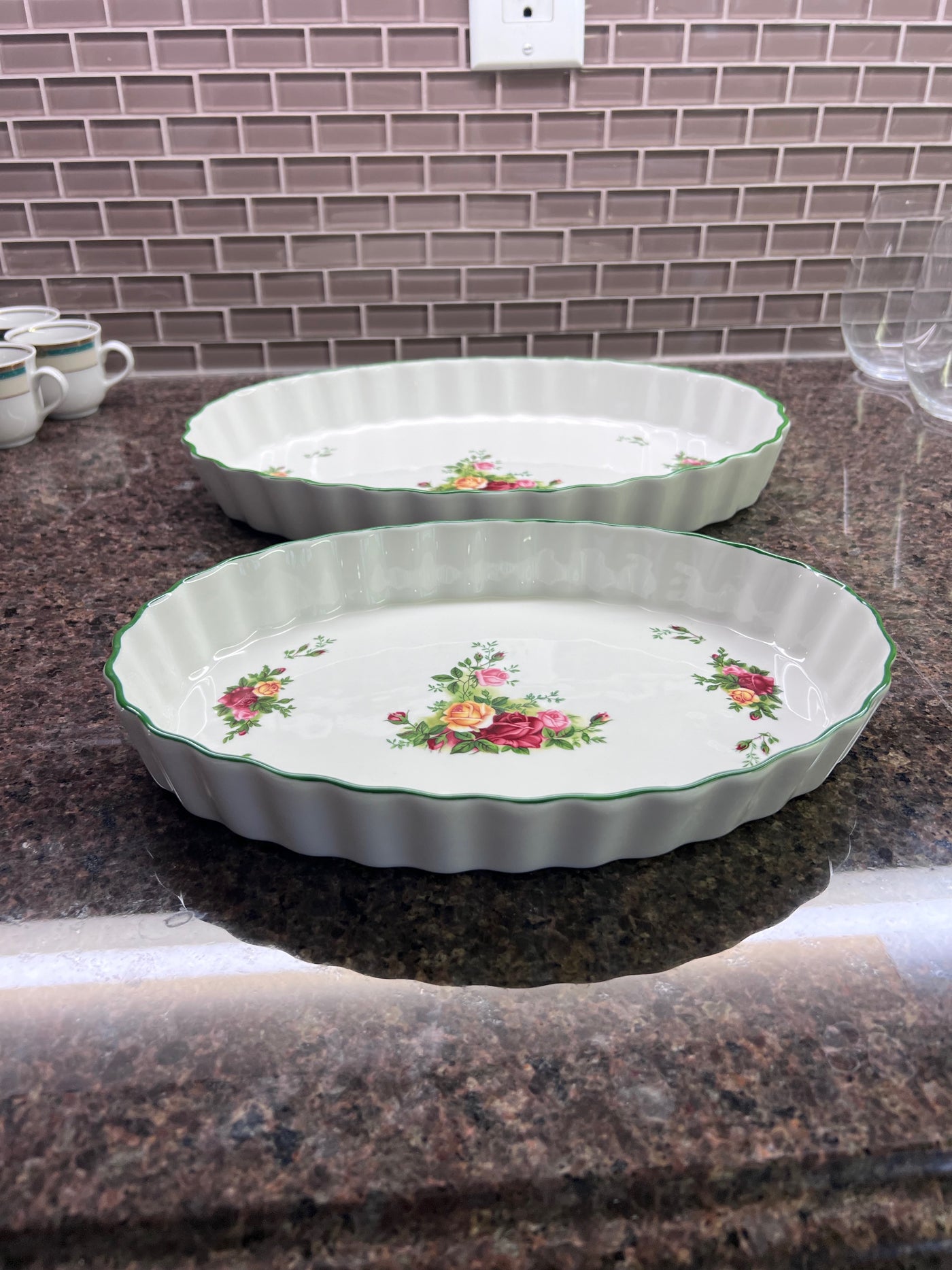 2 Royal Albert Old Country Roses Oval Baking Dishes.
