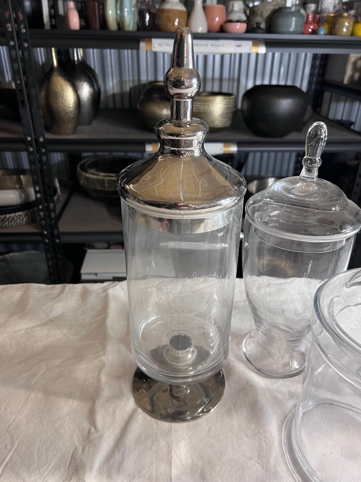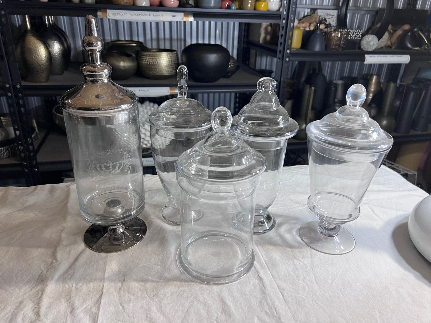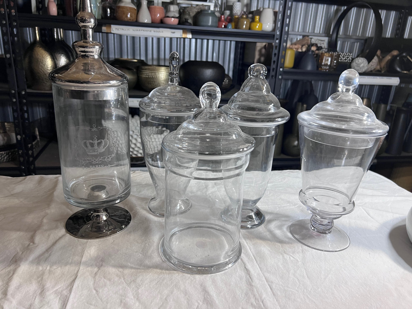 Glass Lidded Jars Lot.