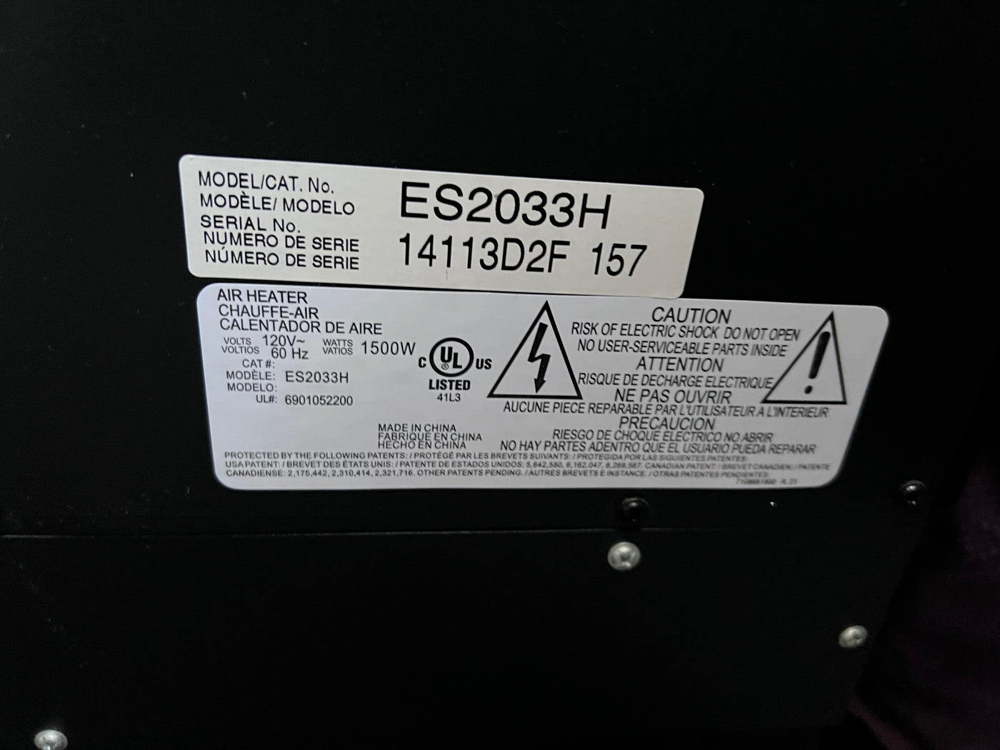Dimplex ES2033 Electric Fireplace/Heater, Black Finish, 20-In. Wide.