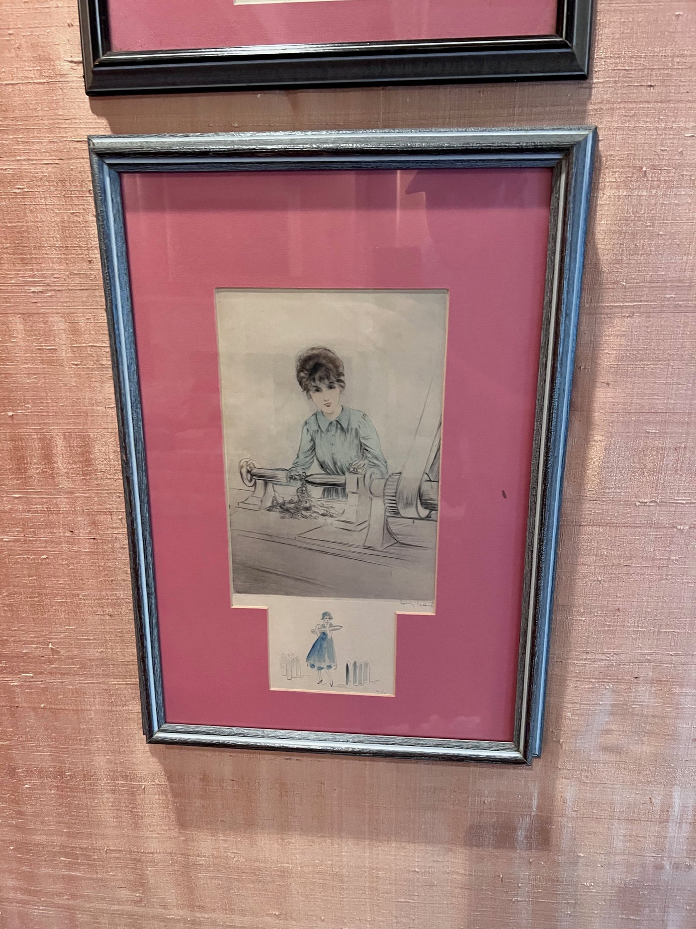 2 Louis Icart Signed Sketches/Etchings- 'WW1 Women'