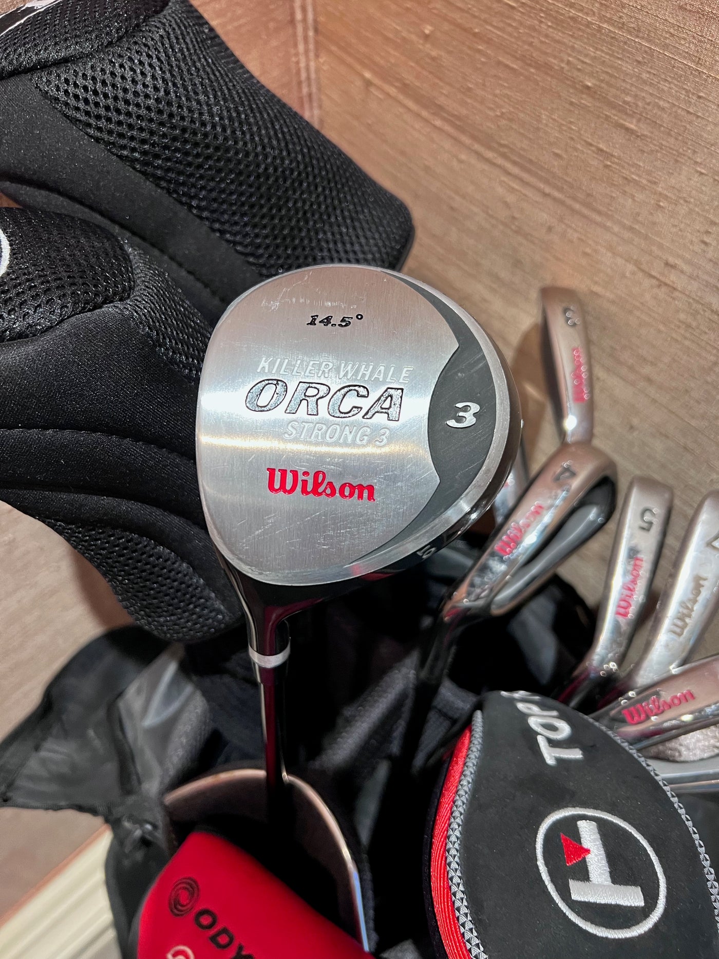 Left Handed Wilson Killer Whale Orca Irons 3-PW, + 1,3,5 Woods, + Odyssey 2 Ball Putter + Bag.