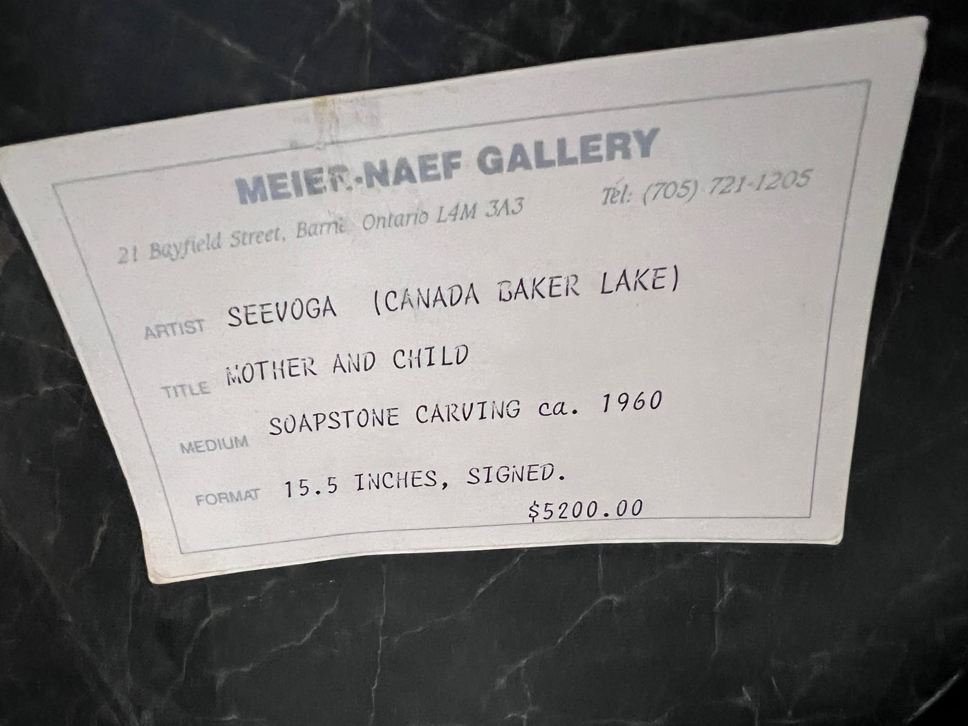 Large Soapstone Carving circa. 1960- by Peter Sevoga titled "Mother and Child" (*Gallery Price $5200).