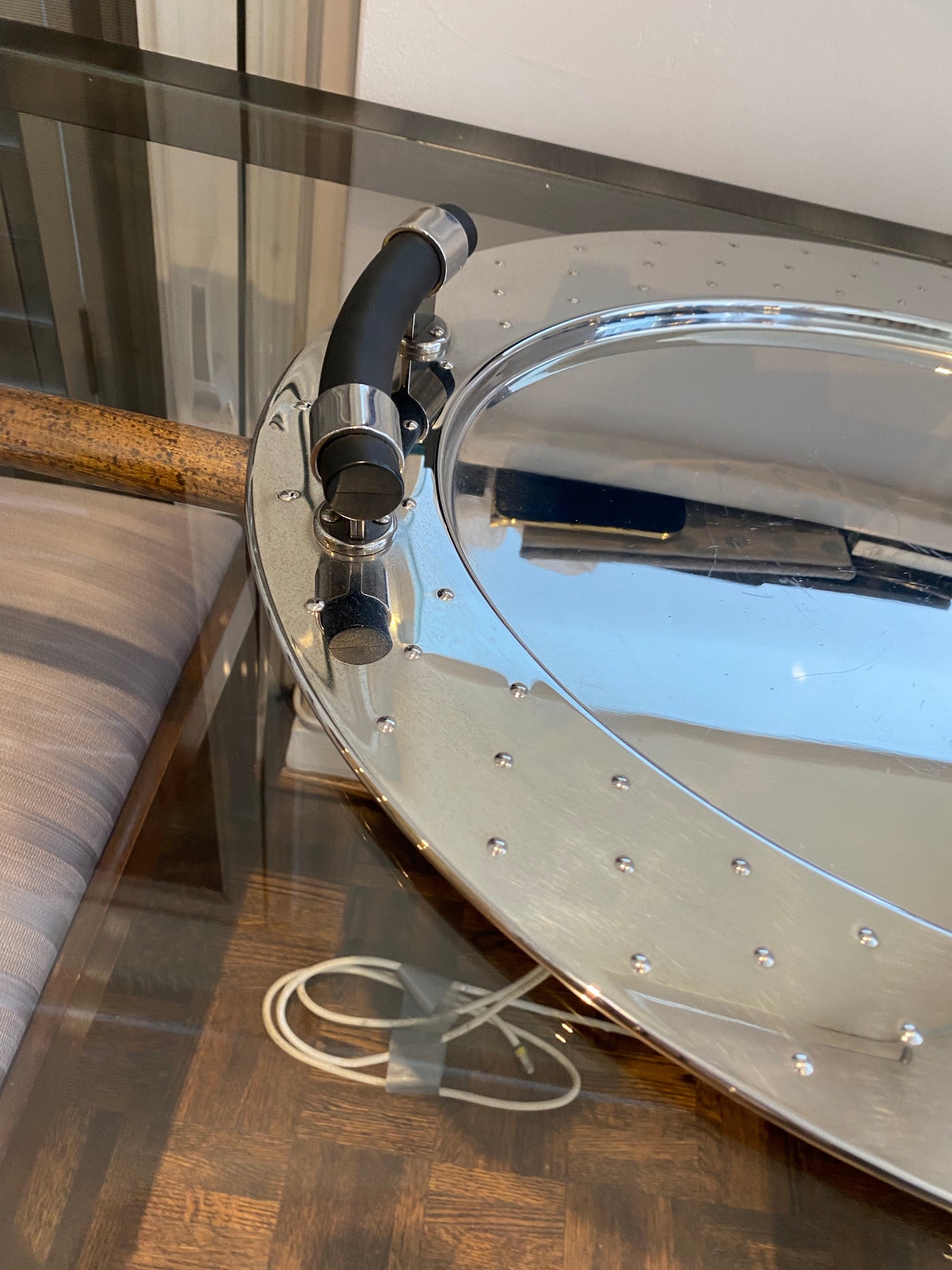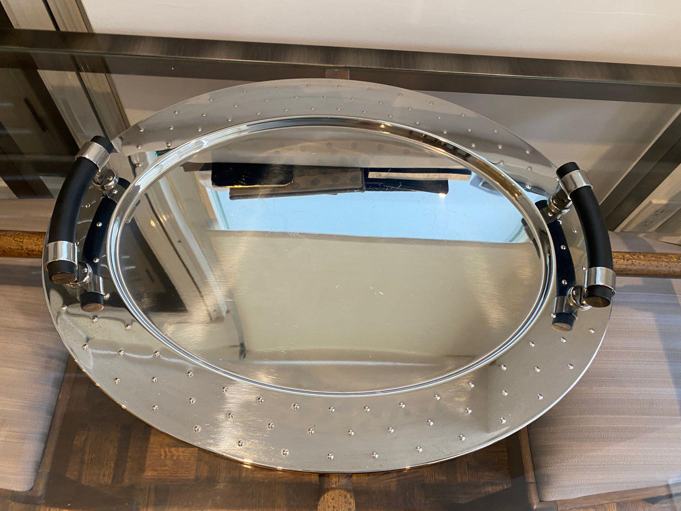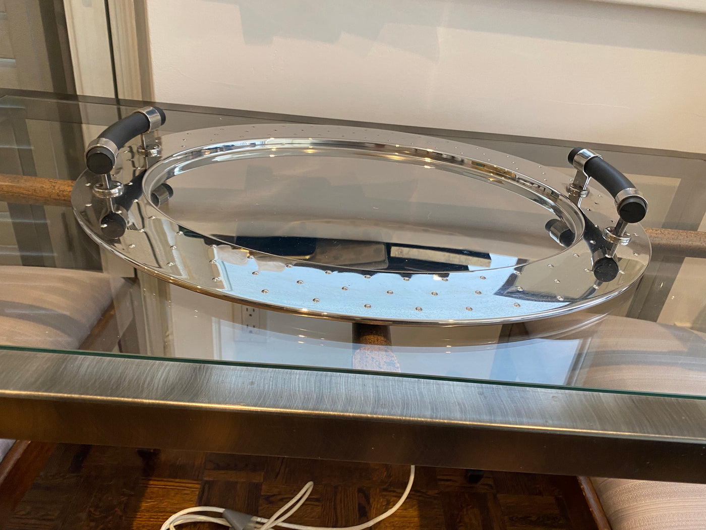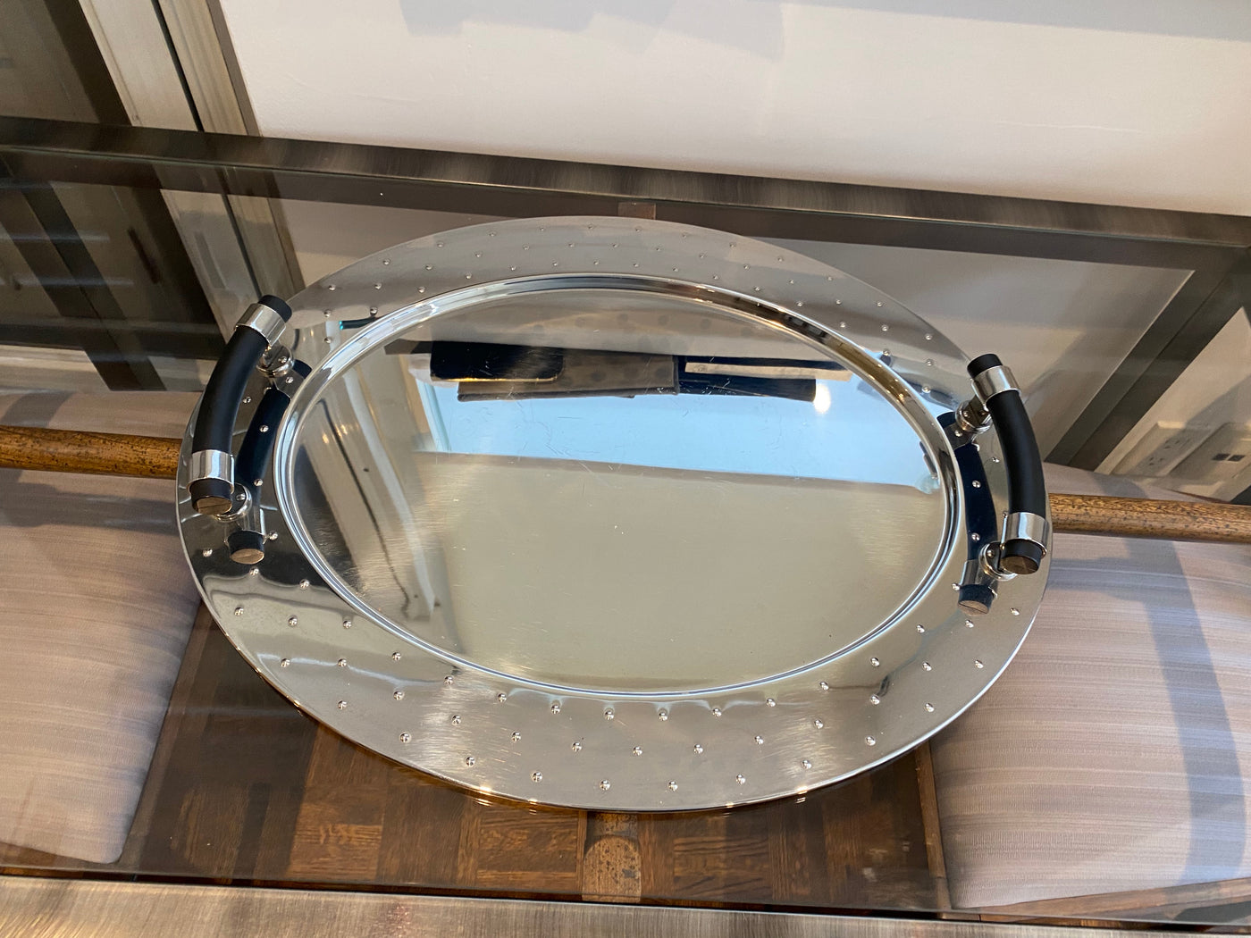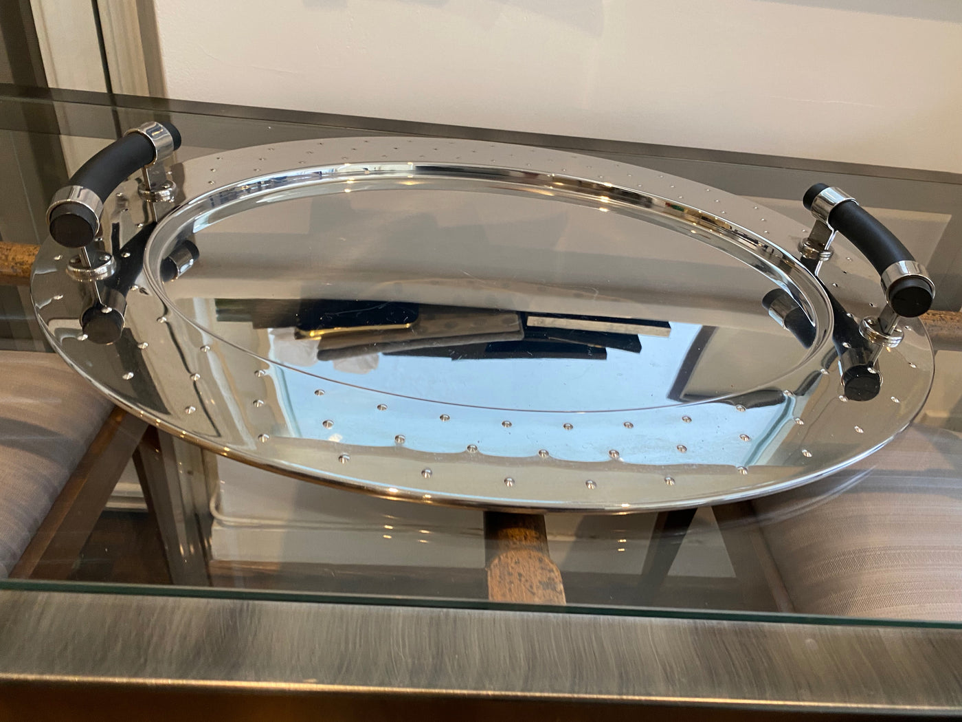 Michael Graves Designed for ALESSI, MG09 Oval Steel Tray w/ Black Handles, 22.75".