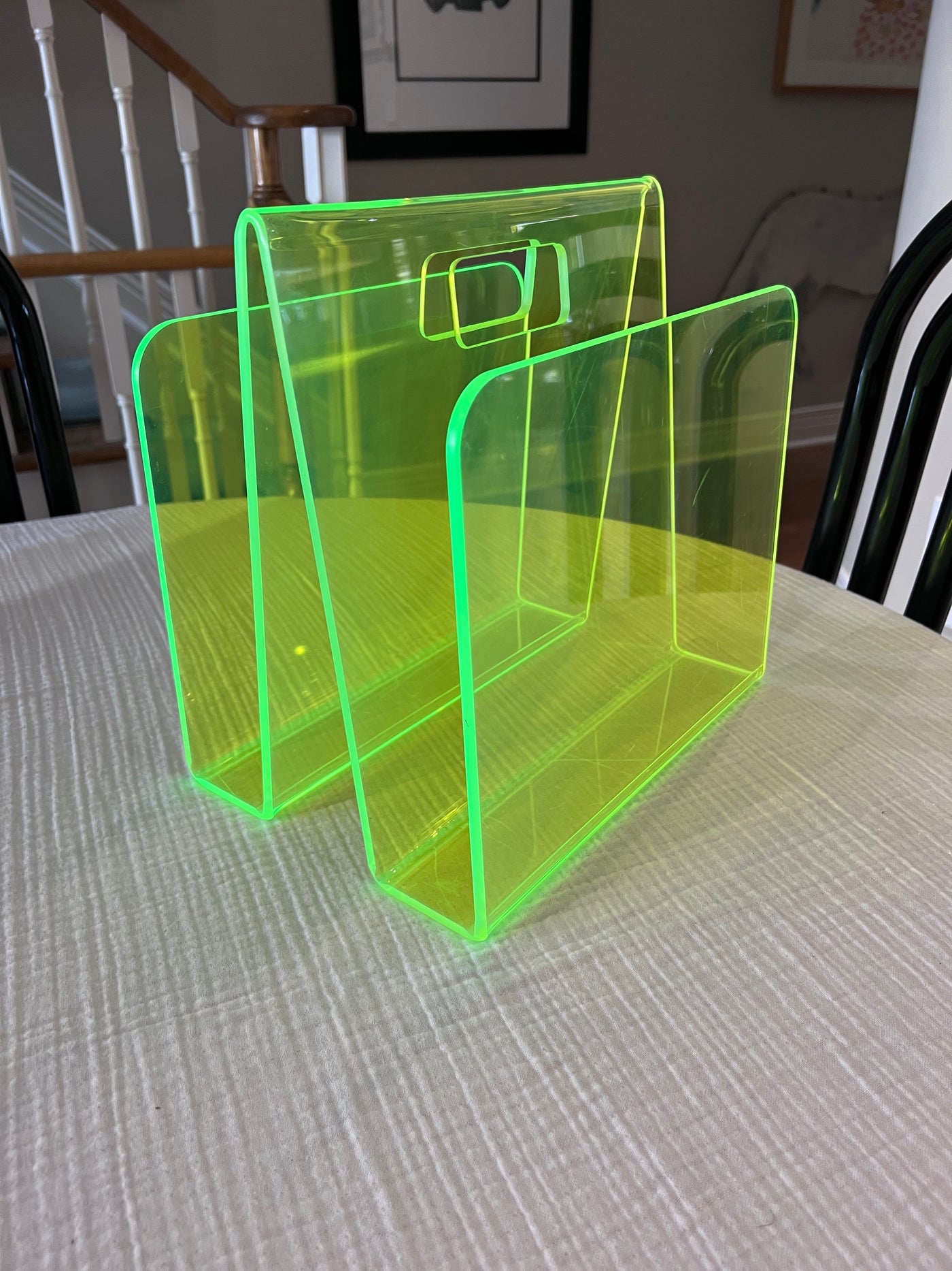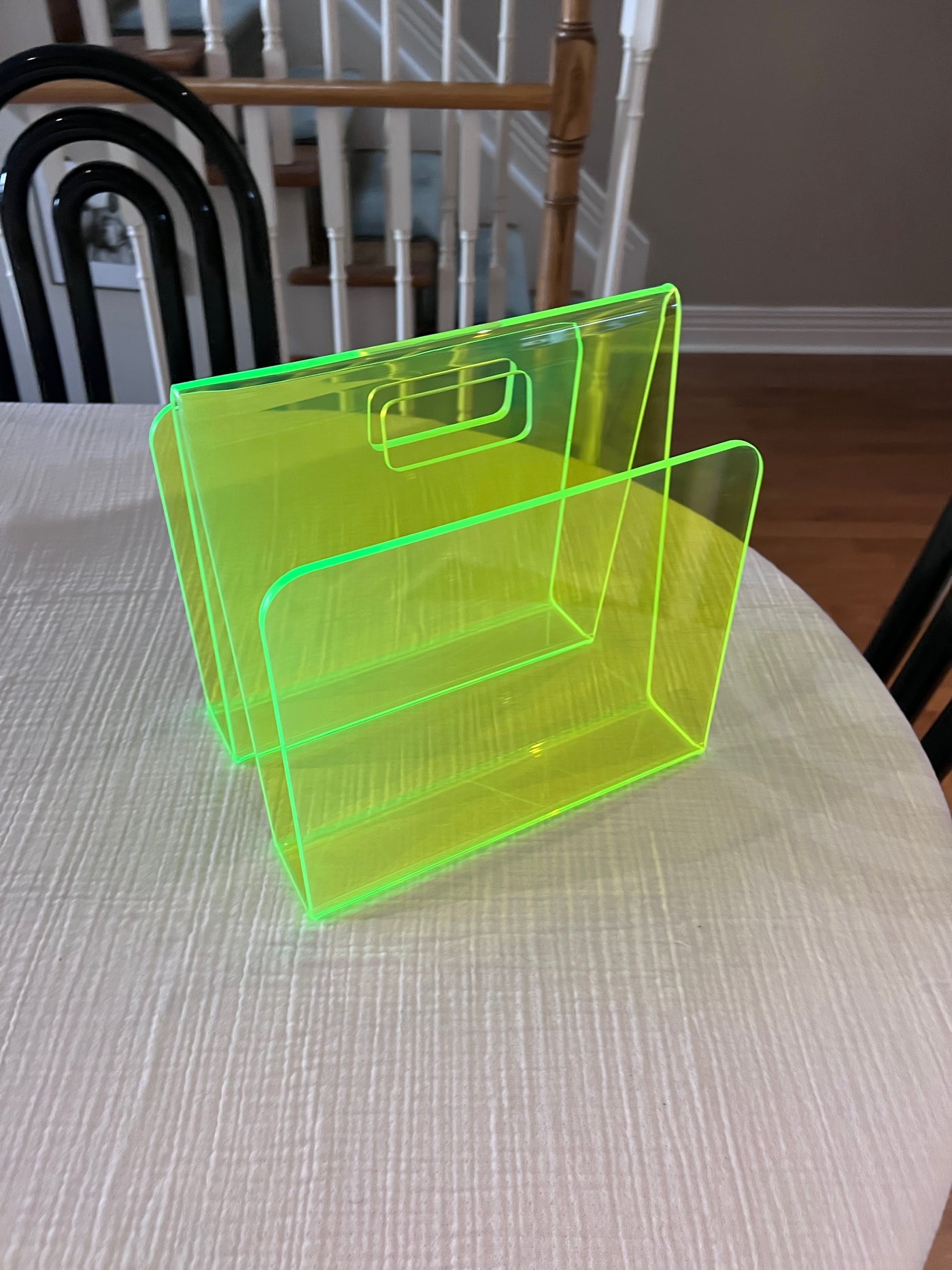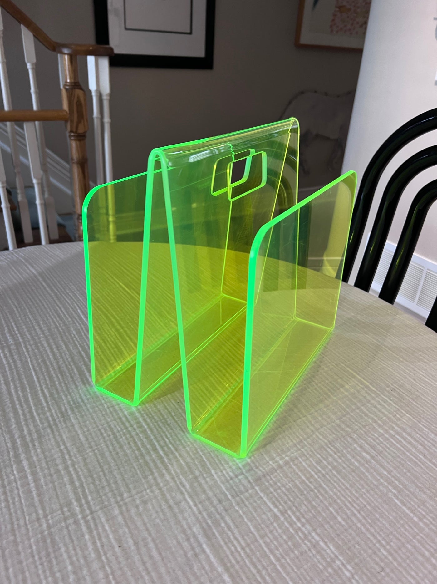 Green Neon Lucite Acrylic Modernist Magazine Rack, 1990's.