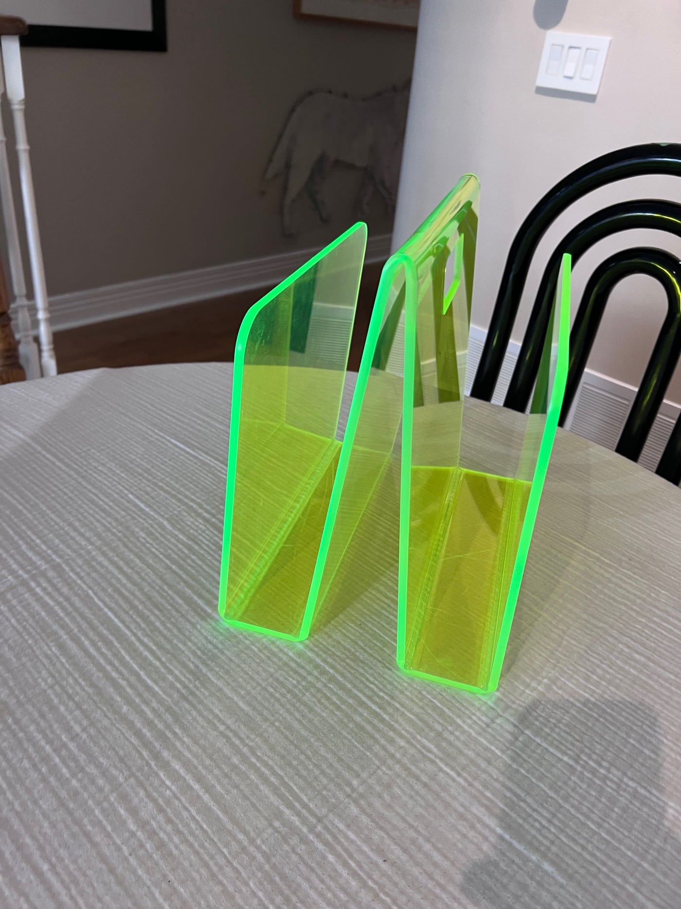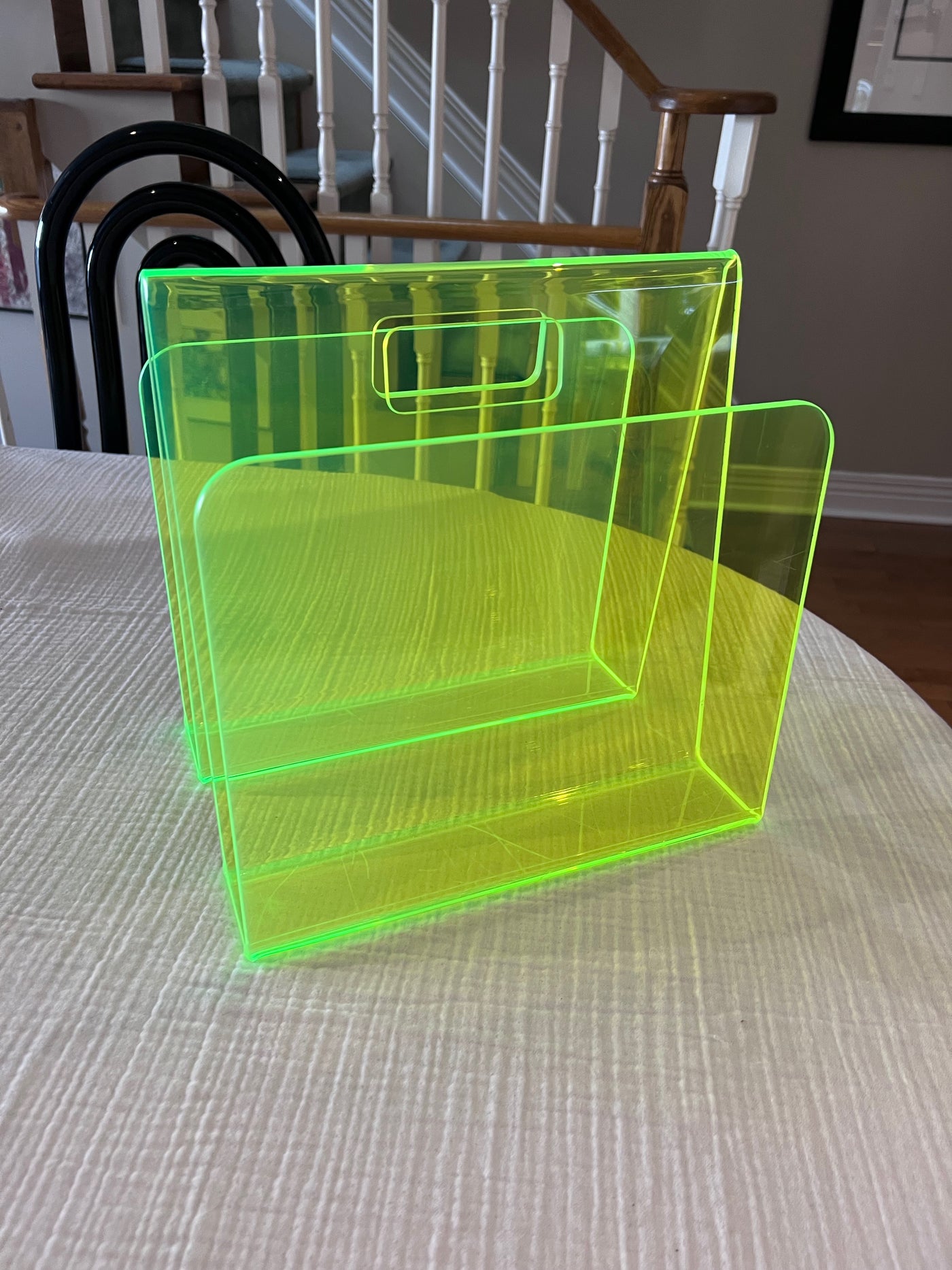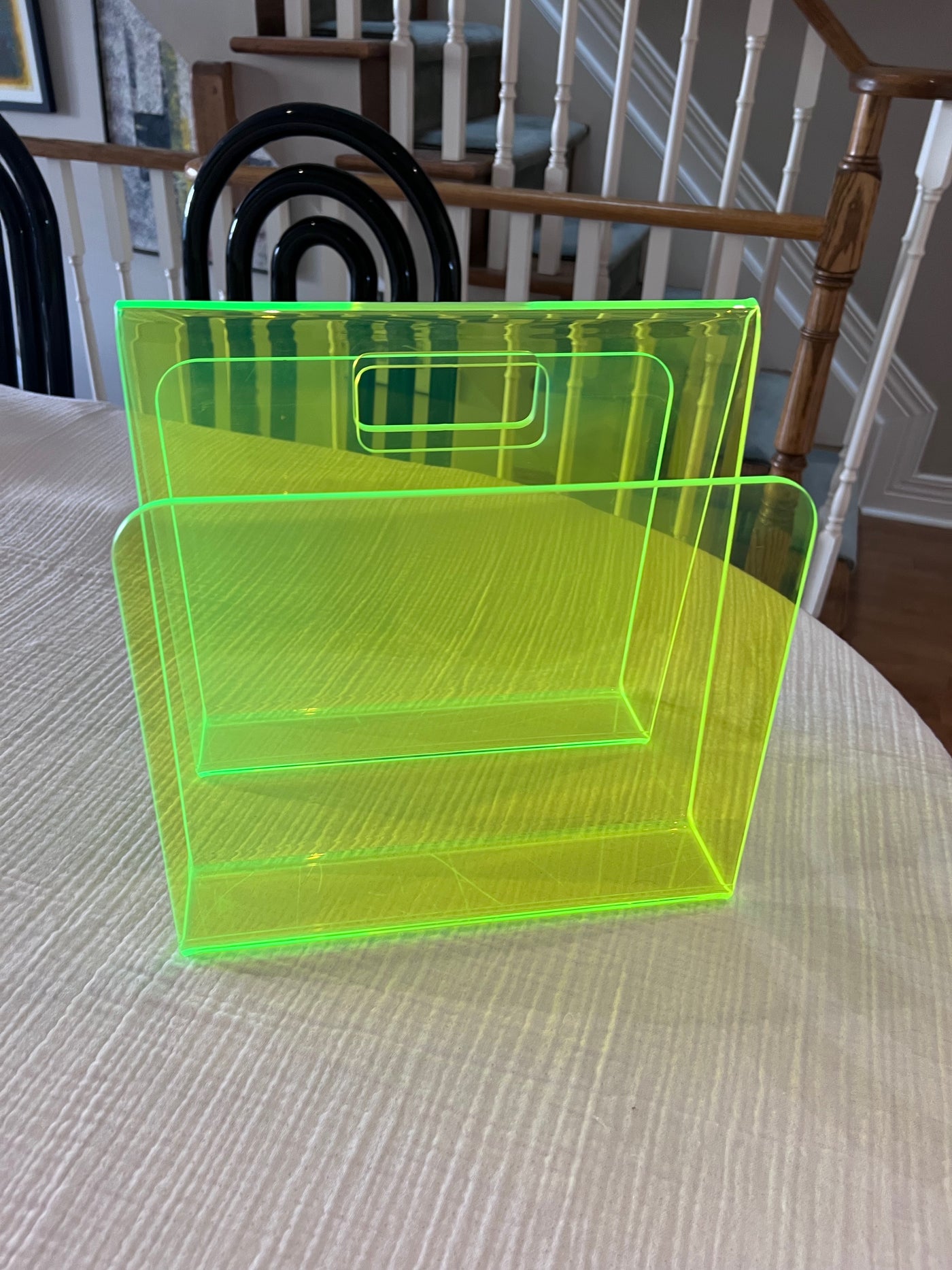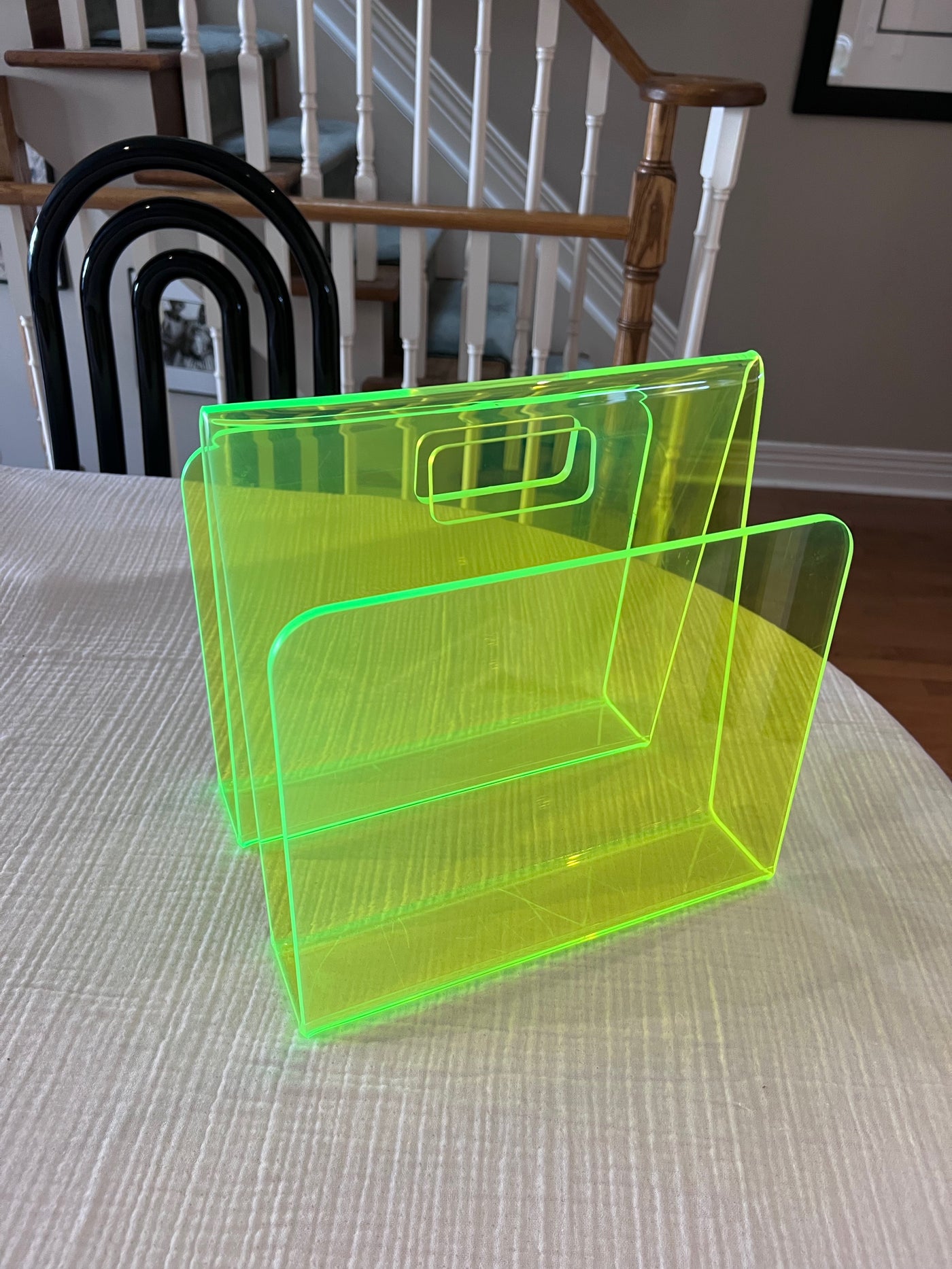 Green Neon Lucite Acrylic Modernist Magazine Rack, 1990's.