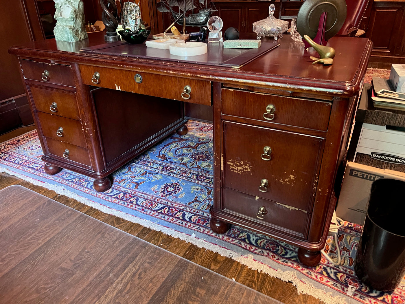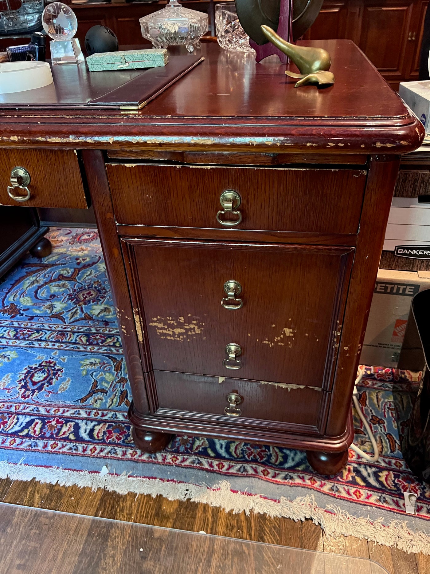 *there is noticeable wear throughout the desk as clearly shown in the pictures. sold as is*