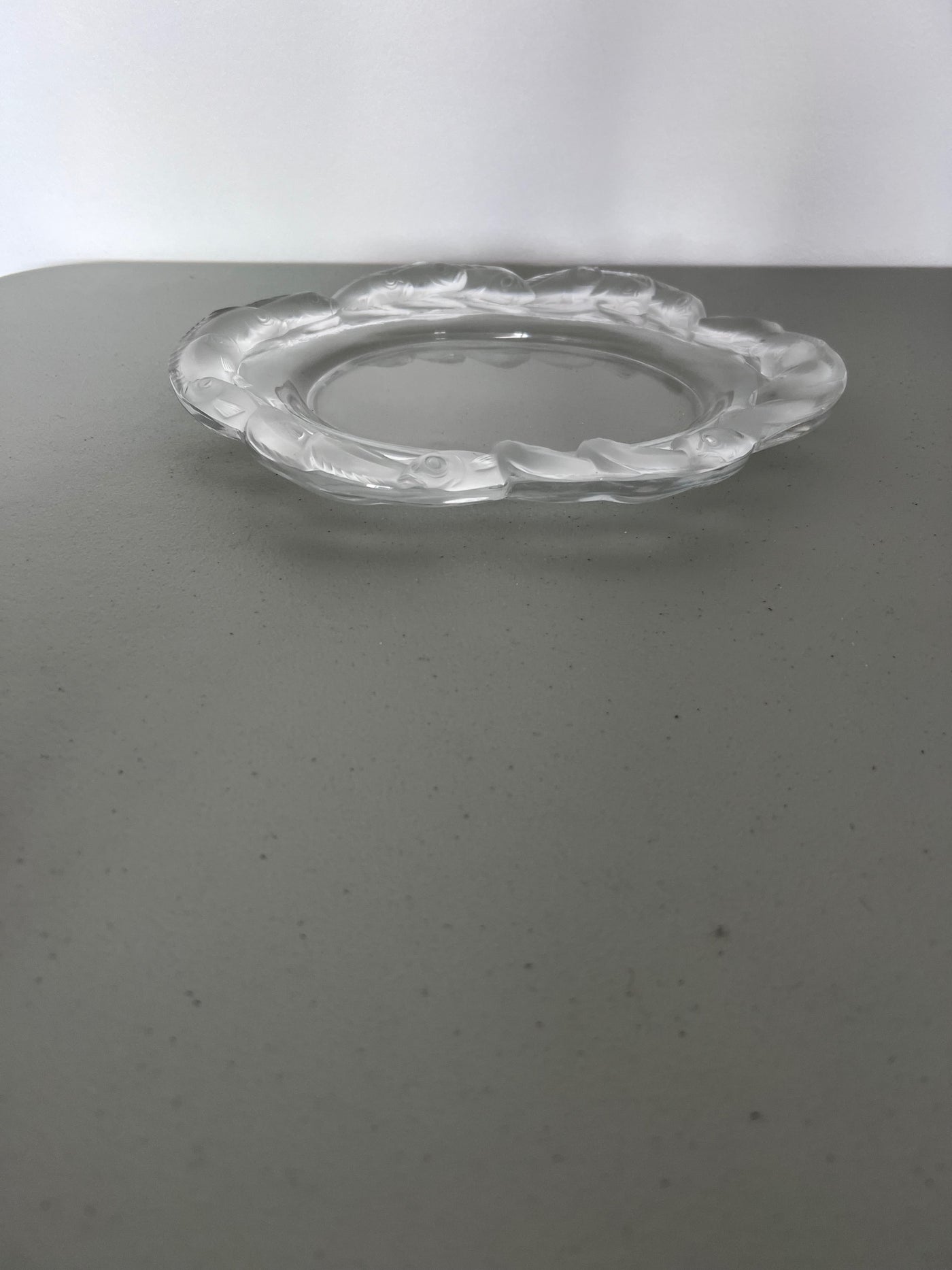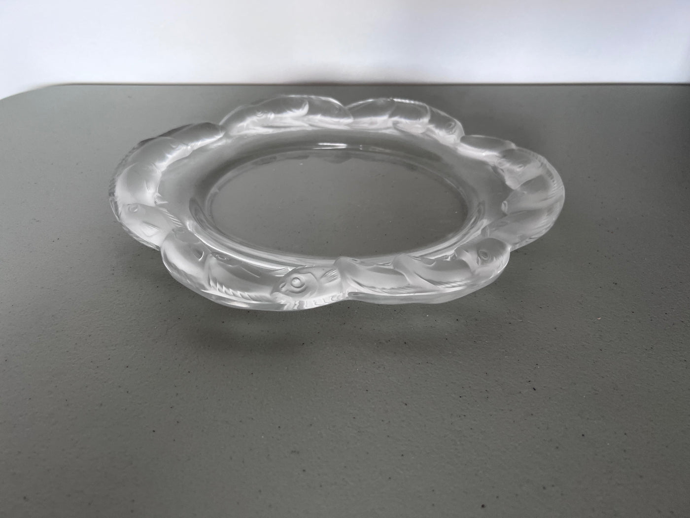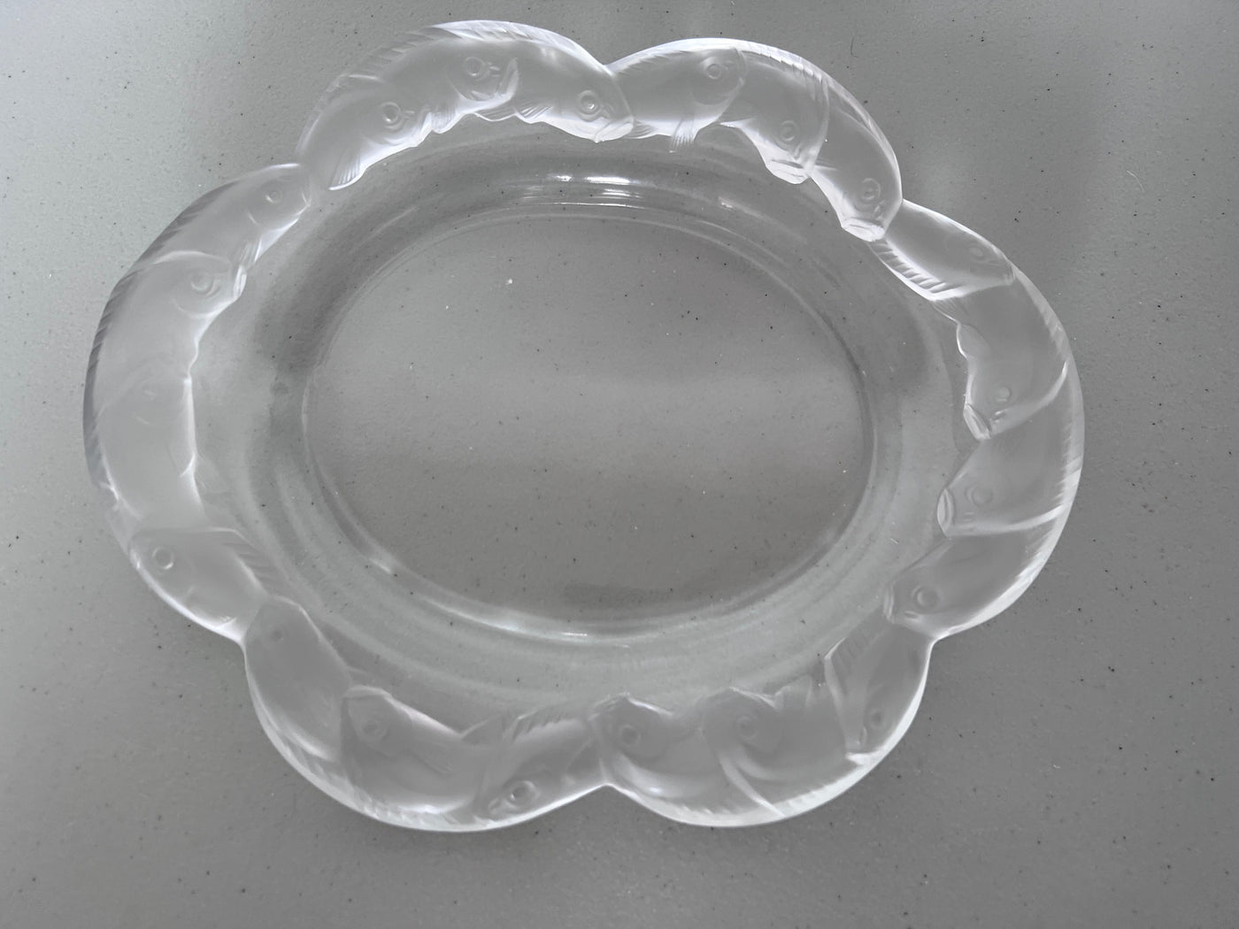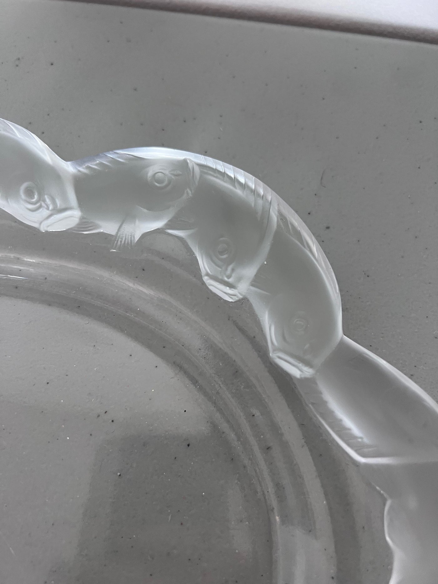 Lalique Piriac Crystal Platter with Frosted Koi Fish Border.