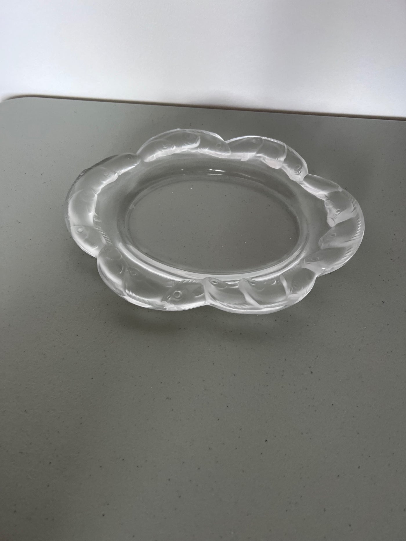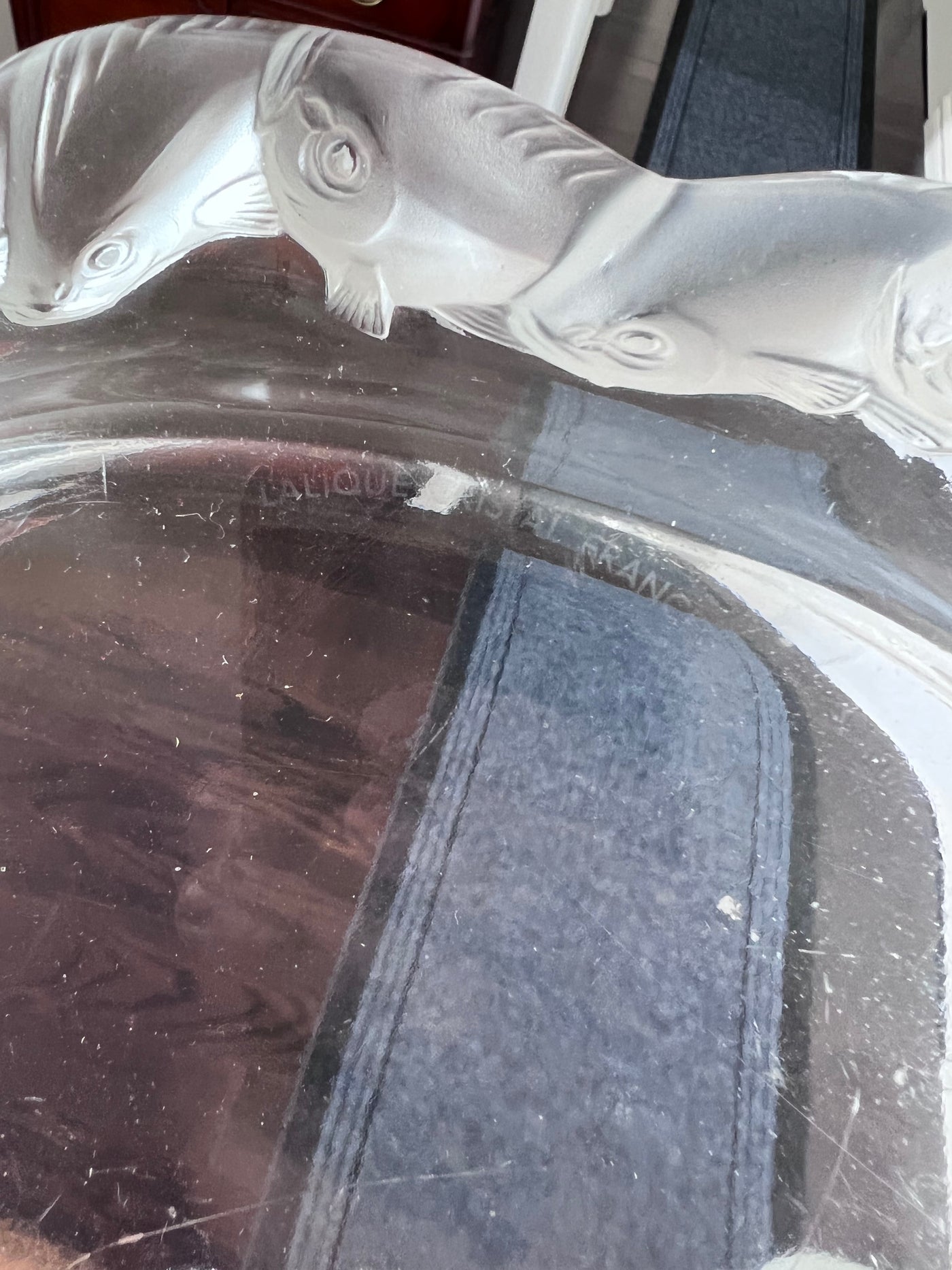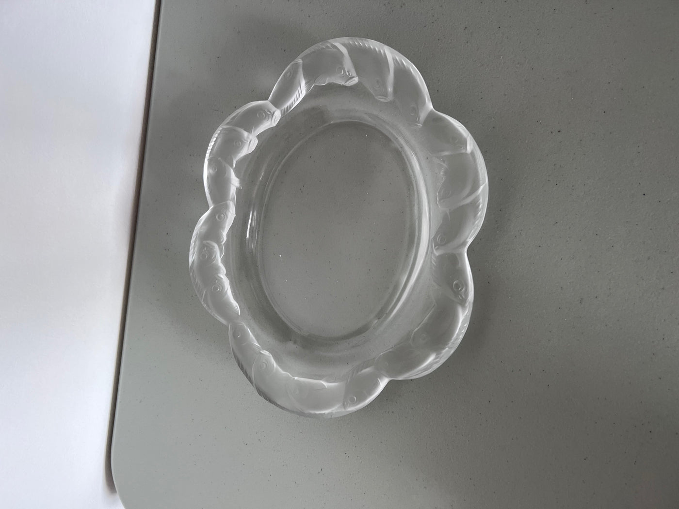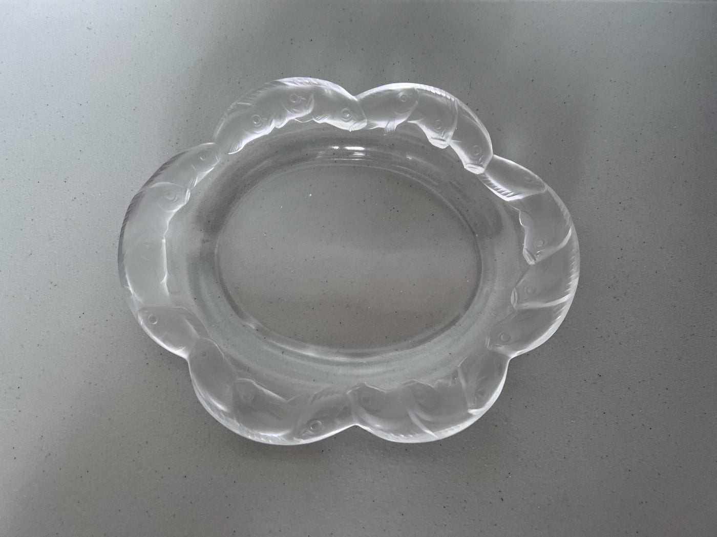 Lalique Piriac Crystal Platter with Frosted Koi Fish Border.