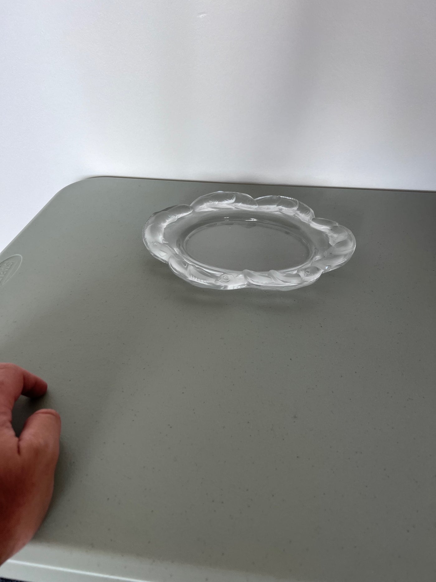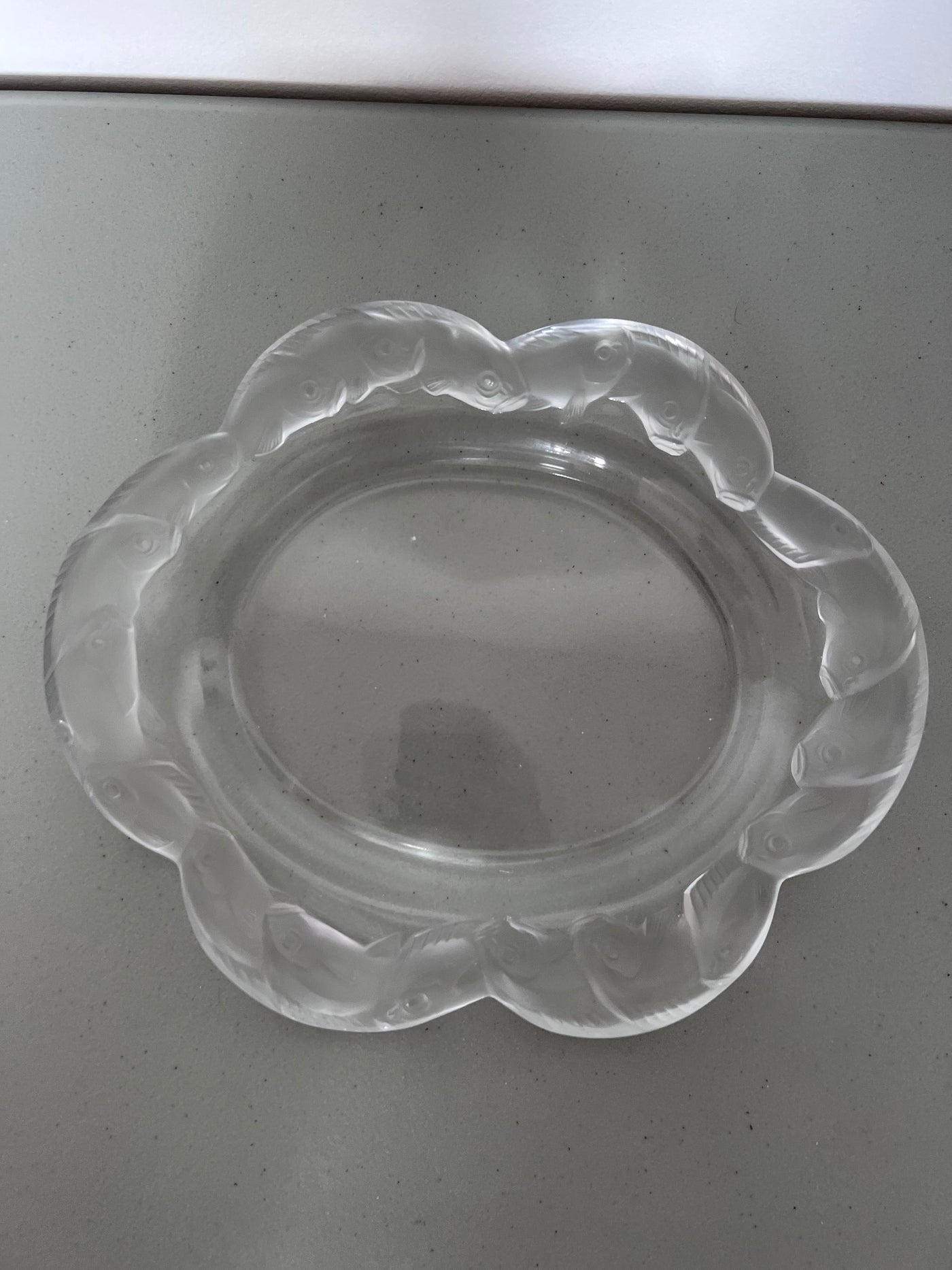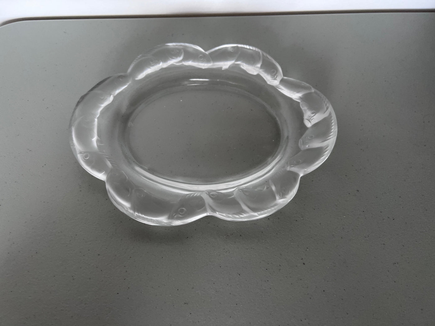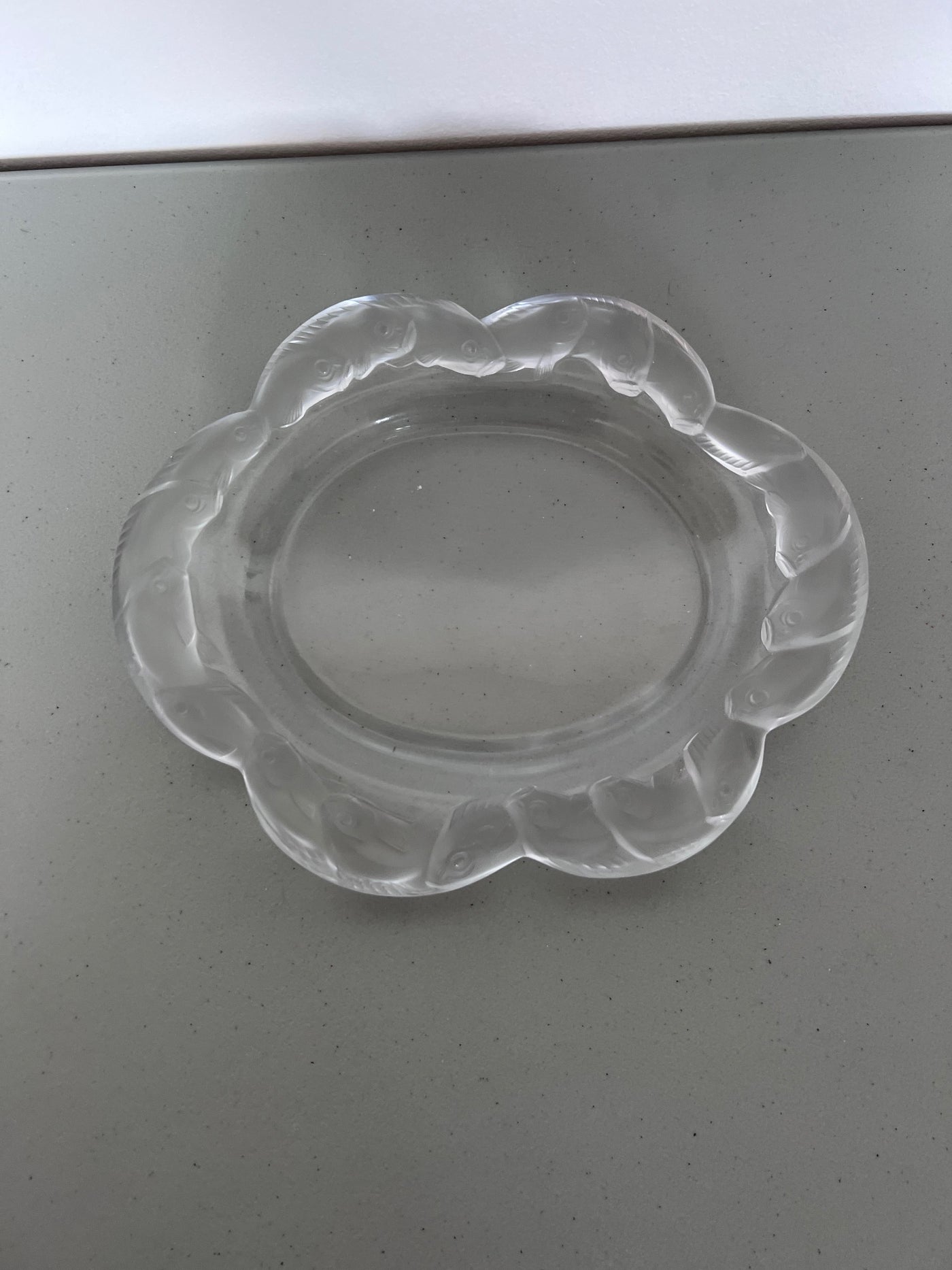 Lalique Piriac Crystal Platter with Frosted Koi Fish Border.