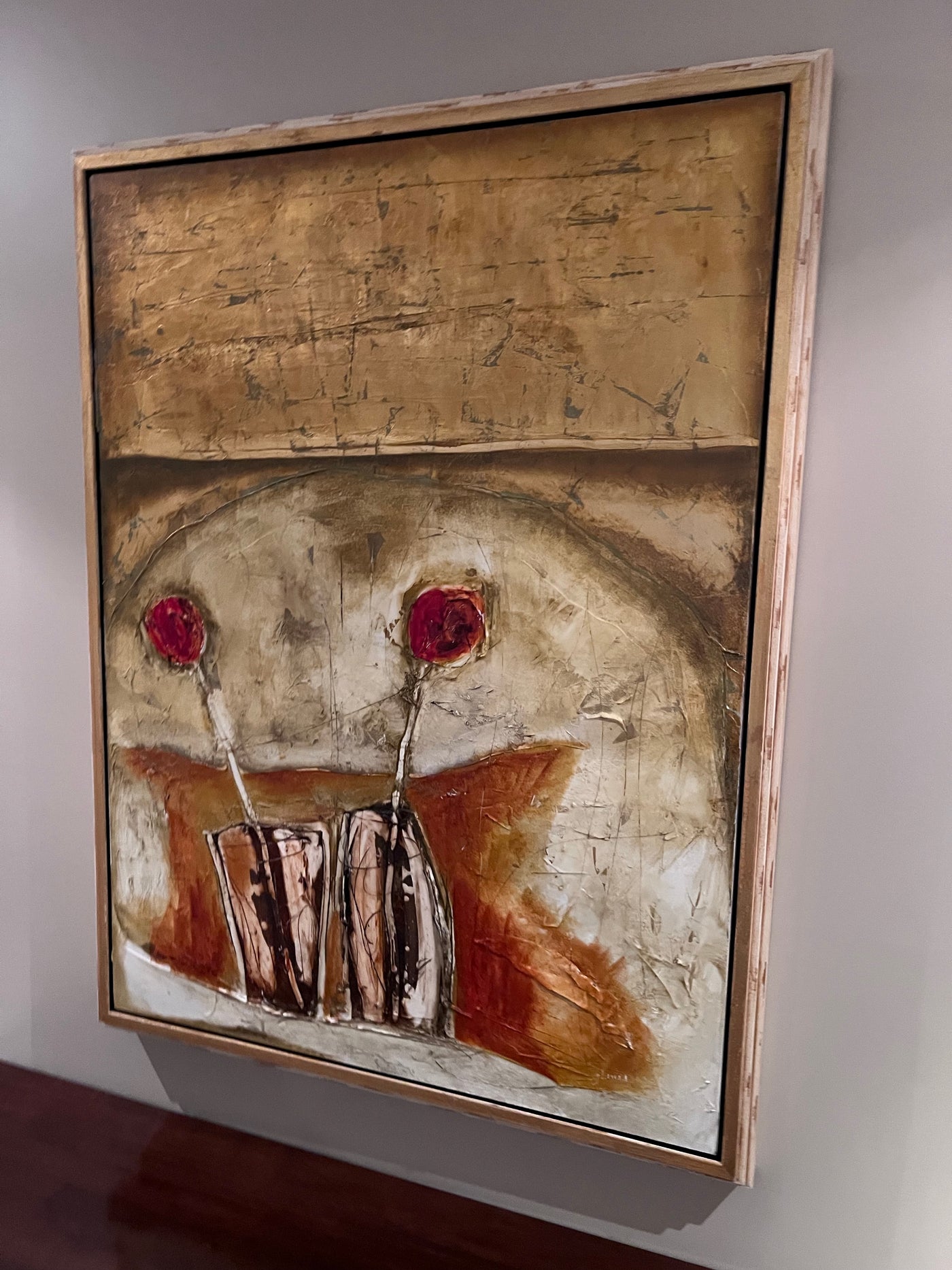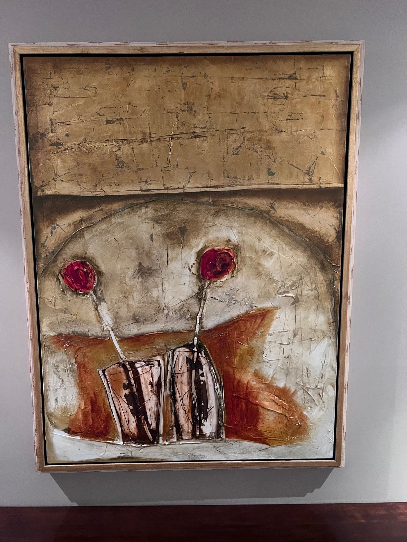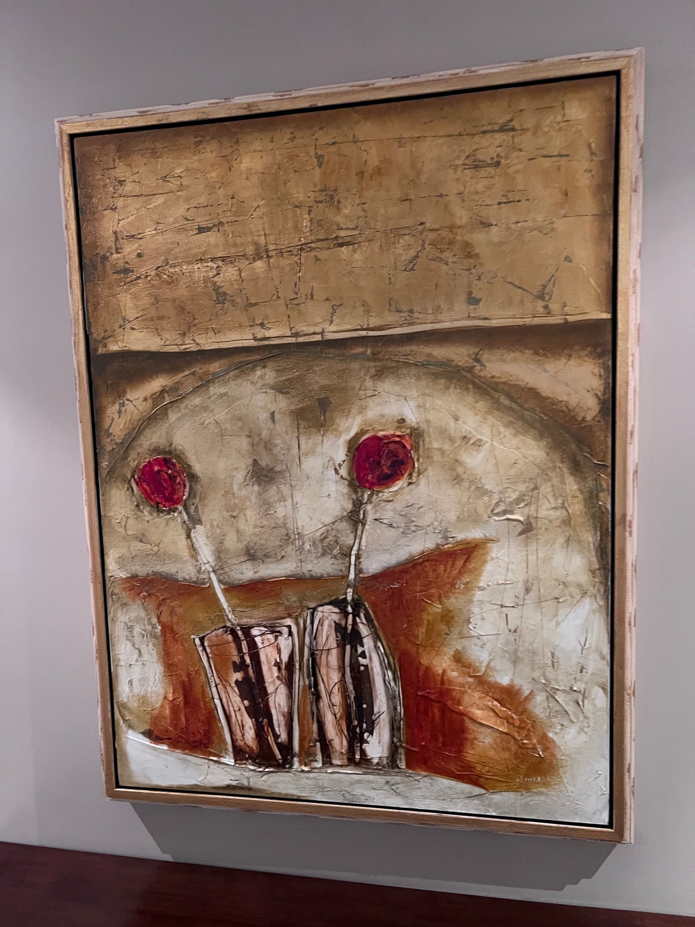 Emilija Pasagic was born in Yogoslavia where she received a formal education and training in landscape architecture. She and her family relocated to Canada in 1993 where this change in life inspired her to delve deep into her creative abilities. She began by silk painting, her subjects being figures and still life intensely detailed and often semi-abstract. She went on to experiment with a wide variety of different media and is currently using an ancient technique called the ‘encaustic’ method. Oil paint and bees wax is blended onto canvas, paper or board then layers are scratched to add character and depth to the image. The crimson and ochre Mediterranean shades she uses offset the delicacy of the images making a traditional technique have a contemporary feel.