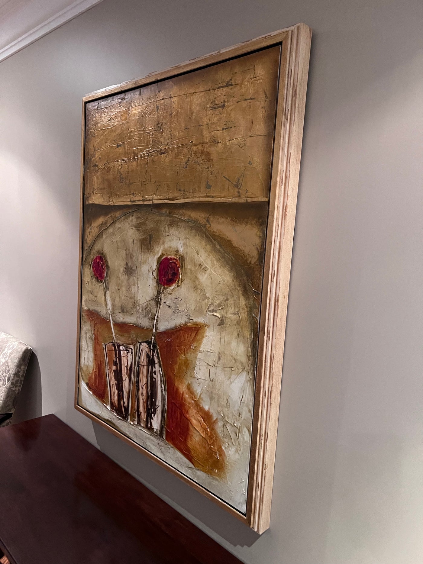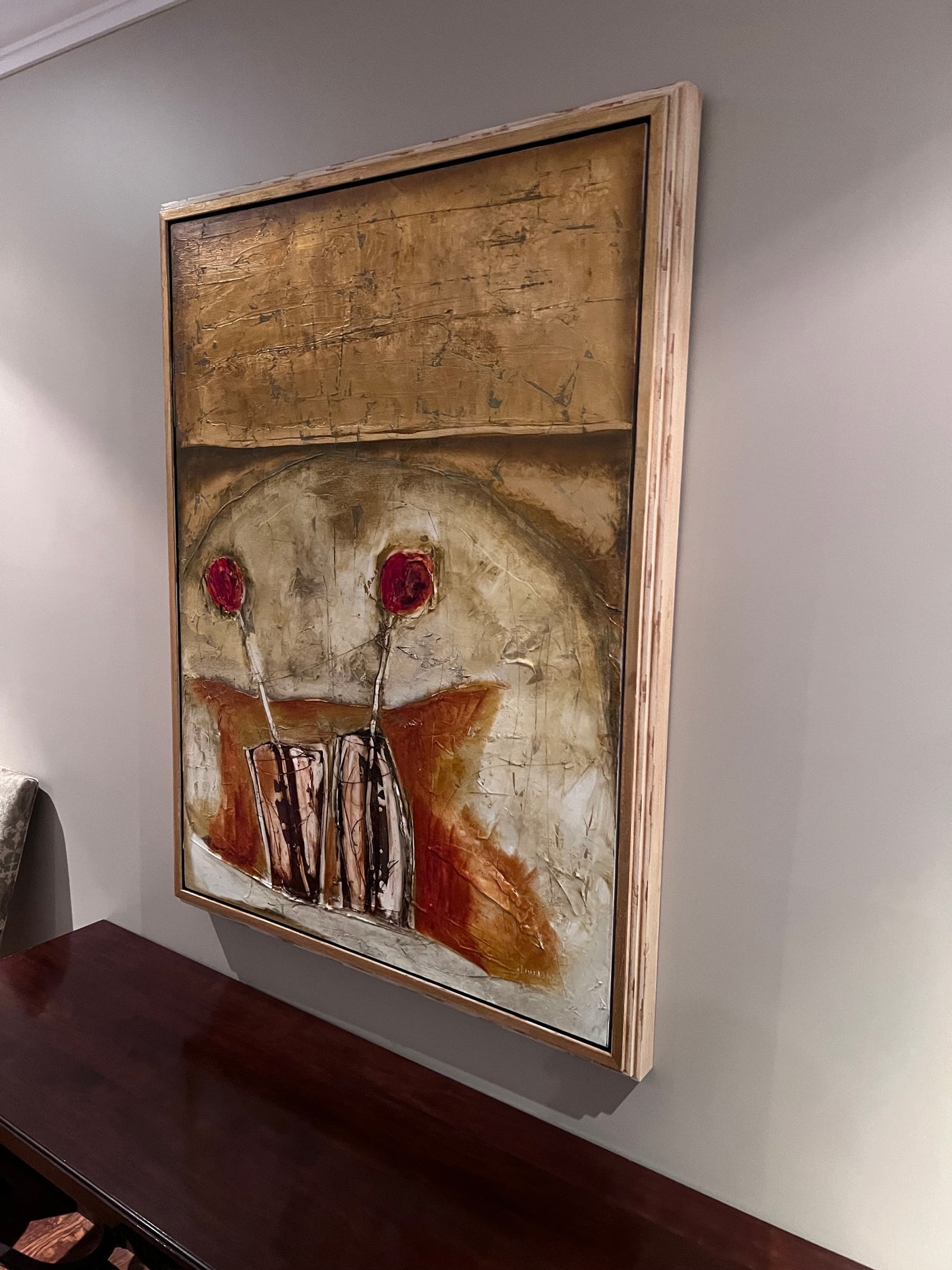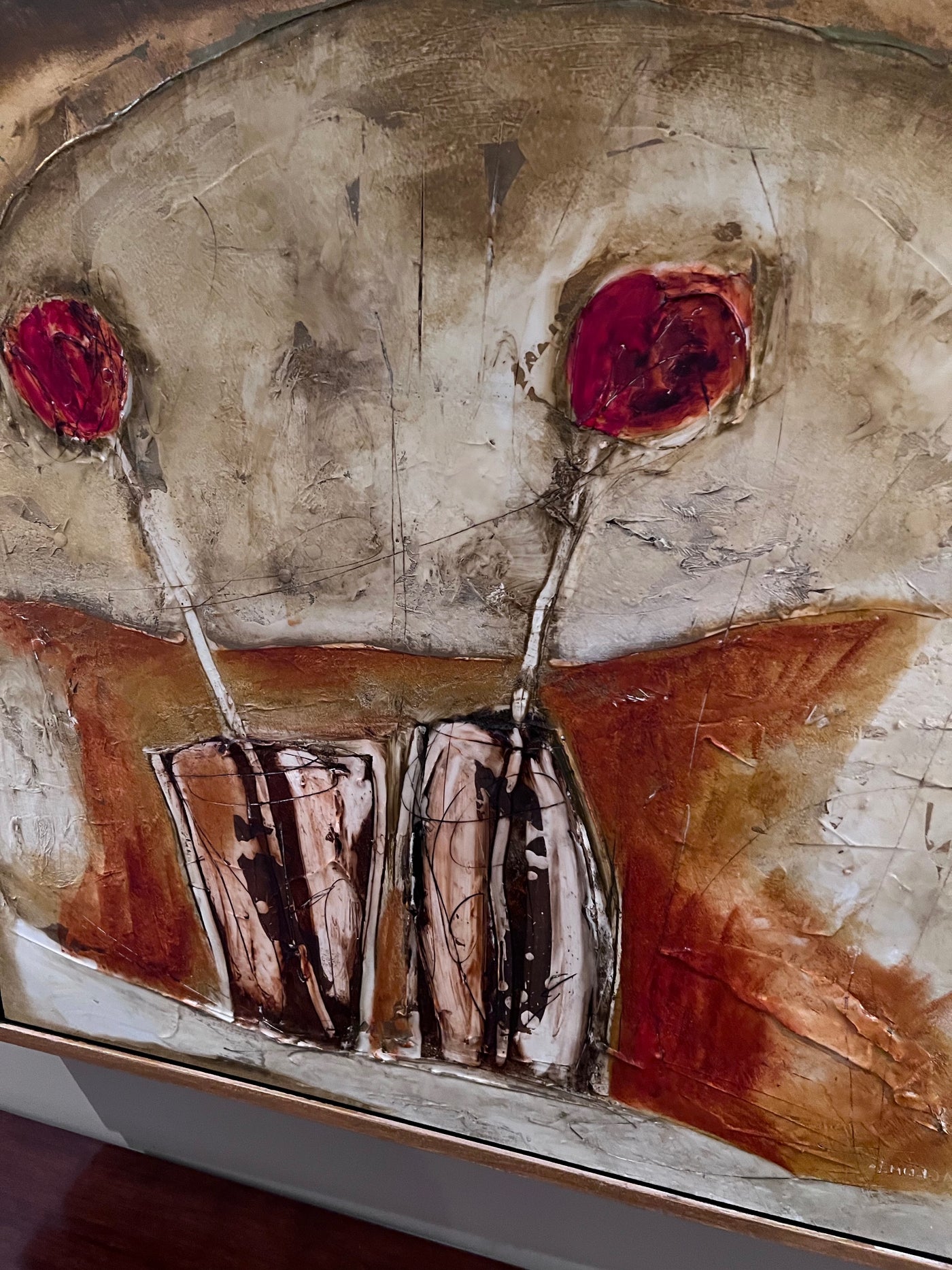 Emilija Pasagic was born in Yogoslavia where she received a formal education and training in landscape architecture. She and her family relocated to Canada in 1993 where this change in life inspired her to delve deep into her creative abilities. She began by silk painting, her subjects being figures and still life intensely detailed and often semi-abstract. She went on to experiment with a wide variety of different media and is currently using an ancient technique called the ‘encaustic’ method. Oil paint and bees wax is blended onto canvas, paper or board then layers are scratched to add character and depth to the image. The crimson and ochre Mediterranean shades she uses offset the delicacy of the images making a traditional technique have a contemporary feel.
