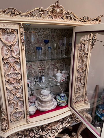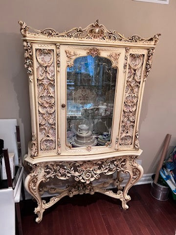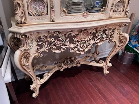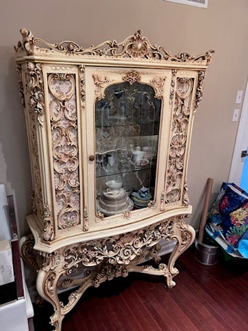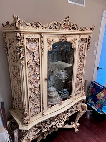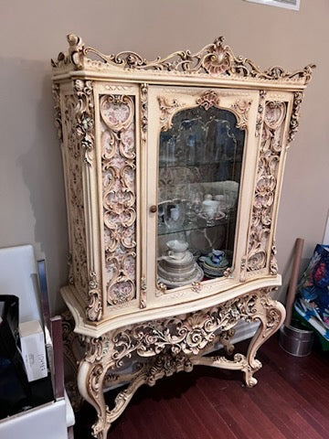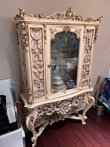 Antique French Regency Large White Carved Cabinet.