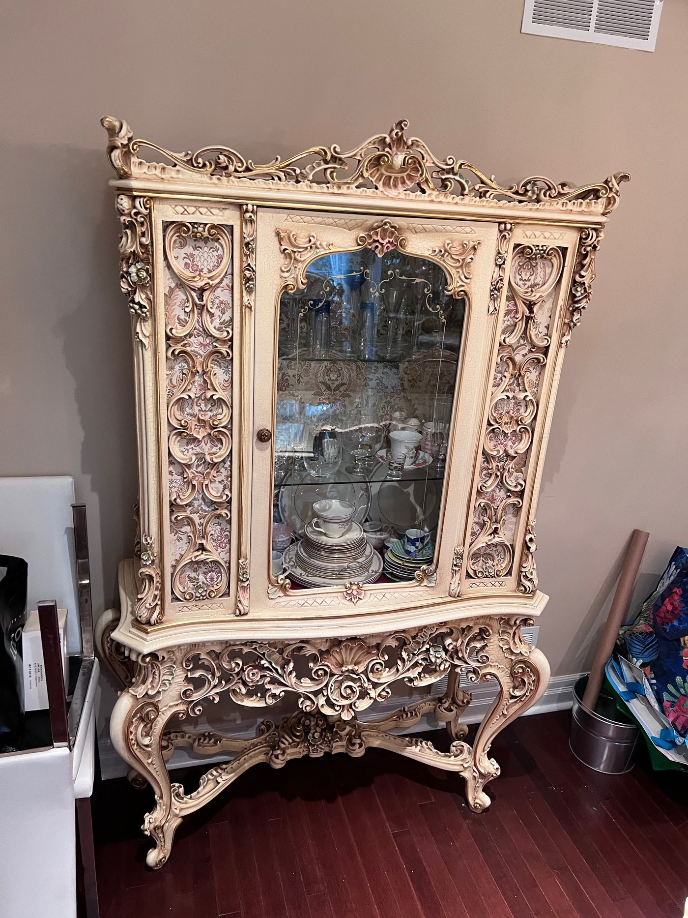 Antique French Regency Large White Carved Cabinet
