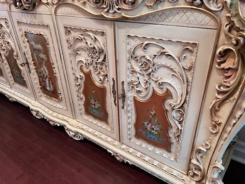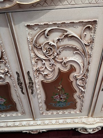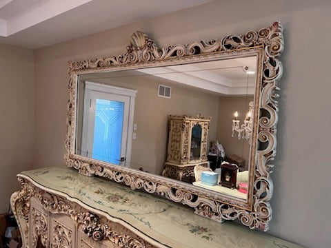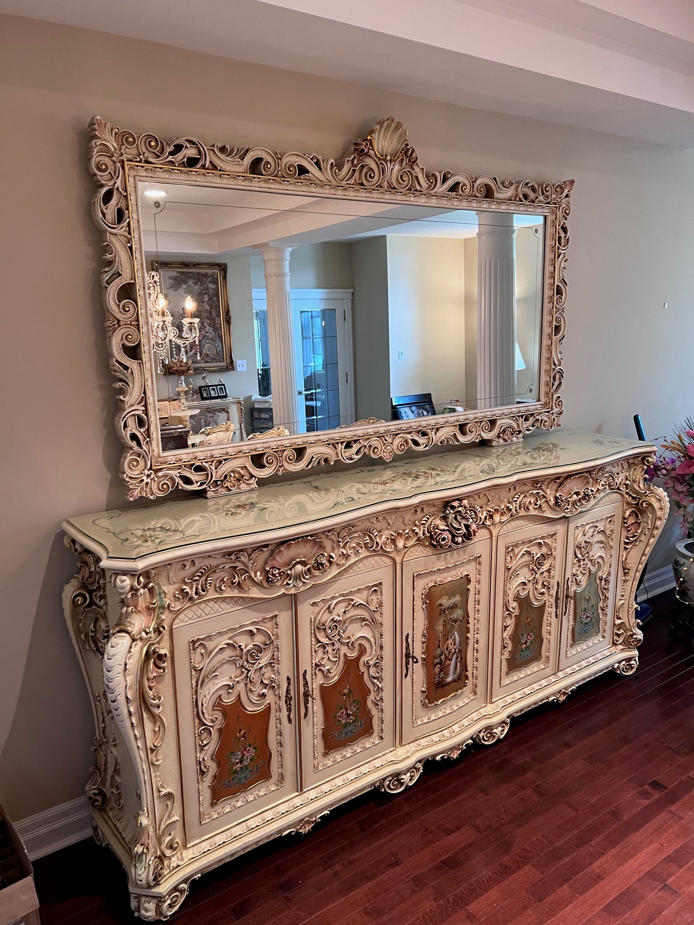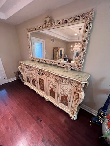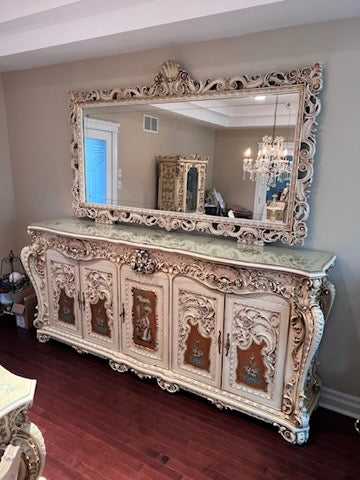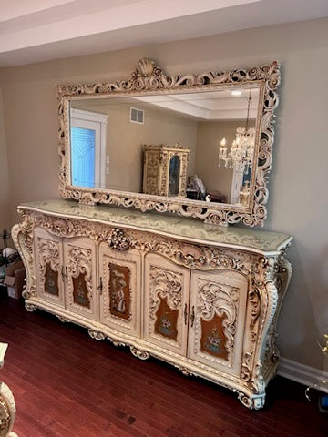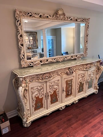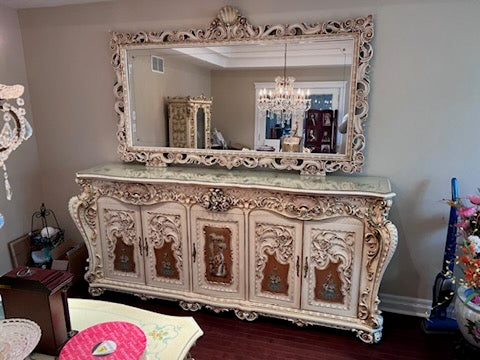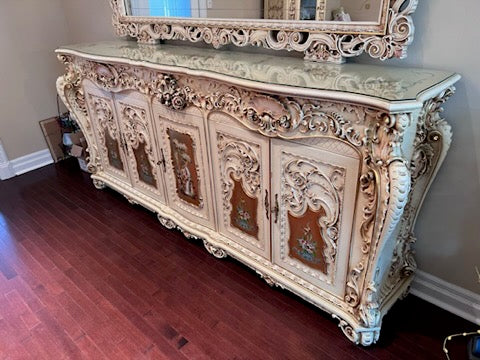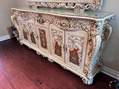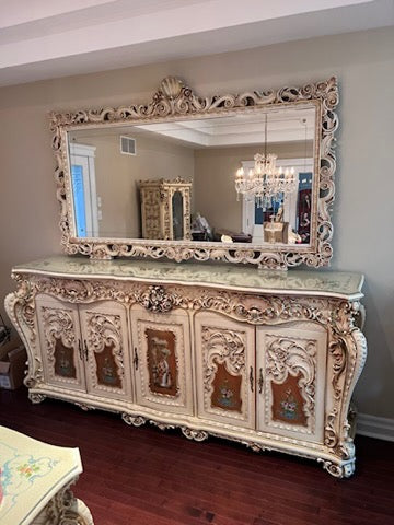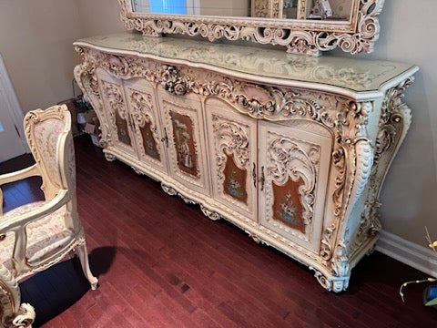 Antique French Regency White Carved Large Sideboard w/Mirror