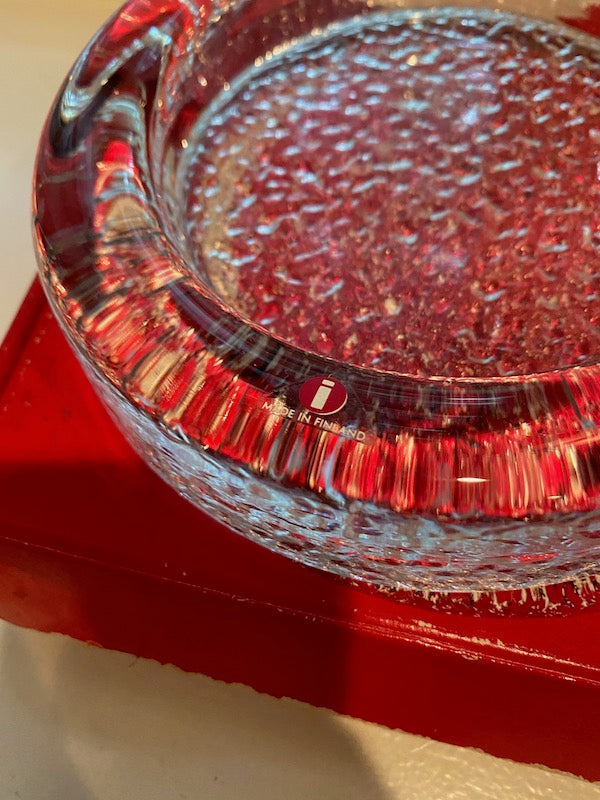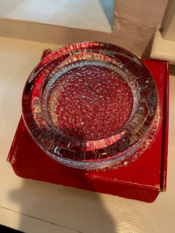 Vintage Iittala Glass Visa/Ritte Ashtray Round Textured Bottom (ORIGINAL BOX). Made in Finland.