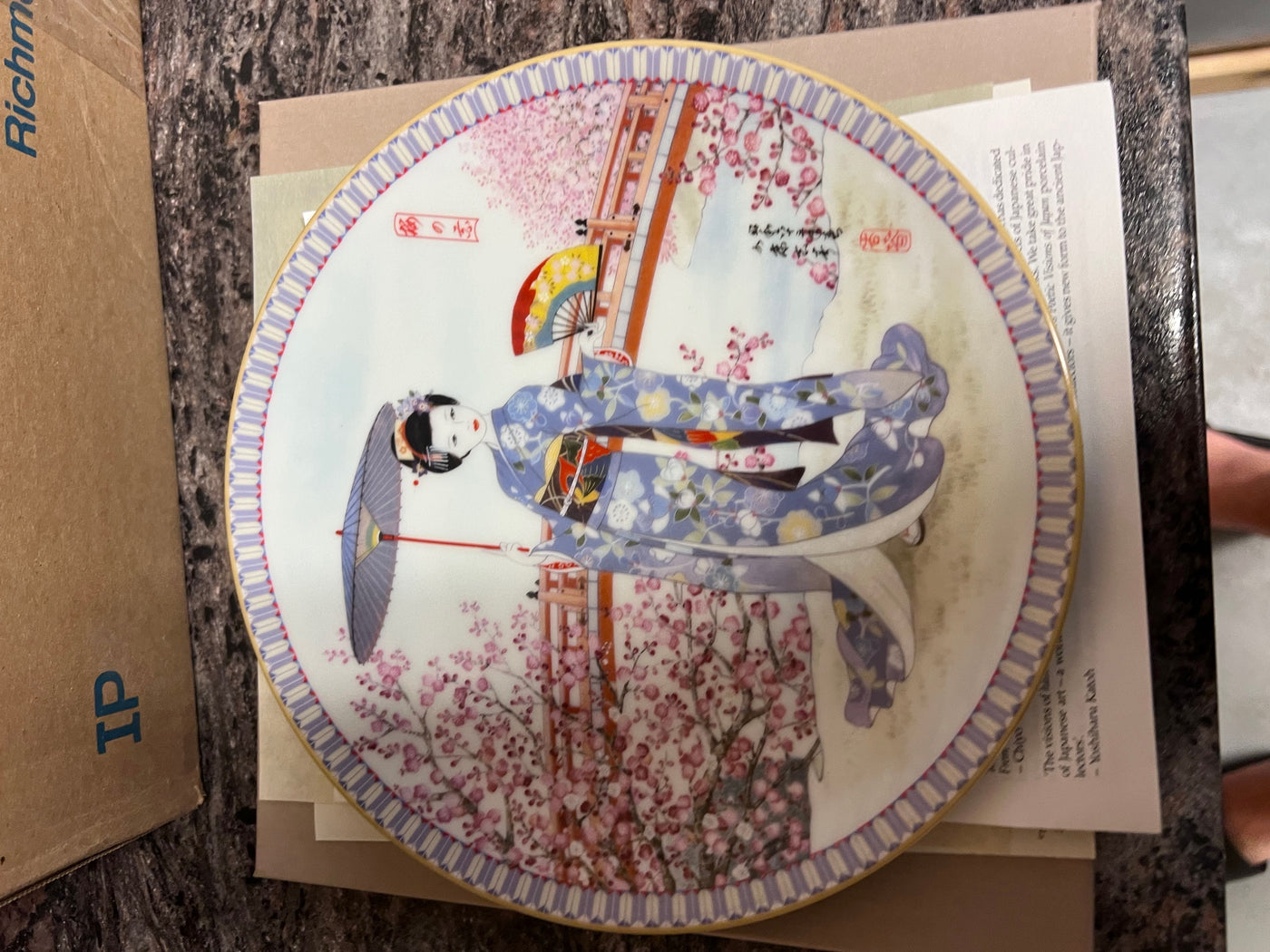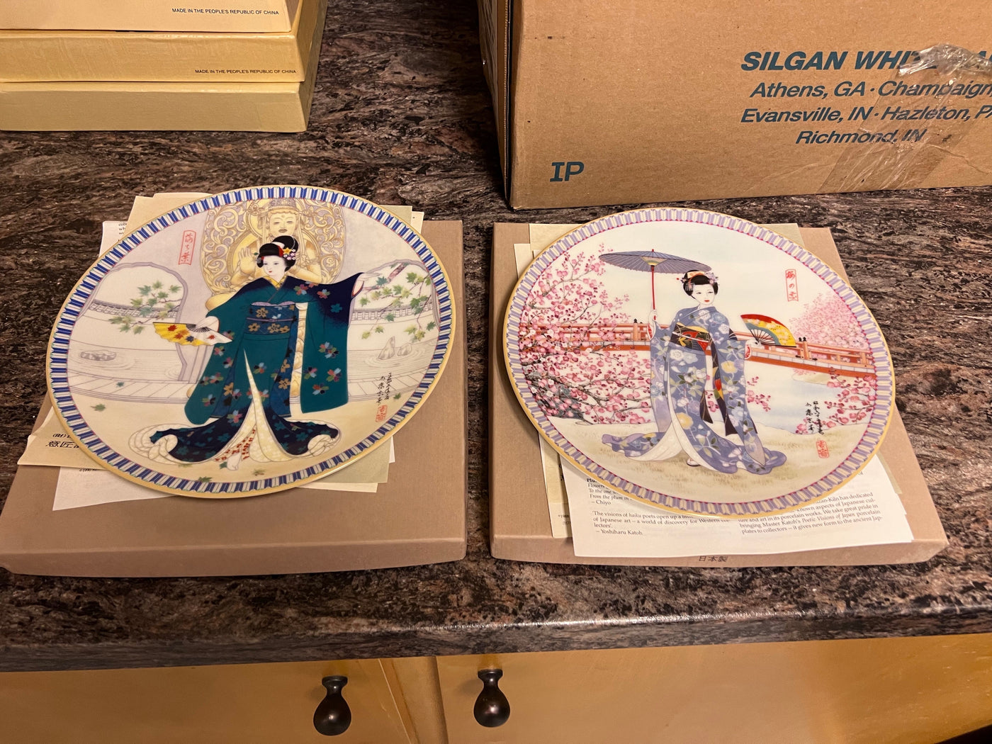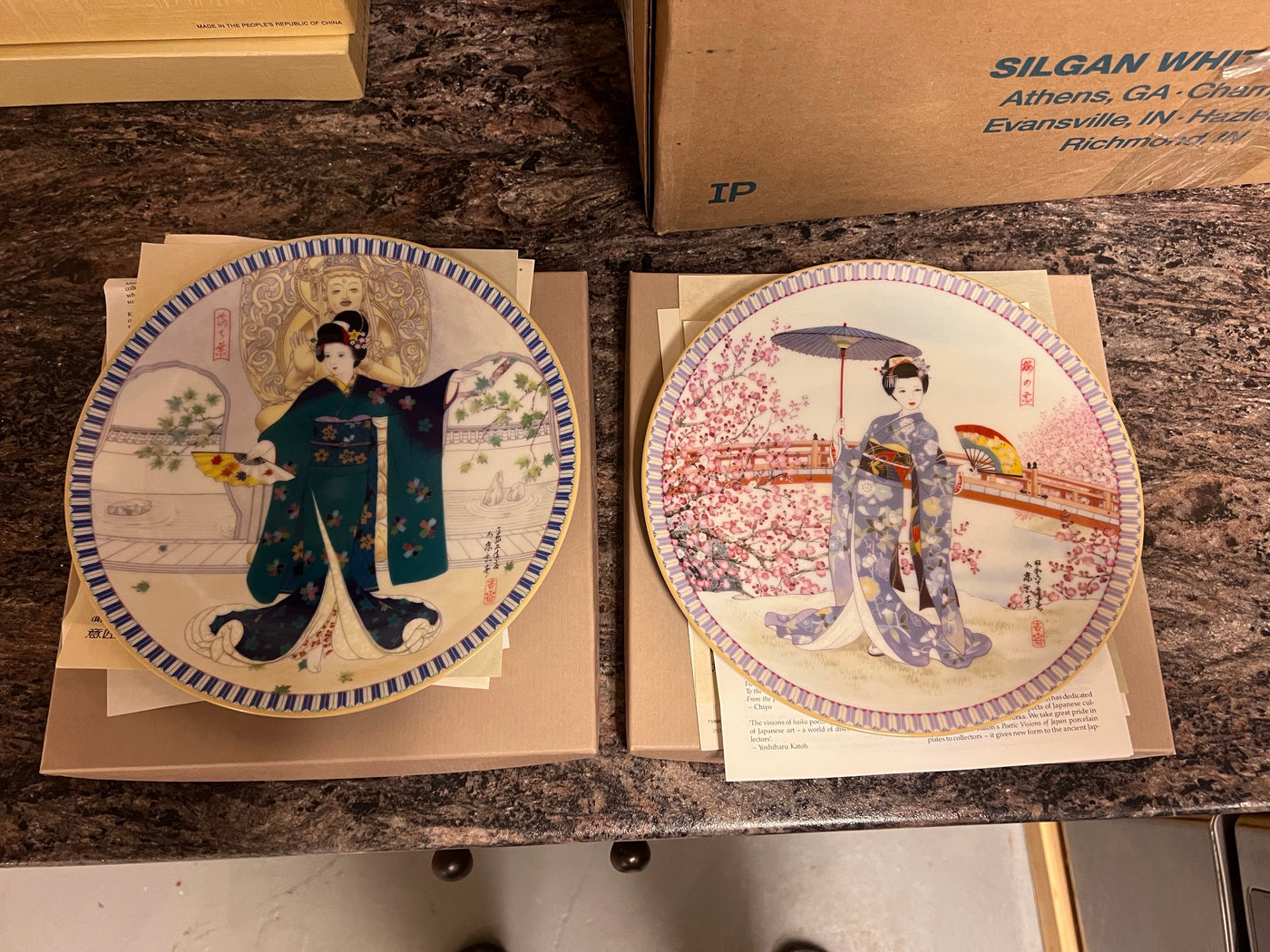 2 Japanese Fine Porcelain Collector Plates by Master Artist Yoshi-Haru Katoh. In original box with paperwork.