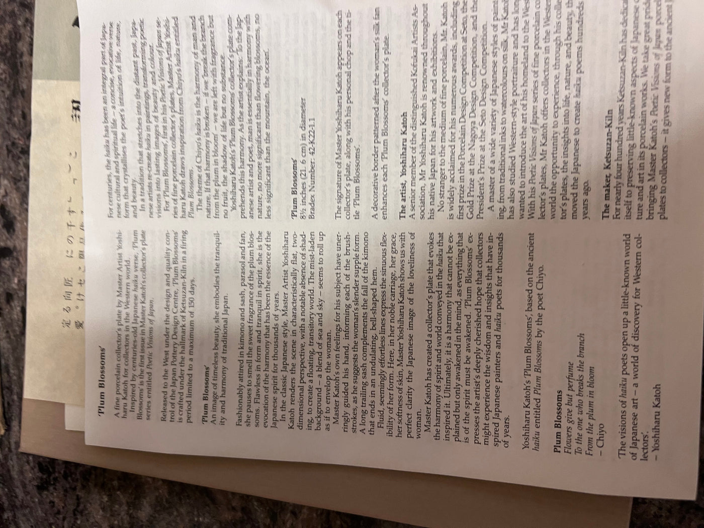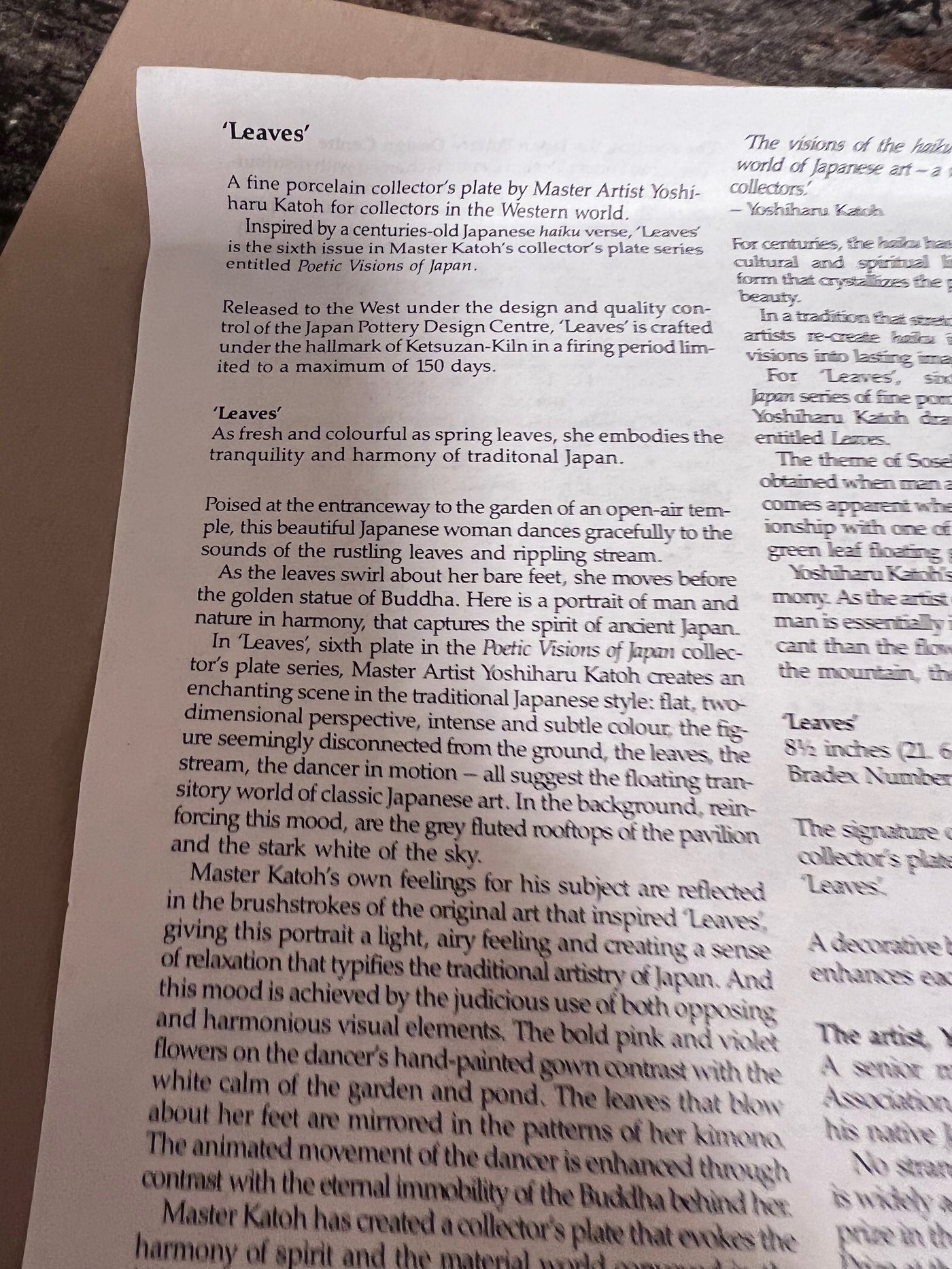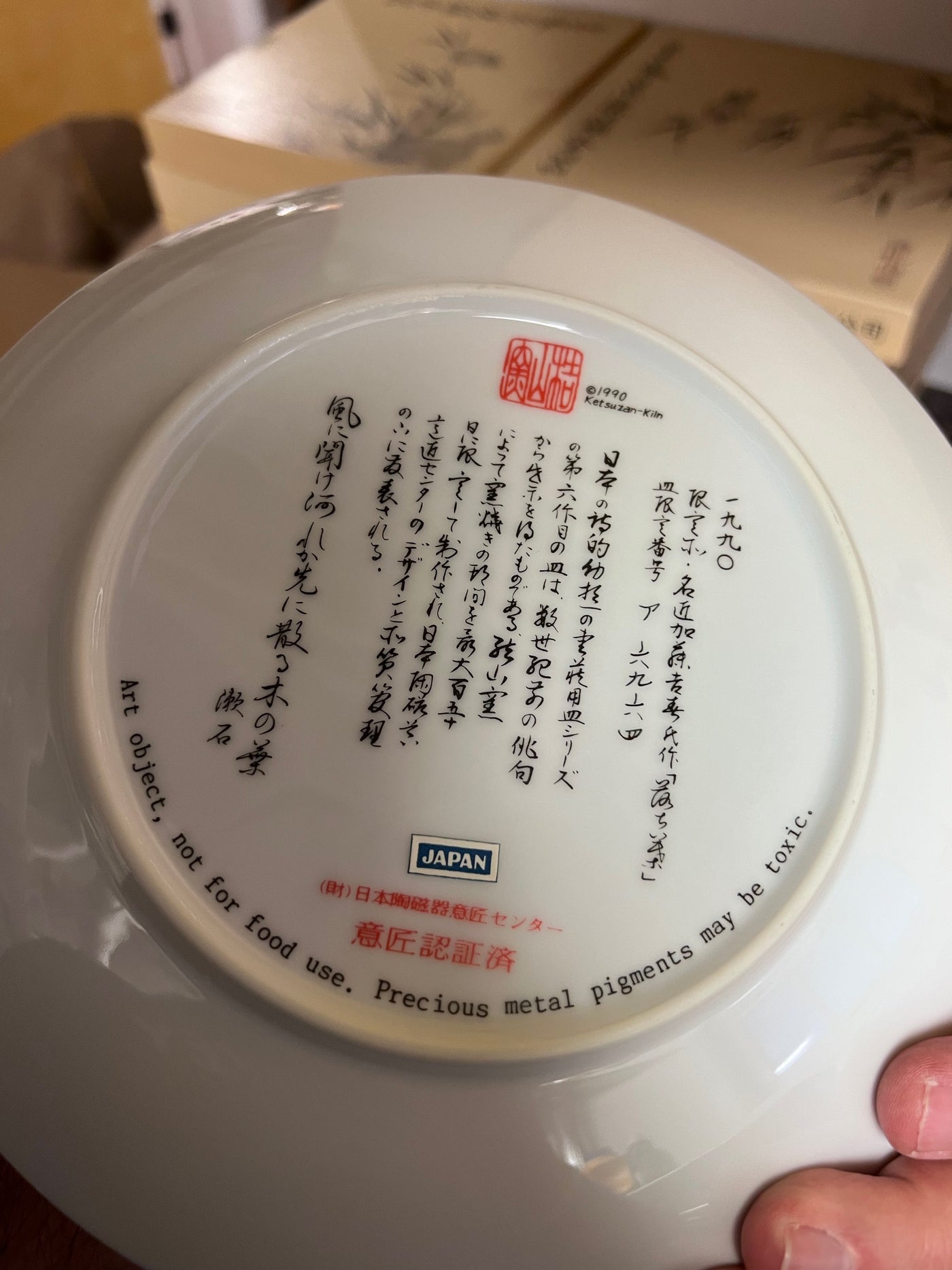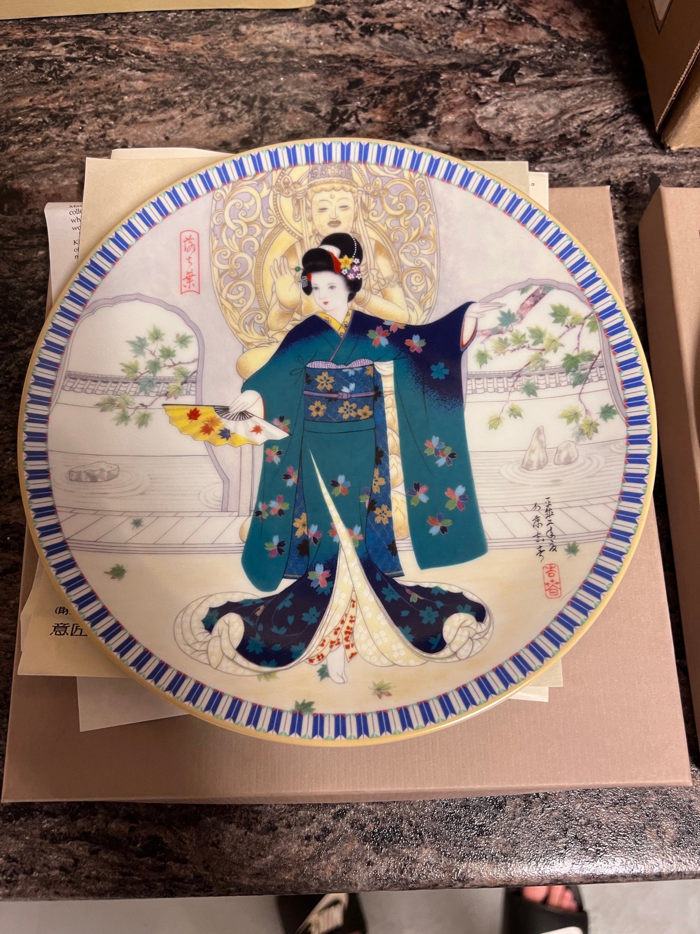 2 Japanese Fine Porcelain Collector Plates by Master Artist Yoshi-Haru Katoh. In original box with paperwork.
