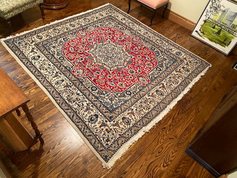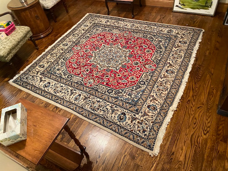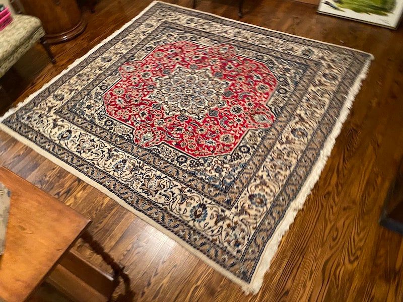 Square 100% Wool Persian Rug- 6.5ft x 6.2ft.