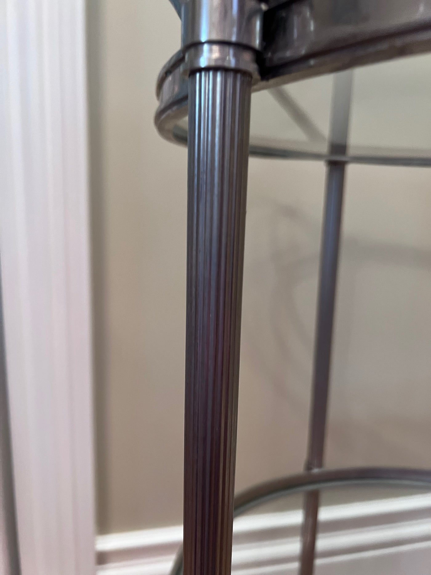 2 Tier Glass Bar Cart on Casters from ELTE. Brushed silver frame with 2 glass shelves. In excellent condition!