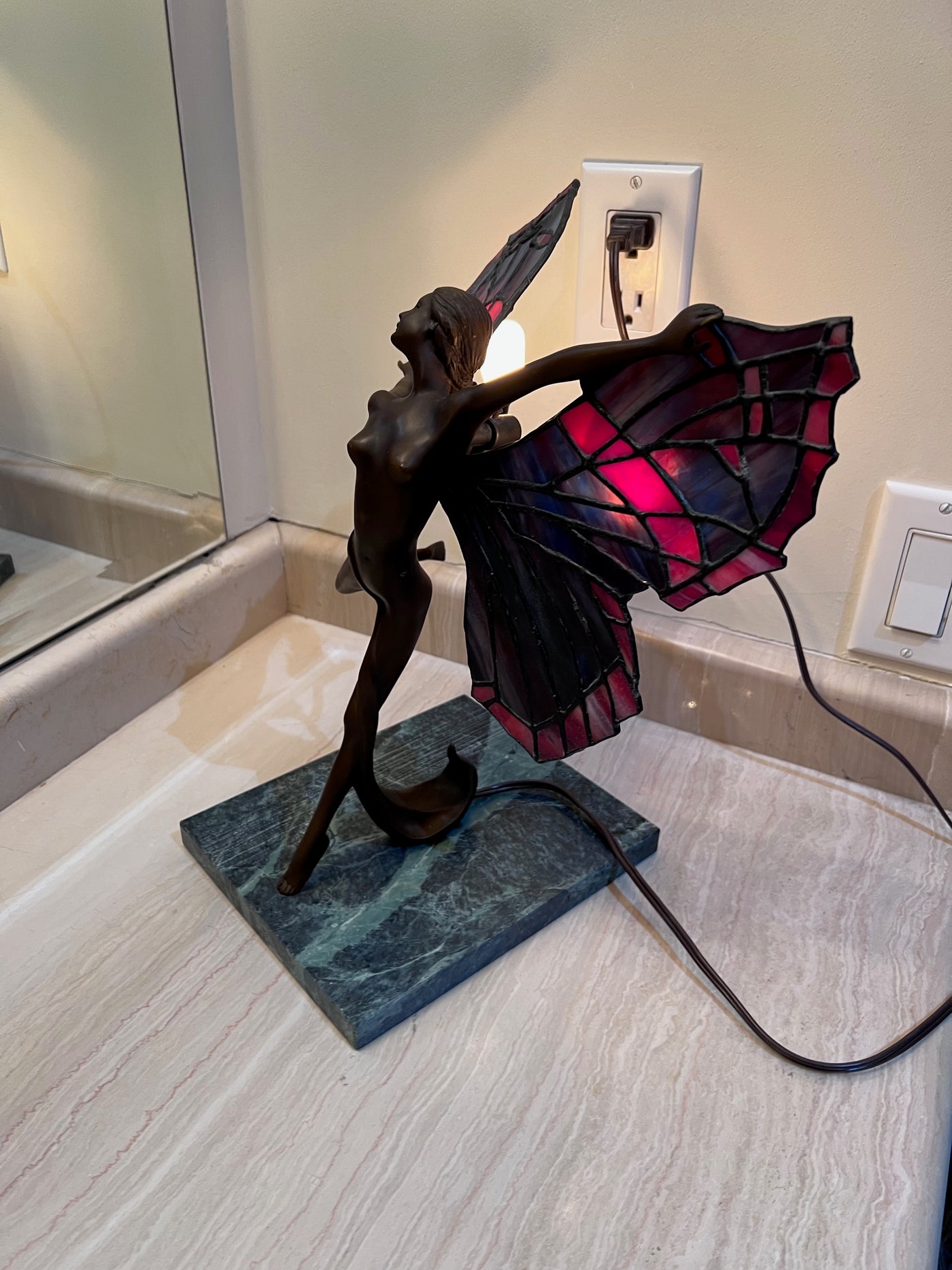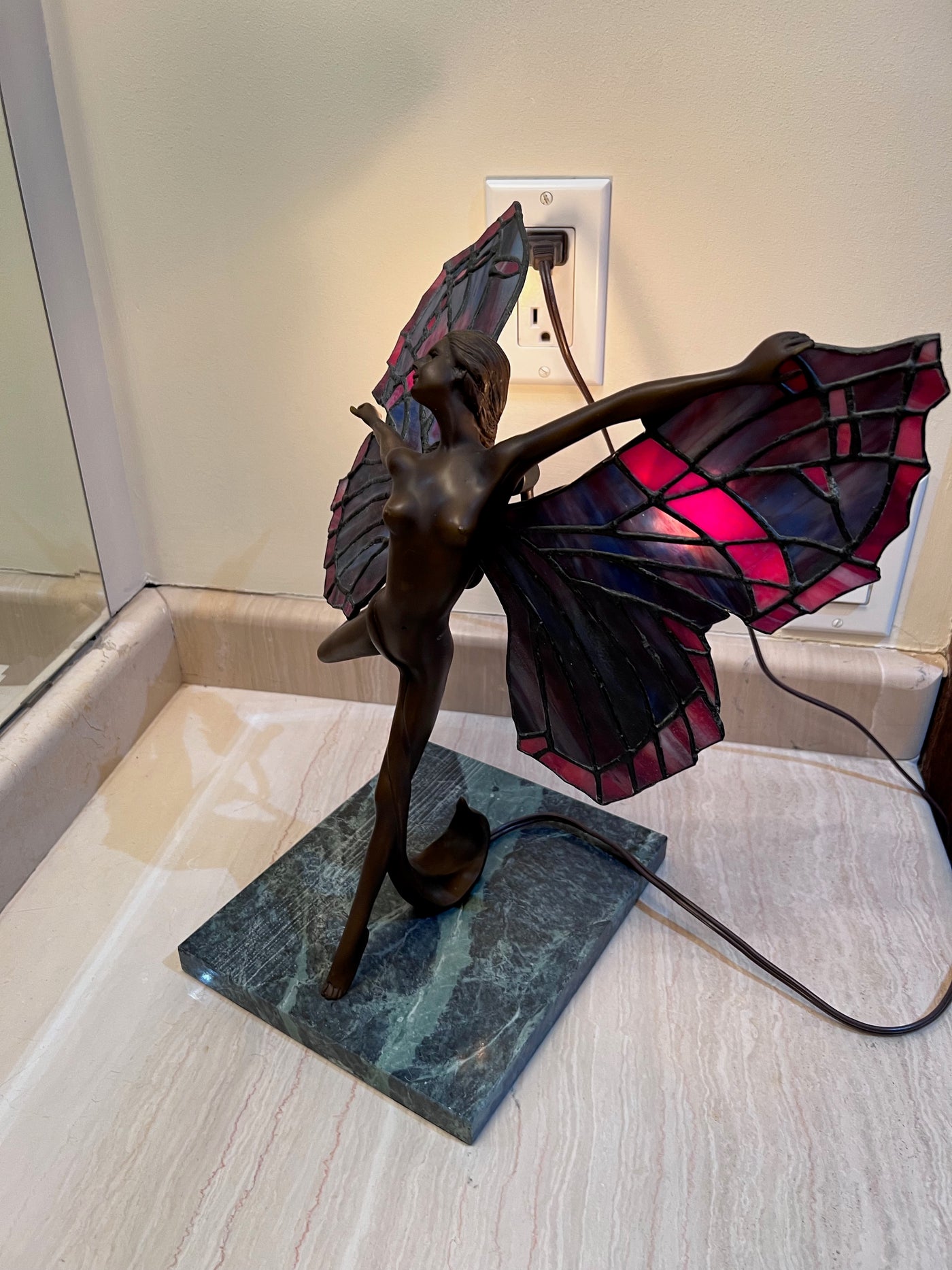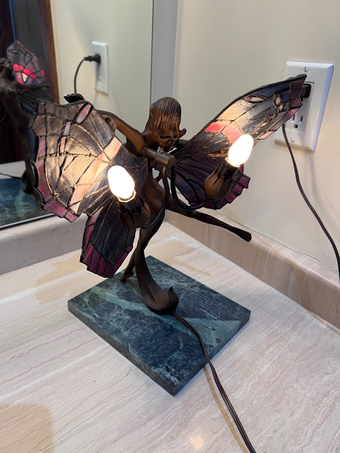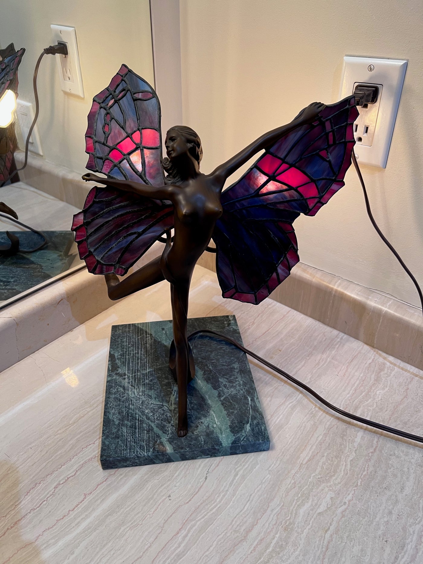 Tiffany Style Butterfly Dancer Lamp on Marble Base.
