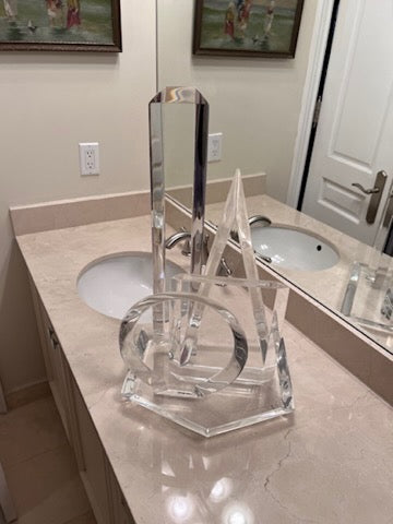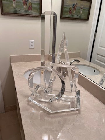 Lucite GEOMETRIC SKYLINE Sculpture by Hivo Van Teal (Signed).