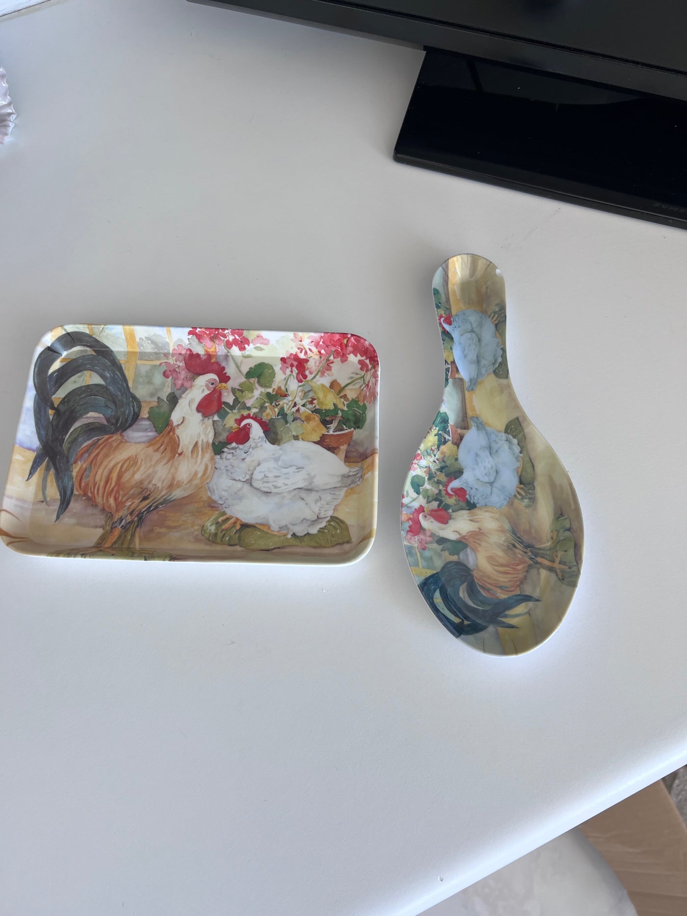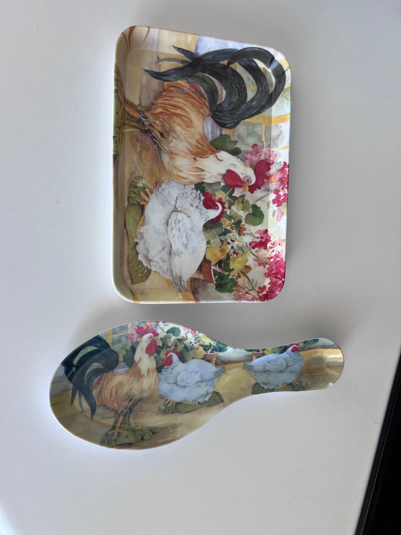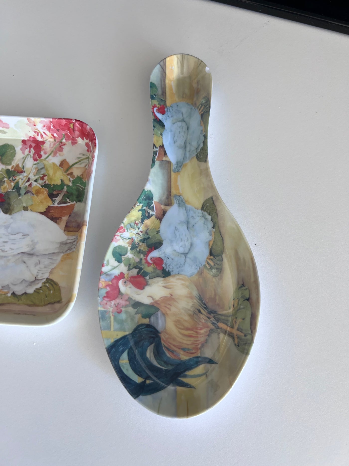 Keller-Charles Philadelphia Rooster & Hen Melamine Small Dish + Spoon Rest