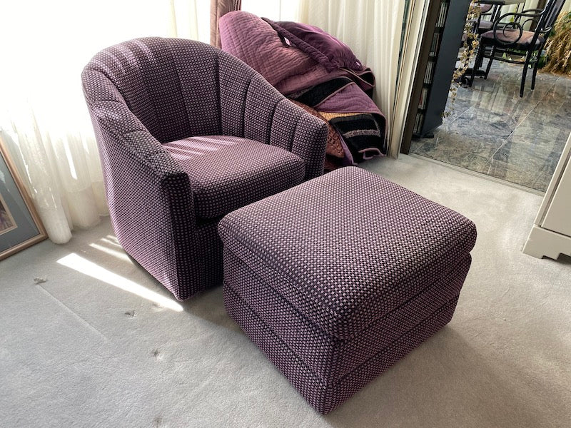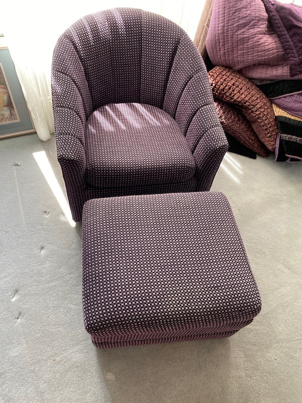 Purple Upholstered Tub Chair + Ottoman.