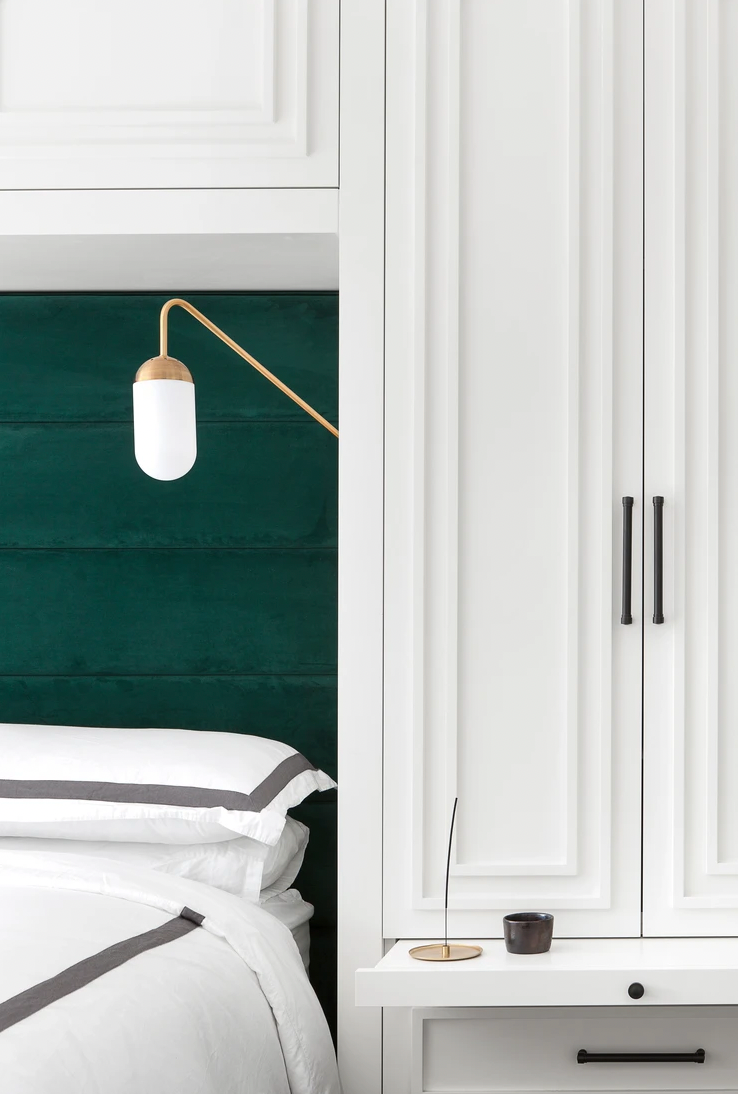 Custom Green Velvet King Bed Frame with Built-In Unit