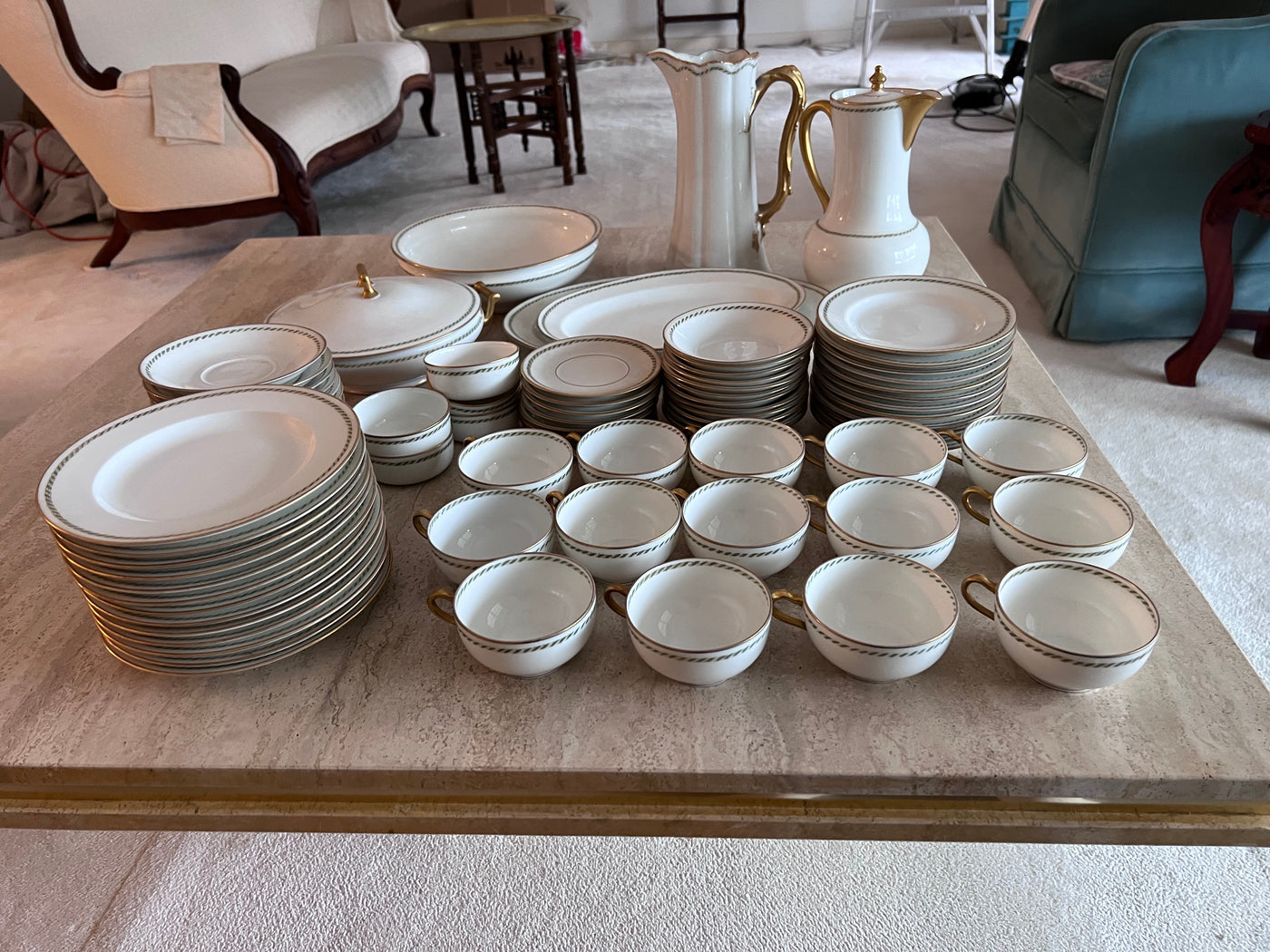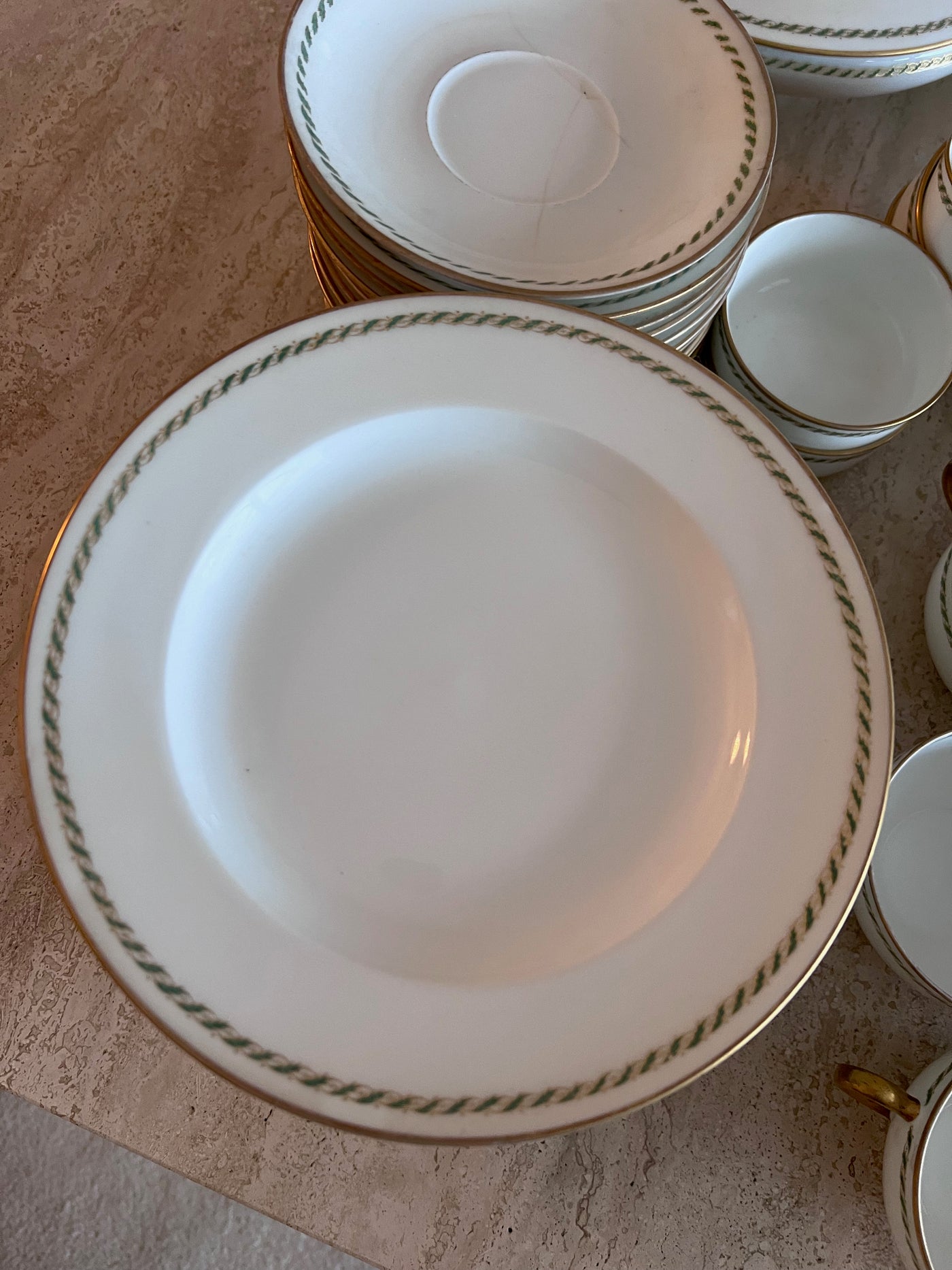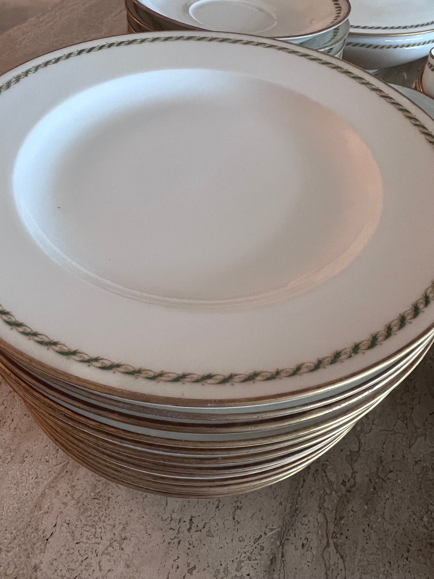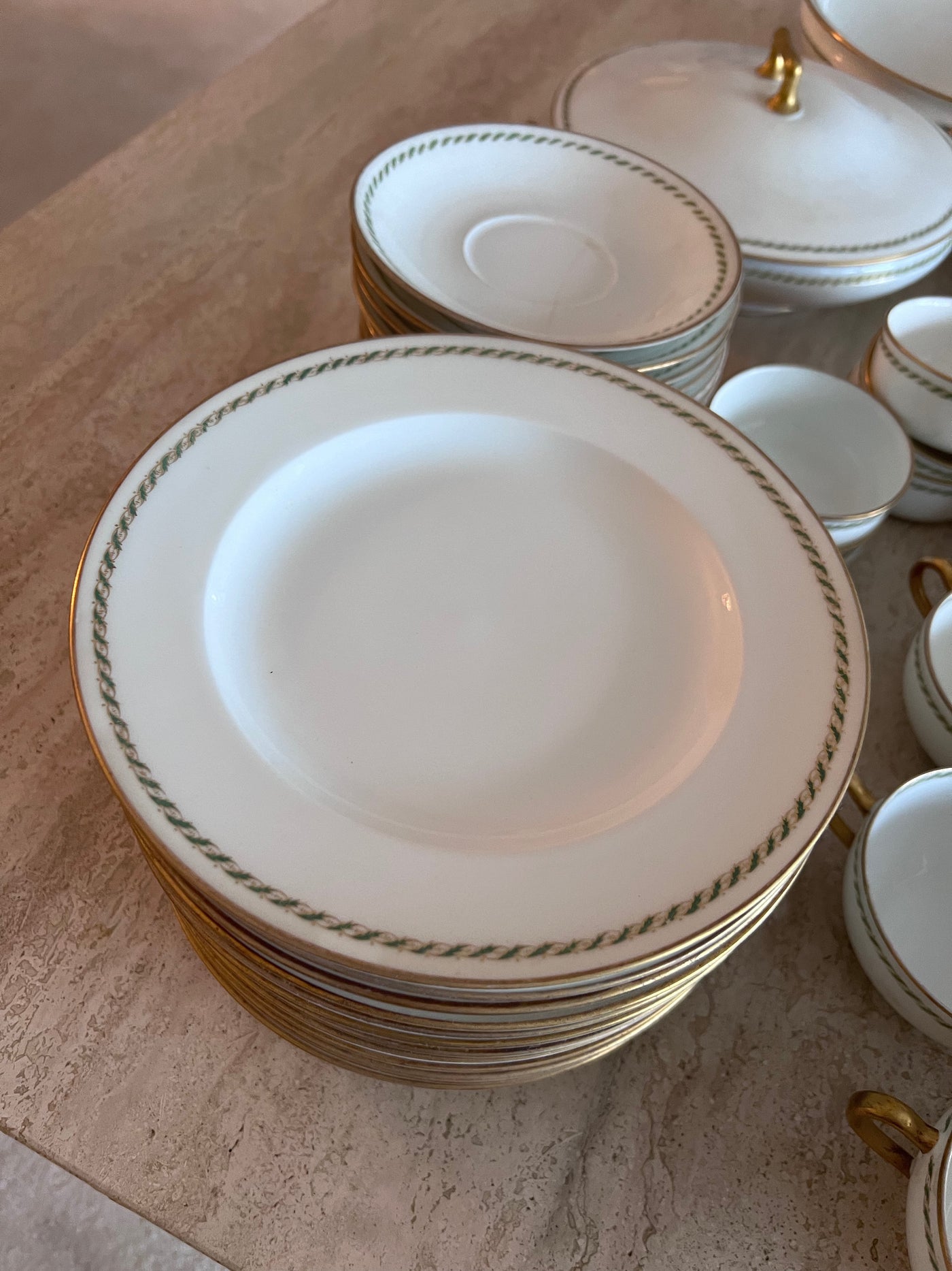 Theodore Haviland Limoges France Green & Gold Trim Dinnerware Lot