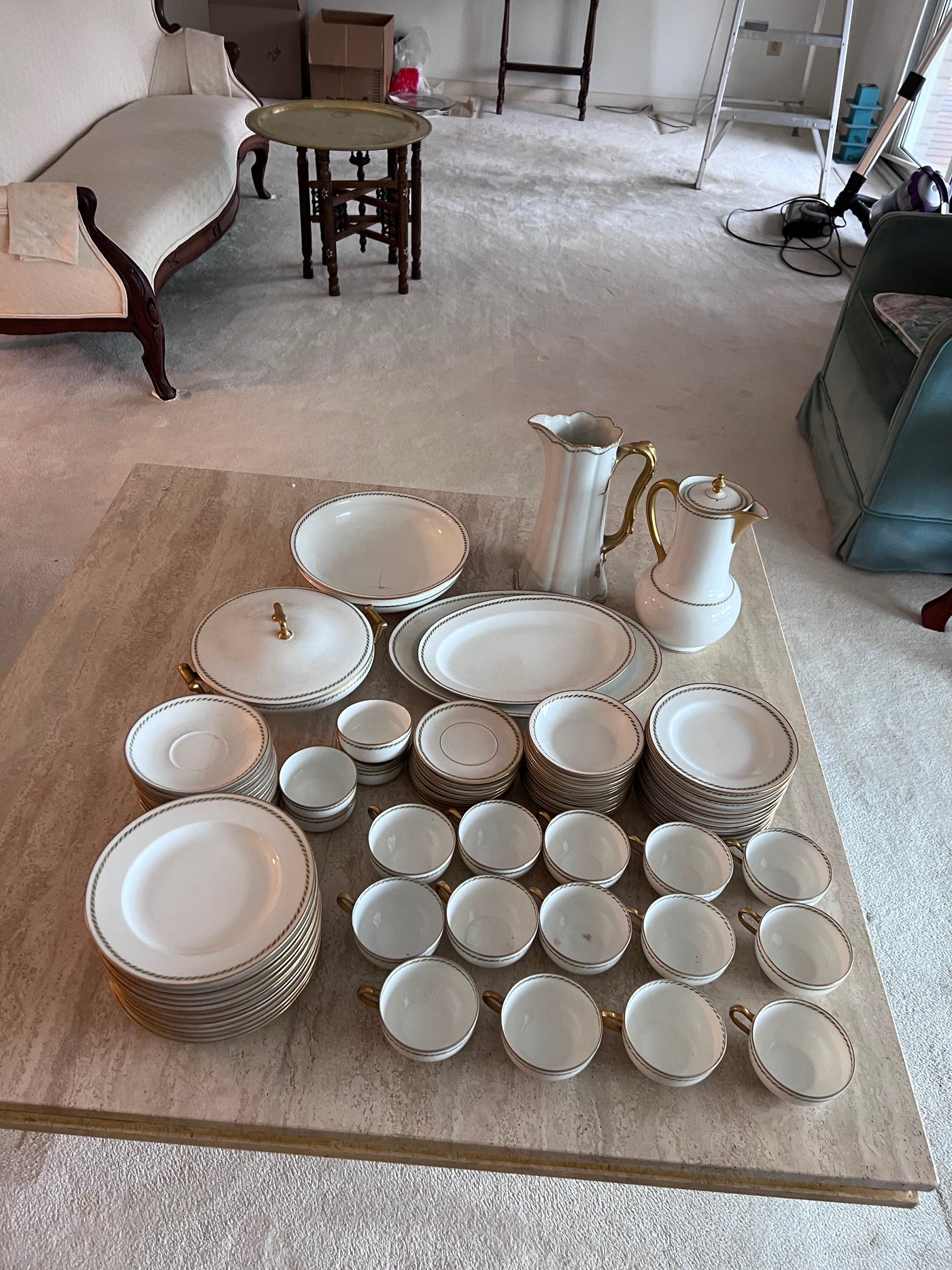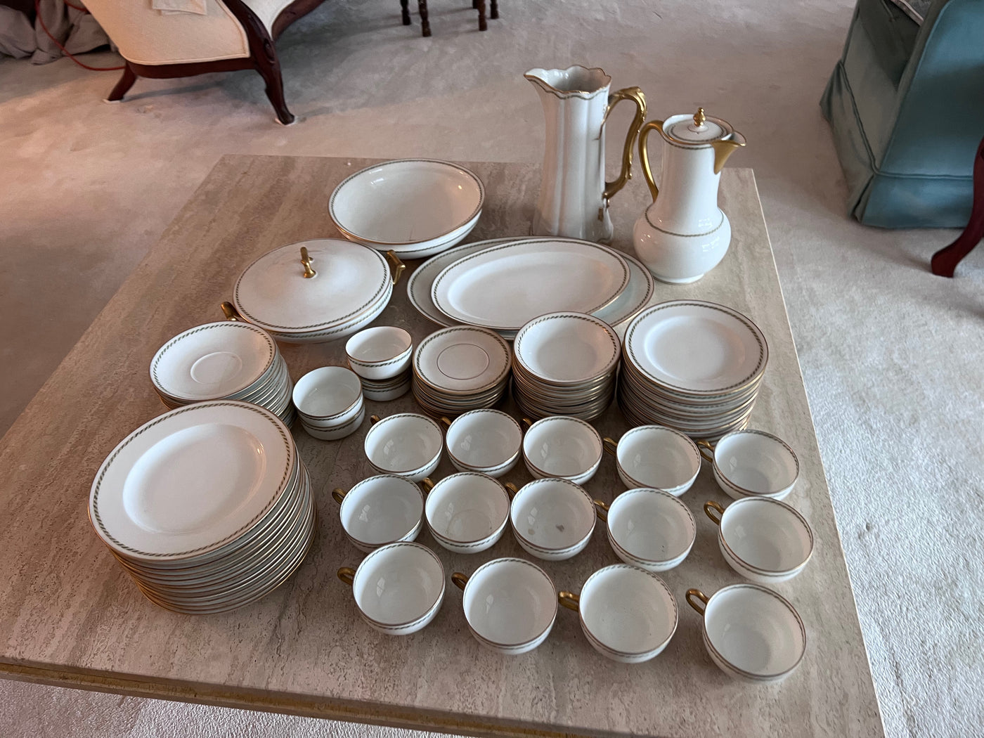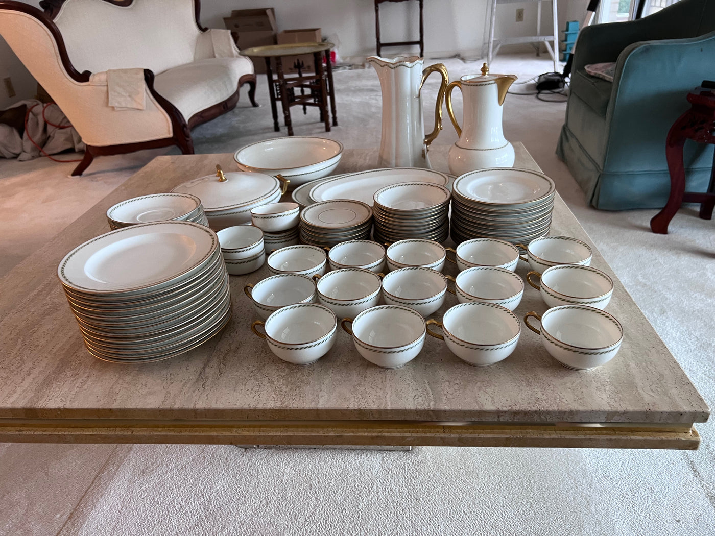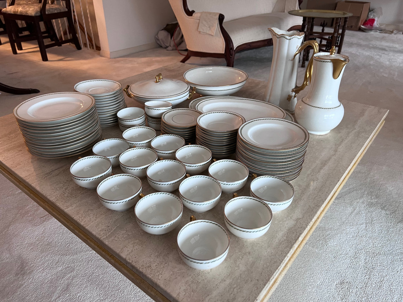 Theodore Haviland Limoges France Green & Gold Trim Dinnerware Lot