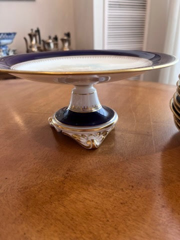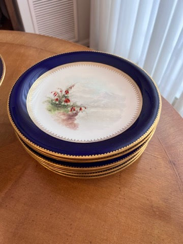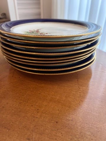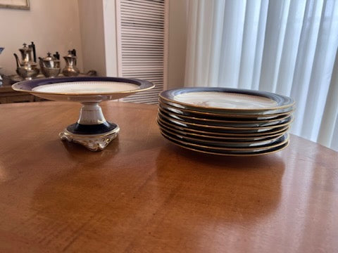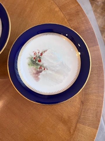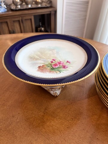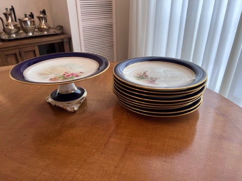Antique Hand Painted Floral/Cobalt Blue Dessert Set.