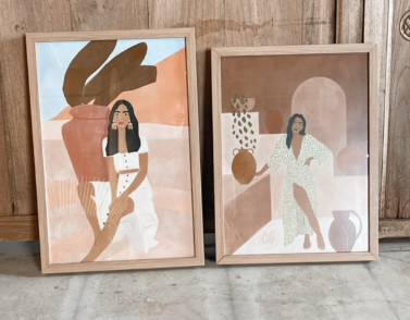 Set of 2 Framed Boho Girls Art.